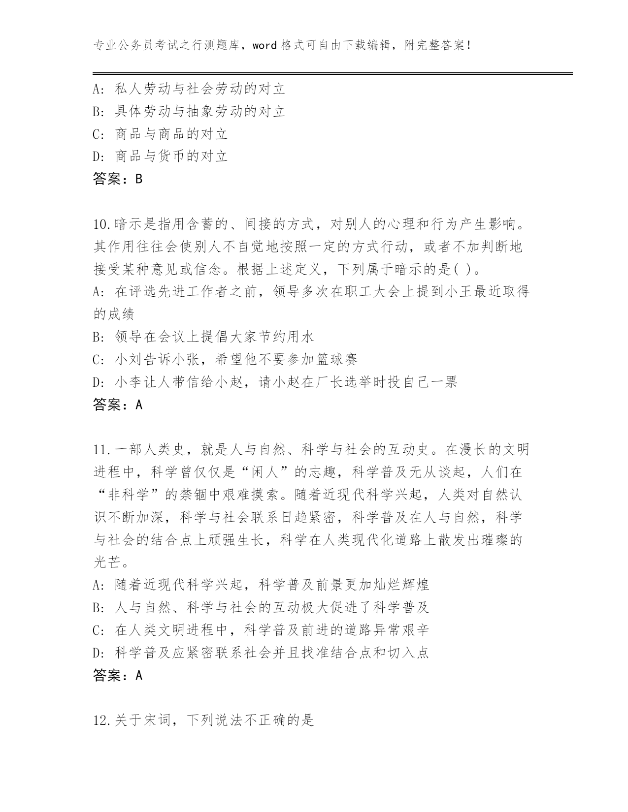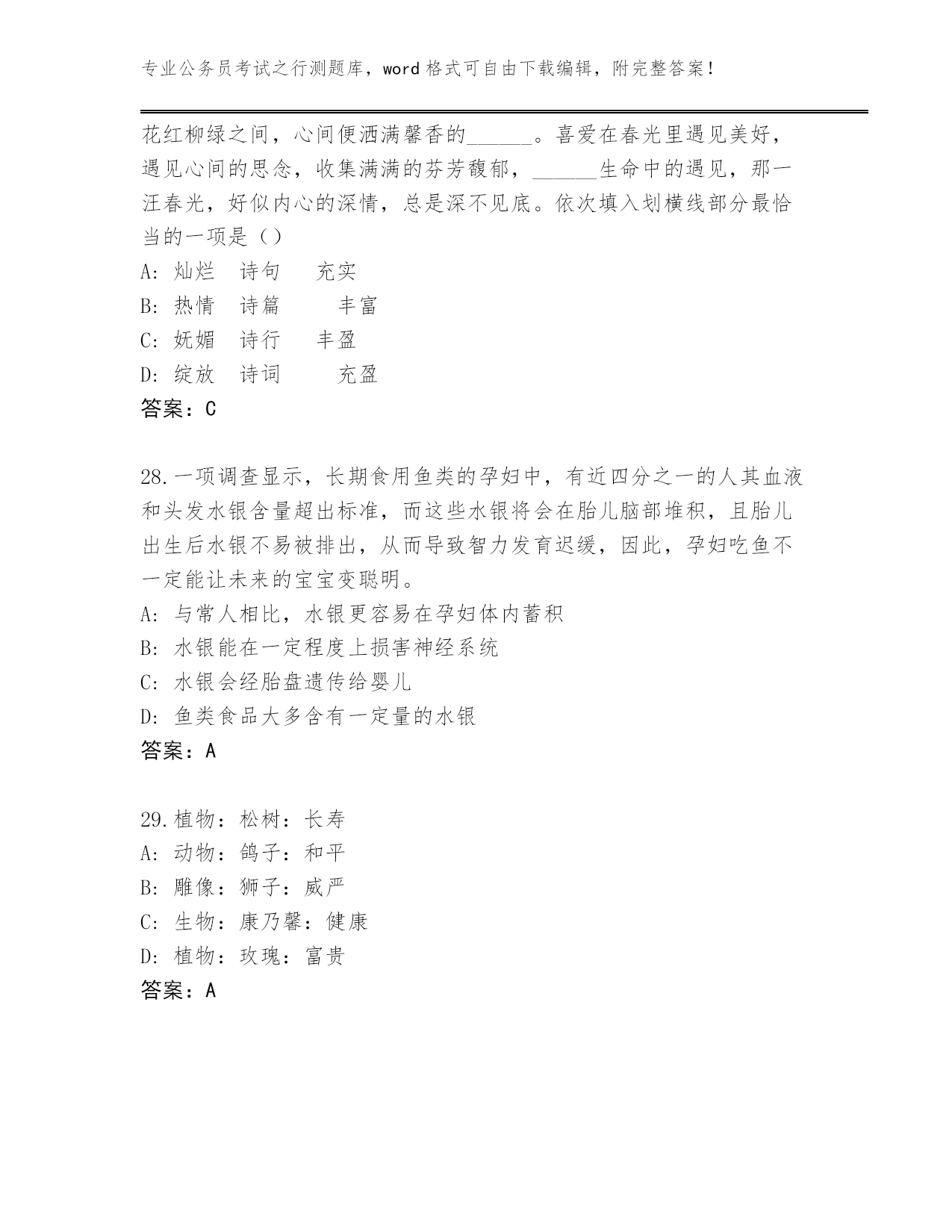 江西省渝水区2024年公务员考试之行测真题题库(模拟题)