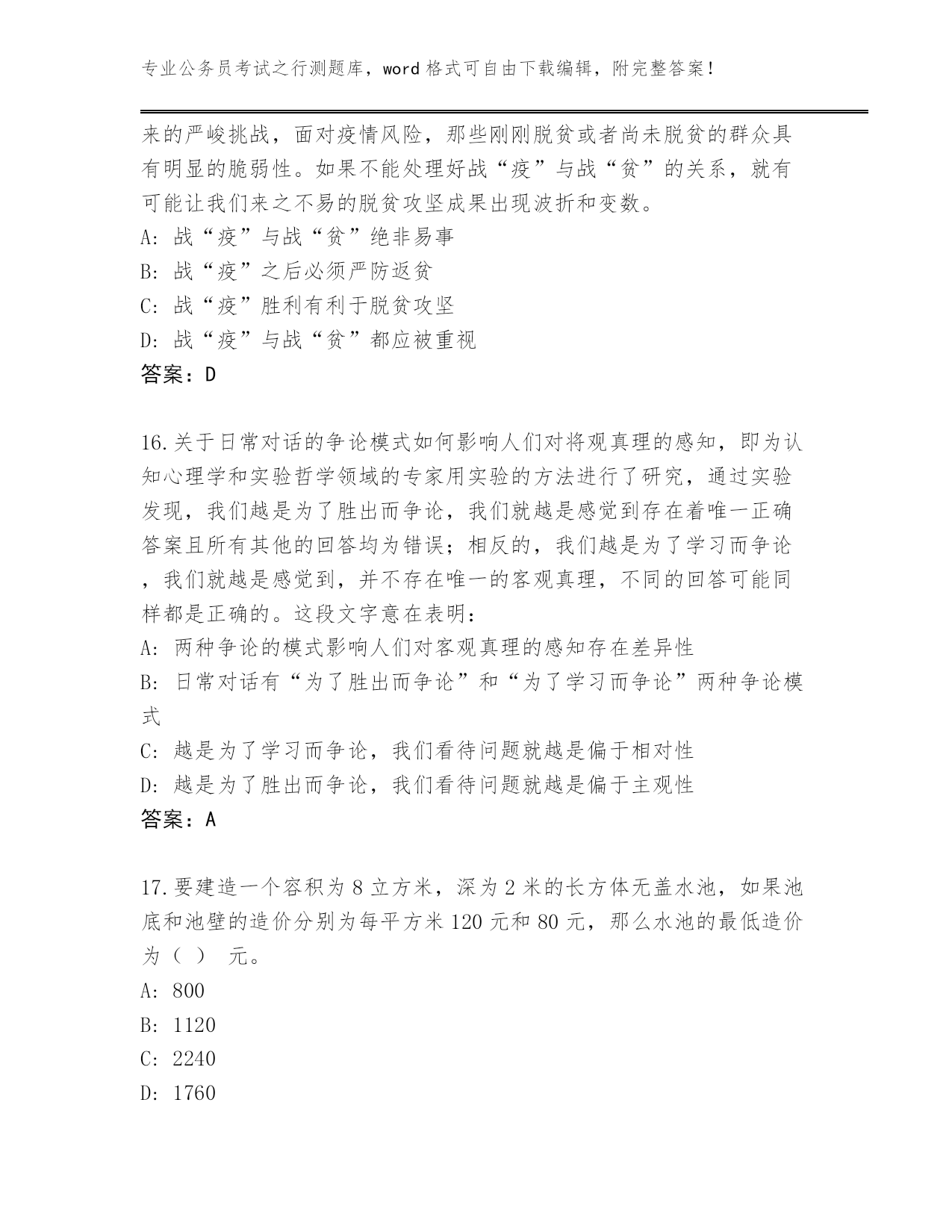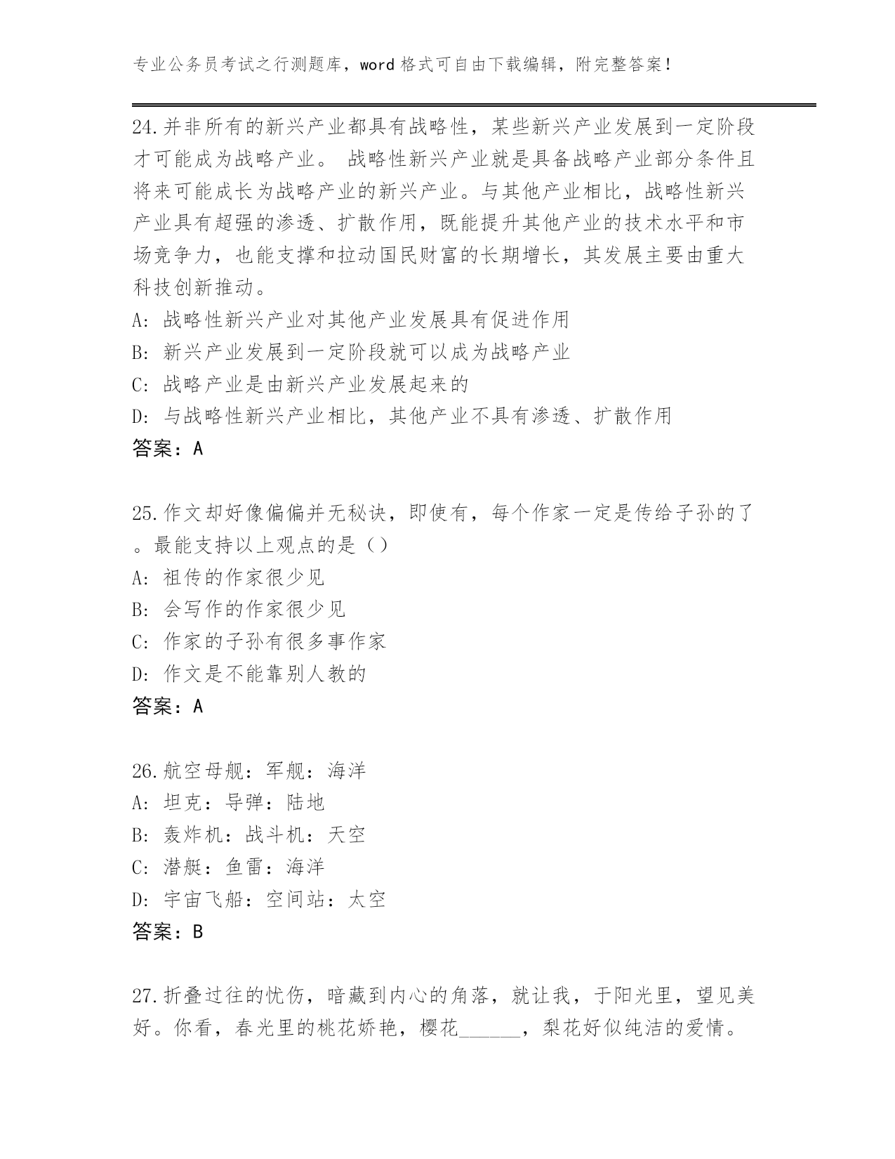 江西省渝水区2024年公务员考试之行测真题题库(模拟题).docx