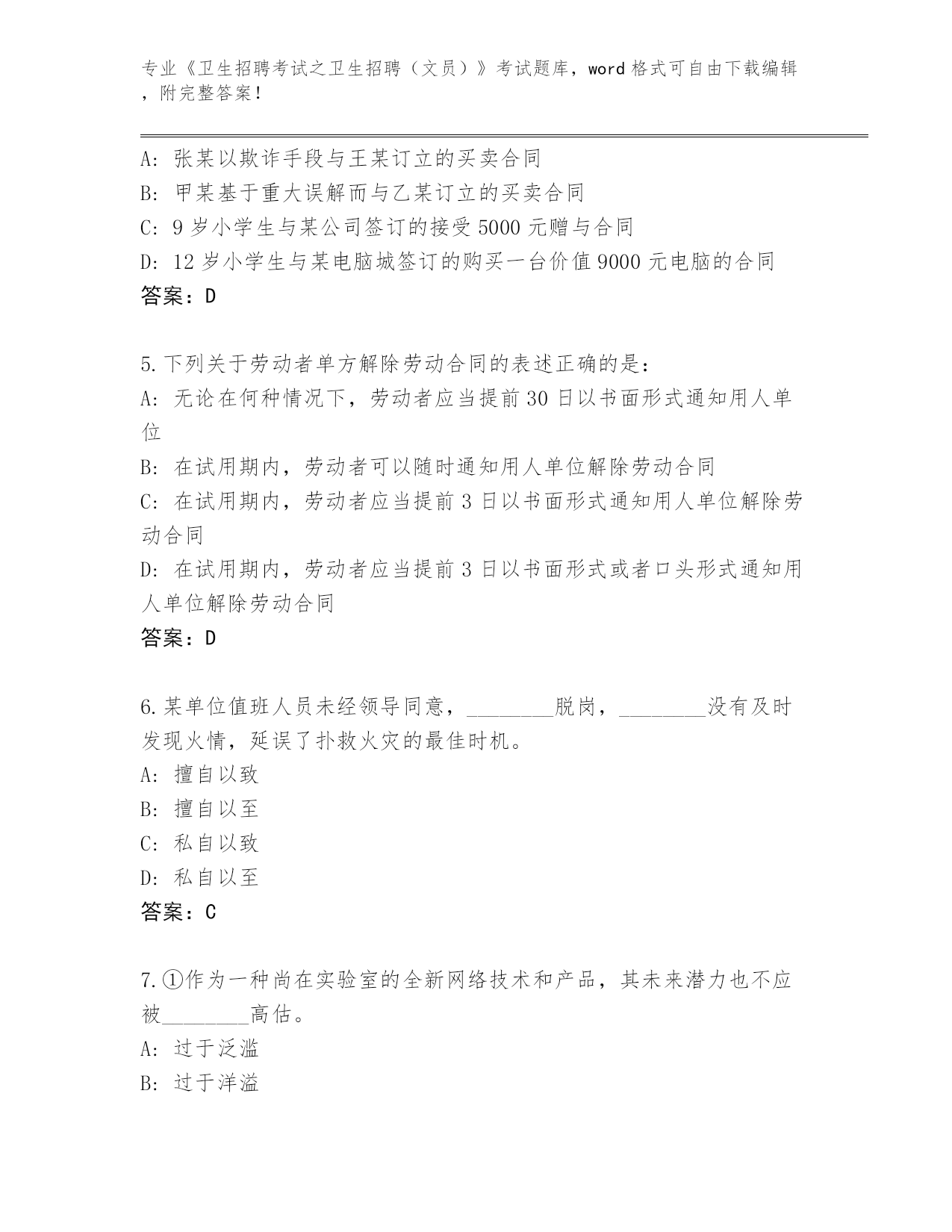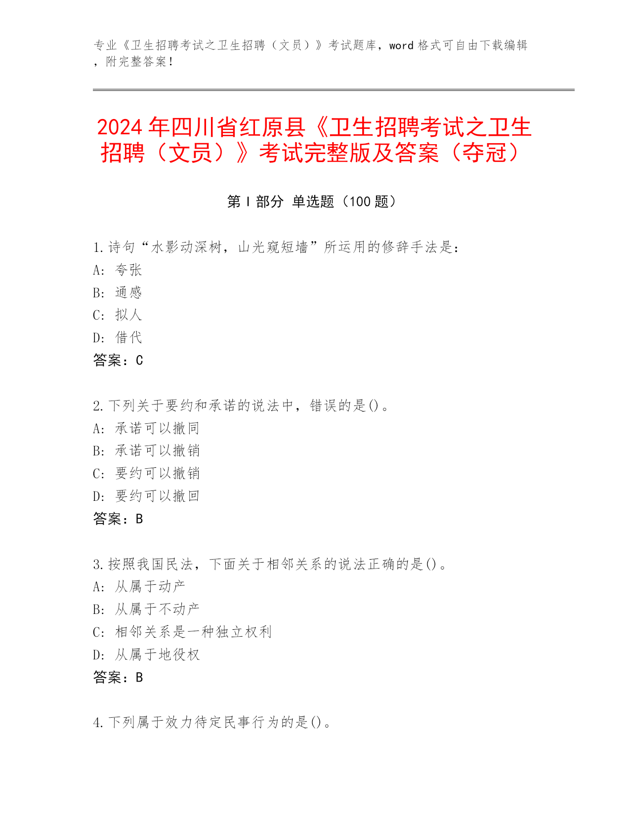 四川省红原县2024年《卫生招聘考试之卫生招聘(文员)》考试完整版及答案下载