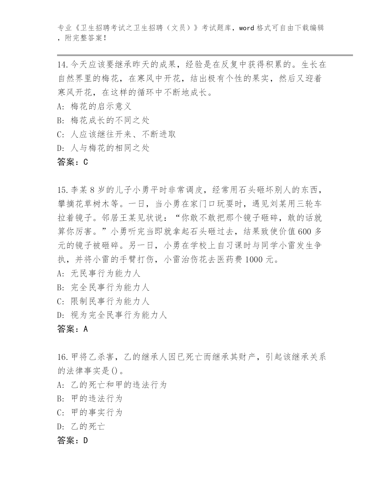 广东省《卫生招聘考试之卫生招聘(文员)》考试大全【夺冠】