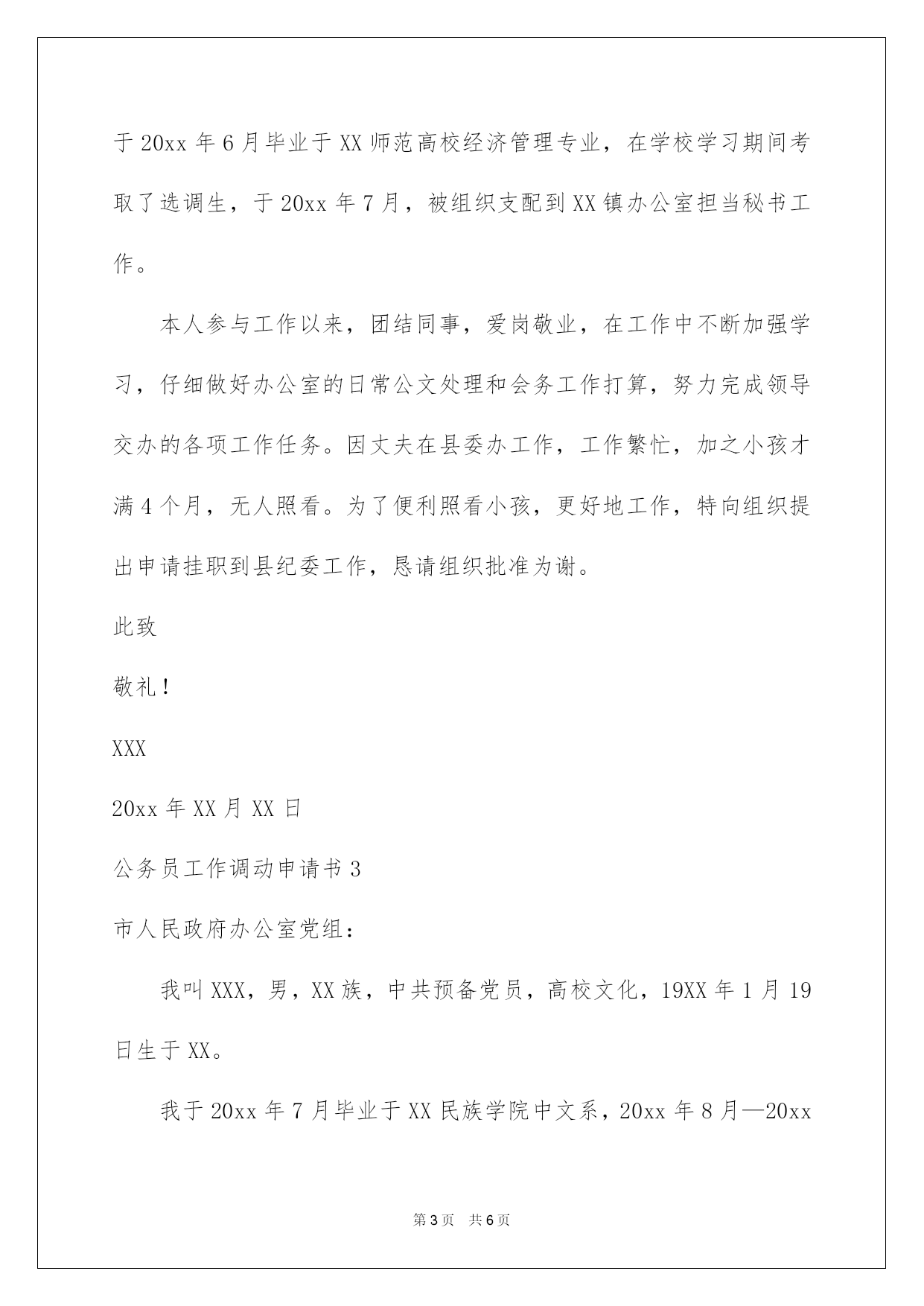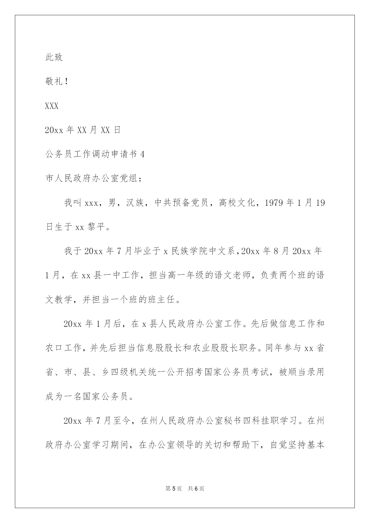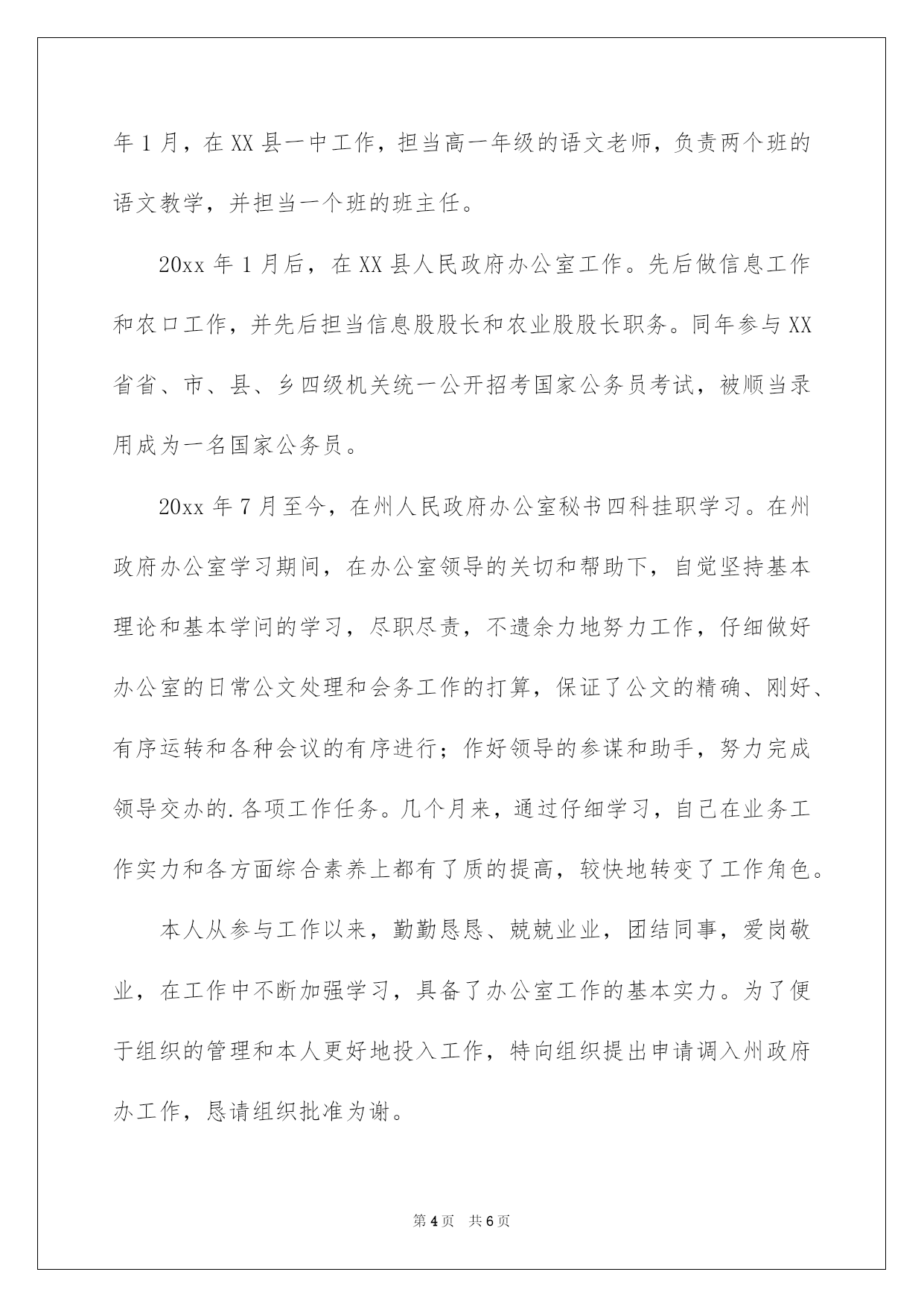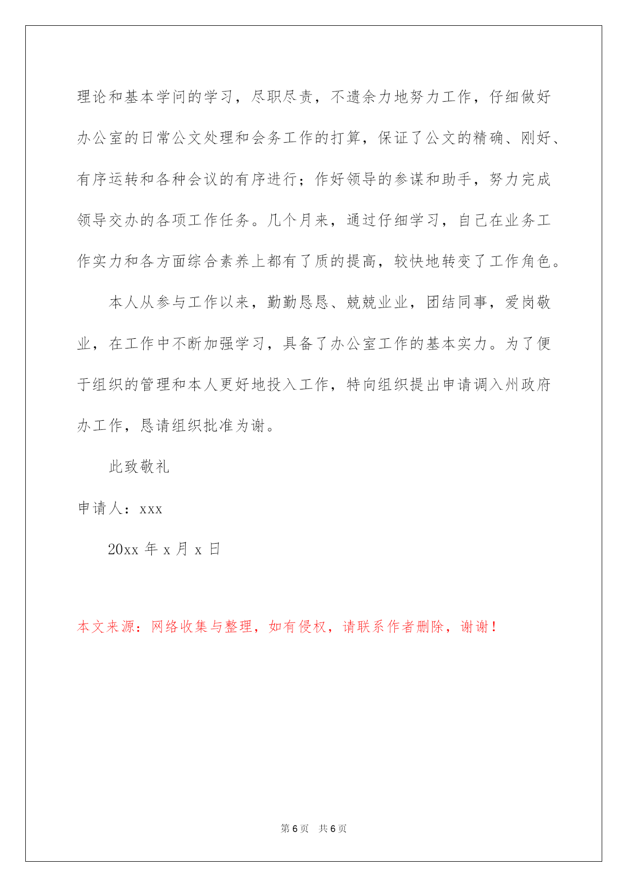 第PAGE\*Arabic\*MERGEFORMAT6页共NUMPAGES\*Arabic\*MERGEFORMAT6页第PAGE\*MERGEFORMAT6页共NUMPAGES\*MERGEFORMAT6页第PAGE\*MERGEFORMAT6页共NUMPAGES\*MERGEFORMAT6页第PAGE\*MERGEFORMAT6页共NUMPAGES\*MERGEFORMAT6页第PAGE\*MERGEFORMAT6页共NUMPAGES\*MERGEFORMAT6页第PAGE\*MERGEFORMAT6页共NUMPAGES\*MERGEFORMAT6页第PAGE\*MERGEFORMAT6页共NUMPAGES\*MERGEFORMAT6页第PAGE\*MERGEFORMAT6页共NUMPAGES\*MERGEFORMAT6页第PAGE\*MERGEFORMAT6页共NUMPAGES\*MERGEFORMAT6页第PAGE\*MERGEFORMAT6页共NUMPAGES\*MERGEFORMAT6页第PAGE\*MERGEFORMAT6页共NUMPAGES\*MERGEFORMAT6页2022公务员工作调动申请书公务员工作调动申请书在当今社会生活中,我们会常常运用申请书,申请书不同于其他书信,是一种专用书信。大家知道申请书的格式吗?下面是我为大家整理的公务员工作调动申请书,欢迎大家借鉴与参考,希望对大家有所帮助。公务员工作调动申请书1敬重的各位领导:本人XXX,男,是XXXXX单位,担当XXX。20xx年XX月,为了响应省、市、县统一实行公开选拔领导干部的确定,本人参与了XXXX市XXX县20xx年公开选拔副科级领导干部考试,报考XXXXXXXX一职,,以笔试XX分,面试XXX分,总分第一名的成果进入组织考核。经过组织上的严格身材考核,从20xx年XX月XX日到20xx年XX月XX日对我进行了任前公式,现已公示完毕。经中共XX县(市)委探讨确定,拟任我为中共XXXXXXXXX副主任人选。为进一步丰富自己的工作经验,开拓自己的视野,熬炼自己的才能,提高自己的水平,本人恳请组织统一本人调动到中共XXXXXXXXX办公室工作的申请,恳请组织批准。在新的岗位上,我将一如既往,坚决听从组织支配和工作须要,不断加强学习,努力工作,爱岗敬业、恪尽职守。本人调离XX单位后,仍会牢记自己是从XXXX单位走出去的一员,肯定会更加严格的要求自己,在新的岗位上为XXXX增加光彩。假如他日须要本人回到XXX工作,本人也将荣幸之至,尽自己的绵薄之力为她接着作贡献。最终,祝福我们XXXX的事业蒸蒸日上,也祝福我们XXXX的全体工作人员工作顺当,合家华蜜!!此致敬礼!XXX20xx年XX月XX日公务员工作调动申请书2敬重的县纪委领导:我叫XX,女,回族,中共党员,本科学历,19XX年12月诞生。于20xx年6月毕业于XX师范高校经济管理专业,在学校学习期间考取了选调生,于20xx年7月,被组织支配到XX镇办公室担当秘书工作。本人参与工作以来,团结同事,爱岗敬业,在工作中不断加强学习,仔细做好办公室的日常公文处理和会务工作打算,努力完成领导交办的各项工作任务。因丈夫在县委办工作,工作繁忙,加之小孩才满4个月,无人照看。为了便利照看小孩,更好地工作,特向组织提出申请挂职到县纪委工作,恳请组织批准为谢。此致敬礼!XXX20xx年XX月XX日公务员工作调动申请书3市人民政府办公室党组:我叫XXX,男,XX族,中共预备党员,高校文化,19XX年1月19日生于XX。我于20xx年7月毕业于XX民族学院中文系,20xx年8月—20xx年1月,在XX县一中工作,担当高一年级的语文老师,负责两个班的语文教学,并担当一个班的班主任。20xx年1月后,在XX县人民政府办公室工作。先后做信息工作和农口工作,并先后担当信息股股长和农业股股长职务。同年参与XX省省、市、县、乡四级机关统一公开招考国家公务员考试,被顺当录用成为一名国家公务员。20xx年7月至今,在州人民政府办公室秘书四科挂职学习。在州政府办公室学习期间,在办公室领导的关切和帮助下,自觉坚持基本理论和基本学问的学习,尽职尽责,不遗余力地努力工作,仔细做好办公室的日常公文处理和会务工作的打算,保证了公文的精确、刚好、有序运转和各种会议的有序进行;作好领导的参谋和助手,努力完成领导交办的.各项工作任务。几个月来,通过仔细学习,自己在业务工作实力和各方面综合素养上都有了质的提高,较快地转变了工作角色。本人从参与工作以来,勤勤恳恳、兢兢业业,团结同事,爱岗敬业,在工作中不断加