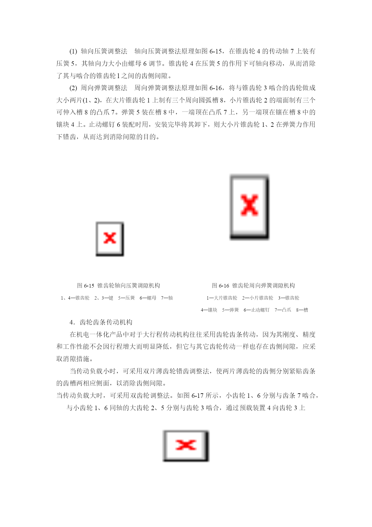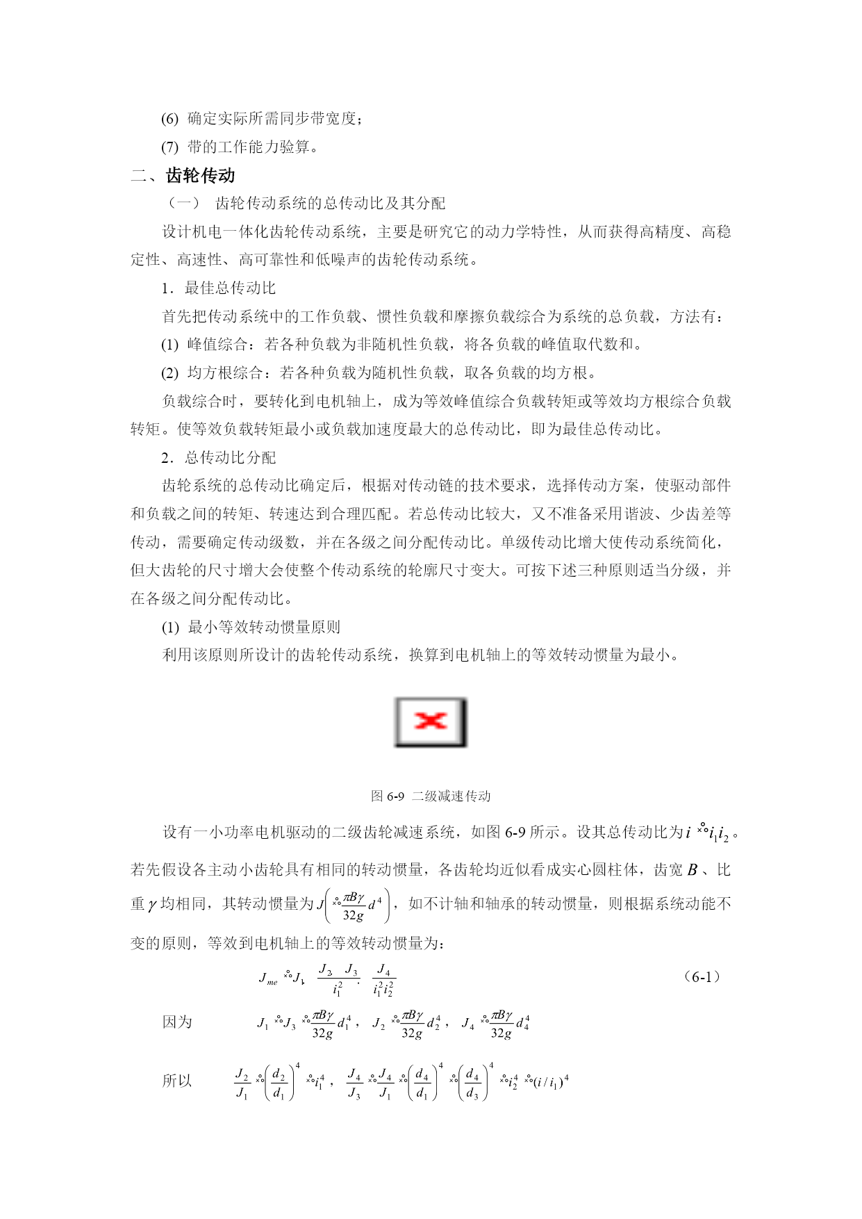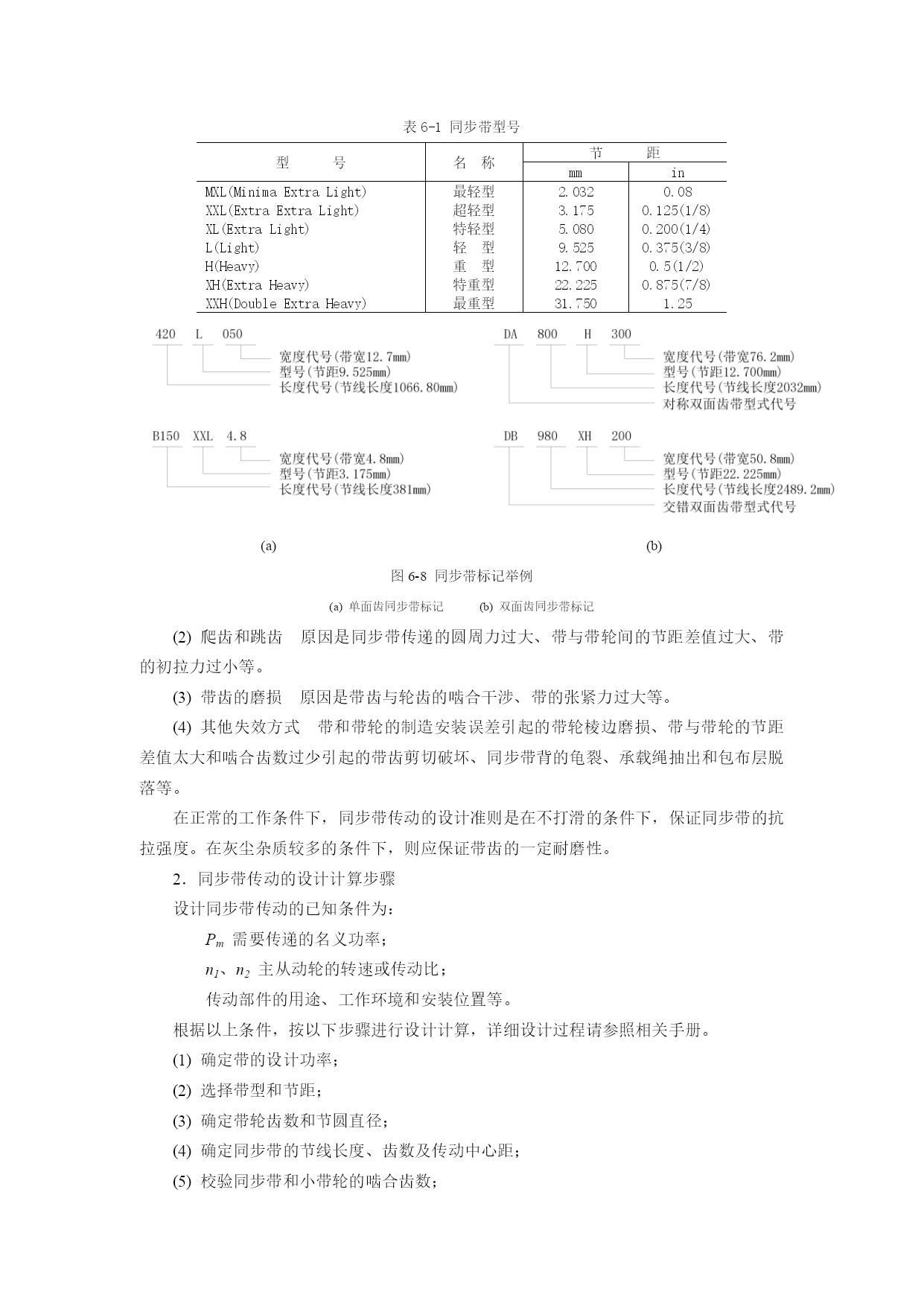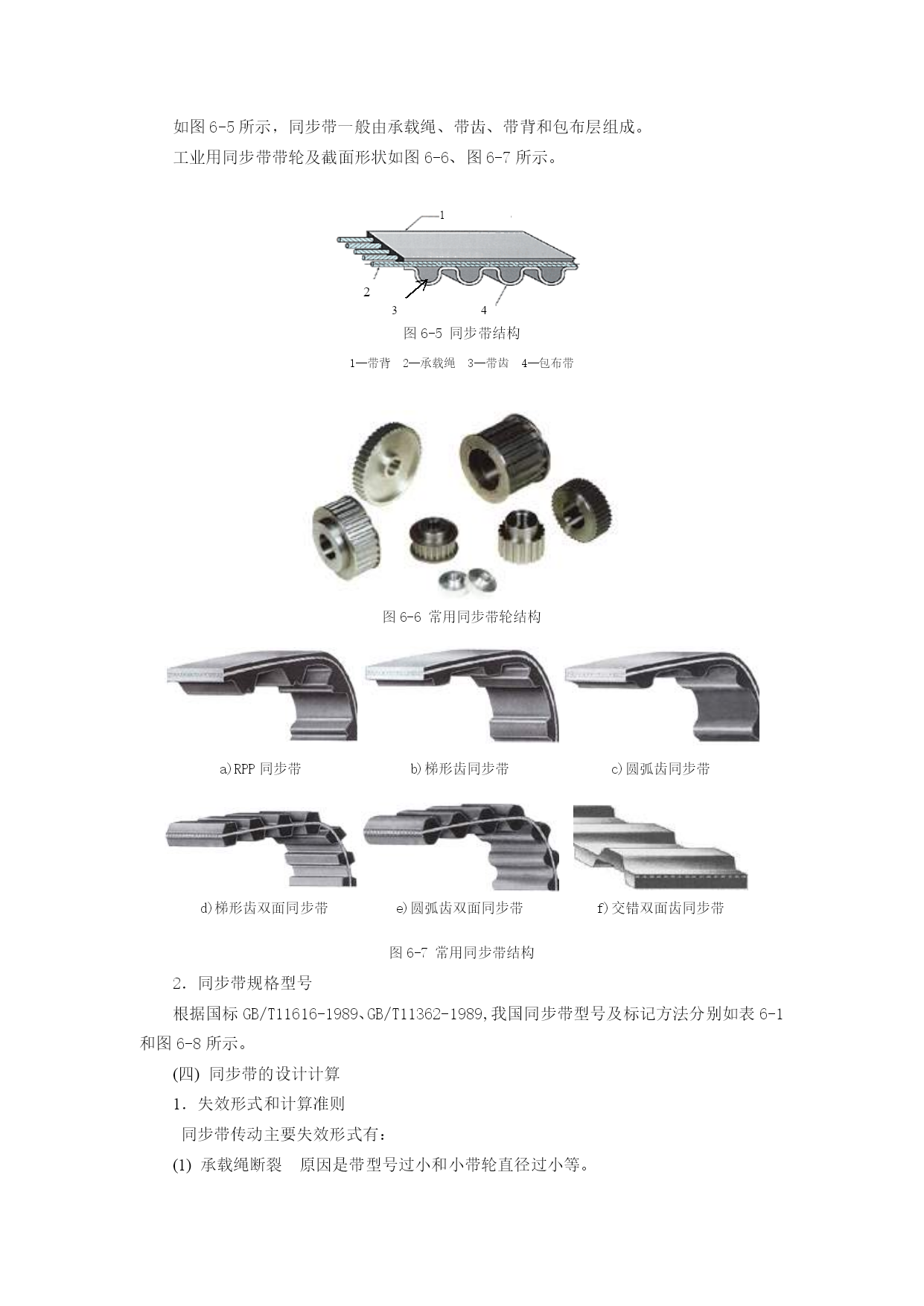 第六章机械技术第一节概述机电一体化系统的机械系统是由计算机信息网络协调与控制的,与一般的机械系统相比,除要求具有较高的定位精度之外,还应具有良好的动态响应特性,就是说响应要快、稳定性要好。一个典型的机电一体化系统通常由控制部件、接口电路、功率放大电路、执行元件、机械传动部件、导向支承部件,以及检测传感部件等部分组成。这里所说的机械系统,—般由减速装置、丝杠螺母副、蜗轮蜗杆副等各种线性传动部件以及连杆机构、凸轮机构等非线性传动部件、导向支承部件、旋转支承部件、轴系及架体等机构组成。为确保机械系统的传动精度和工作稳定性,通常对机电一体化系统提出以下要求:(1)高精度精度直接影响产品的质量,尤其是机电一体化产品,其技术性能、工艺水平和功能比普通的机械产品都有很大的提高,因此机电一体化机械系统的高精度是其首要的要求。如果机械系统的精度不能满足要求,则无论机电一体化产品其它系统工作怎样精确,也无法完成其预定的机械操作。(2)快速响应性即要求机械系统从接到指令到开始执行指令指定的任务之间的时间间隔短,这样控制系统才能及时根据机械系统的运行状态信息,下达指令,使其准确地完成任务。(3)良好的稳定性即要求机械系统的工作性能不受外界环境的影响,抗干扰能力强。此外还要求机械系统具有较大的刚度,良好的耐磨、减摩性和可靠性,消震和低噪音,重量轻、体积小、寿命长。本章将机电一体化机械系统分成机械传动和支承部件两大部分,分别介绍较典型的传动部件、旋转和导向支承部件等的总体布局、机构选型、结构设计的优化等基本问题。第二节机械传动同步带传动同步带传动早在1900年已有人研究并多次提出专利,但其实用化却是在二次世界大战以后。由于同步带是一种兼有链、齿轮、三角胶带优点的传动零件,随着二次大战后工业的发展而得到重视,于1940年由美国尤尼罗尔(Unirayal)橡胶公司首先加以开发。1946年辛加公司把同步带用于缝纫机针和缠线管的同步传动上,取得显著效益,并被逐渐引用到其他机械传动上。同步带传动的开发和应用,至今仅60余年,但在各方面已取得迅速进展。(一)分类1.按用途分(1)一般工业用同步带传动即梯形齿同步带传动(图6-1)。它主要用于中、小功率的同步带传动,如各种仪器、计算机、轻工机械中均采用这种同步带传动。(2)高转矩同步带传动又称HTD带(HighTorqueDrive)或STPD带传动(SuperTorquePositiveDrive)。由于其齿形呈圆弧状(图6-2),在我国通称为圆弧齿同步带传动。它主要用于重型机械的传动中,如运输机械(飞机、汽车)、石油机械和机床、发电机等的传动。图6-1同步带传动(3)特种规格的同步带传动这是根据某种机器特殊需要而采用的特种规格同步带传动,如工业缝纫机用的、汽车发动机用的同步带传动。(4)特殊用途的同步带传动即为适应特殊工作环境制造的同步带。2.按规格制度分(1)模数制同步带主要参数是模数m(与齿轮相同),根据不同的模数数值来确定带的型号及结构参数。在60年代该种规格制度曾应用于日、意、苏等国,后随国际交流的需要,各国同步带规格制度逐渐统一到节距制。目前仅前苏联及东欧各国仍采用模数制。图6-2同步带截面形状Pb—节距ht—齿厚hs—带厚(2)节距制即同步带的主要参数是带齿节距,按节距大小不同,相应带、轮有不同的结构尺寸。该种规格制度目前被列为国际标准。由于节距制来源于英、美,其计量单位为英制或经换算的公制单位。(3)DIN米制节距DIN米制节距是德国同步带传动国家标准制定的规格制度。其主要参数为齿节距,但标准节距数值不同于ISO节距制,计量单位为公制。在我国,由于德国进口设备较多,故DIN米制节距同步带在我国也有应用。随着人们对齿形应力分布的解析,开发出了传递功率更大的圆弧齿(图6-3b),紧接着人们根据渐开线的展成运动,又开发出了与渐开线相近似的多圆弧齿形,使带齿和带轮能更好的啮合(图6-3c),使得同步带传动啮合性能和传动性能得到进一步优化,且传动变得更平稳、精确、噪音更小。三种齿形传递能力、噪音水平、打滑扭矩的比较如图6-4。a)b)c)图6-3同步带齿形的变迁a—梯形齿b—圆弧齿c—近似渐开线齿图6-4三种齿形比较(二)同步带传动的优缺点1.工作时无滑动,有准确的传动比同步带传动是一种啮合传动,虽然同步带是弹性体,但由于其中承受负载的承载绳具有在拉力作用下不伸长的特性,故能保持带节距不变,使带与轮齿槽能正确啮合,实现无滑差的同步传动,获得精确的传动比。2.传动效率高,节能效果好由于同步带作无滑动的同步传动,故有较高的传动效率,一般可达0.98。它与三角带传动相比,有明显的节能效果。3.传动比范围大,结构紧凑同步带传动的传动比一般可