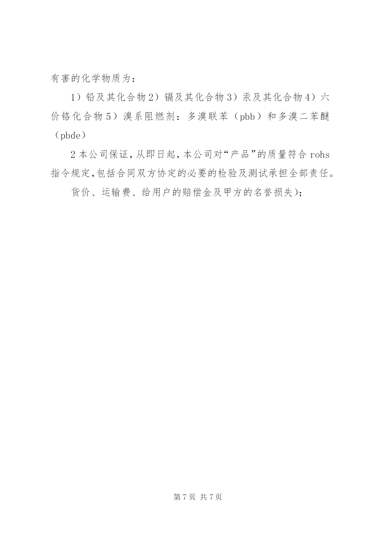 第PAGE\*Arabic\*MERGEFORMAT7页共NUMPAGES\*MERGEFORMAT7页环保设施验收承诺书篇一:“三同时”和竣工环保验收承诺书XX县区宏鑫加油站改造项目环境保护“三同时”和竣工环保验收承诺书一、项目名称:XX县区九股水废品塑料厂建设项目二、环评批复文号西环发〔2013〕3号三、承诺事项:2、及时委托开展建设项目施工期工程环境监理和环境监测工作。3、项目建成后,及时向县环保局提出试生产(运行)和竣工环保验收申请,未经批准,不擅自投入生产(运行)。4、主动配合县环保局对建设项目的环境执法现场监督检查。承诺单位(盖章):XX县区九股水废品塑料厂法定代表人(签字):电话:建设项目负责人(签字):电话:2013年1月7日篇二:环保承诺书承诺书XX县区房屋建筑工程竣工验收备案办公室:由我南京中恒置业有限公司开发建设的水岸明珠3X-1楼工程于年月日已通过工程竣工验收,并已通过环保局对环保的初步验收。因环境监测规范要求,验收监测时要求业主入住,因该项目尚未有业主入住,因此我单位承诺该项目有业主入住时一定到环保部门办理环保正式手续。南京中恒置业有限公司篇三:环境保护承诺书内容环境保护承诺书内容一、主要职能(一)组织拟定全省生态保护和农村土壤污染防治政策、规划,协调并监督相关部门开展生态保护工作;(二)组织编制全省自然保护区建设规划,提出新建和申报的各类省级、国家级自然保护区审批建议;(三)指导、协调、监督各种类型的自然保护区、风景名胜区、森林公园环境保护工作;(四)开展全省生态状况评估;(五)监督对生态环境有影响的自然资源开发利用活动、重要生态环境建设和生态破坏恢复工作;(六)协调和监督野生动植物保护、湿地环境保护、荒漠化防治;(七)牵头负责生物多样性保护、生物物种资源(含生物遗传资源)和生物安全管理工作;(八)组织协调农村环境保护工作,组织指导农村环境综合整治工作,指导生态示范建设与生态农业建设;二、服务内容三、服务对象四、服务承诺(一)强化高效服务、开拓创新、争先创优、勤政廉洁的意识;杜绝办事拖拉、推诿作风;坚决克服行政不作为、慢作为、乱作为的现象。认真执行勤政廉政有关规定,树立良好形象。(二)提高申报国家级自然保护区评审论证时限:自然保护区申报材料初审合格后20日内召开协调会组织论证,并向省政府报告论证意见;(三)提高新建省级自然保护区审批建议时限:召开自然保护区评审委员会后3日内,行文征求省直有关部门意见,收齐省直有关部门意见后5日内向省政府行文提出审批建议;今年,环保部门被列入全国民主评议行风的重点单位,XX县区政府纠风办、县监察局把全县环保系统列为今年的行风评议对象之一。一、xx年民主评议环保行风的主要评议内容:二、《全国环保系统六项禁令》三、《环保系统工作人员职业道德规范》爱自然忠事业甘奉献讲廉洁严执法勇创新重实效求团结四、《环境监察人员“六不准”》1、不准接受被检查者的礼品、礼金和有价证券;2、不准接受被检查者宴请;3、不准参加被检查者邀请的娱乐活动;4、不准参与被检查者的营销活动;5、不准向被检查者通风报信;行风评议是推动部门、行业行风建设的有效措施之一,环保行风建设是环保事业发展的基础。为切实加强环保部门的队伍建设和行风建设,促进我们转变职能、转变作风,改进工作方式方法,树立良好的行业形象,以促进环保工作深入开展,推动全县环保事业的健康发展。在此,XX县区环境保护局局长周斌代表全县环保系统向社会各界郑重承诺:我们热烈欢迎社会各界和广大人民群众对以上公开的评议内容给予监督和评议,对环保队伍和环保工作进行监督和评议;衷心希望各部门、新闻媒体、企事业单位、广大人民群众对我们的工作和作风提出宝贵的意见和建议;也期待着各位评议代表明察暗访,真实检查。我们一定把评议和监督,当作是对环保事业的厚爱和对环保队伍的关怀,对各方面的批评意见,做到有则改之、无则加勉。篇四:安全环保承诺书(项目施工)项目施工安全环保承诺书工程名称:平南2X预留地春泥堆场建设项目排洪系统建安工程工程地址:承包范围:承包方式:工程施工合同编号:工程项目期限:年月日起开工至年月日完工为确保我方承包的甲方项目的顺利实施,特向甲方和各级主管部门作出如下承诺:一、施工期间我方将严格遵守安全生产、环保法律、法规,执行安全生产、环保的规章制度、技术标准,遵守甲方安全、环保管理制度,二、作为责任主体,我方对施工期间及施工内容投入使用后造成的安全事故、不良环境影响及由此产生的所有费用及损失承担全部责任(包括给第三人造成损害导致的赔偿责任),并愿意接受甲方依据安全事故严三、建立健全我方的安全生产、环保责任制度和安全、环保教育培训制度,制定相应的操作规程;我方委派作为本施工项供安全防护用具和安全防护服装,并书面告知安全、环保风险高
