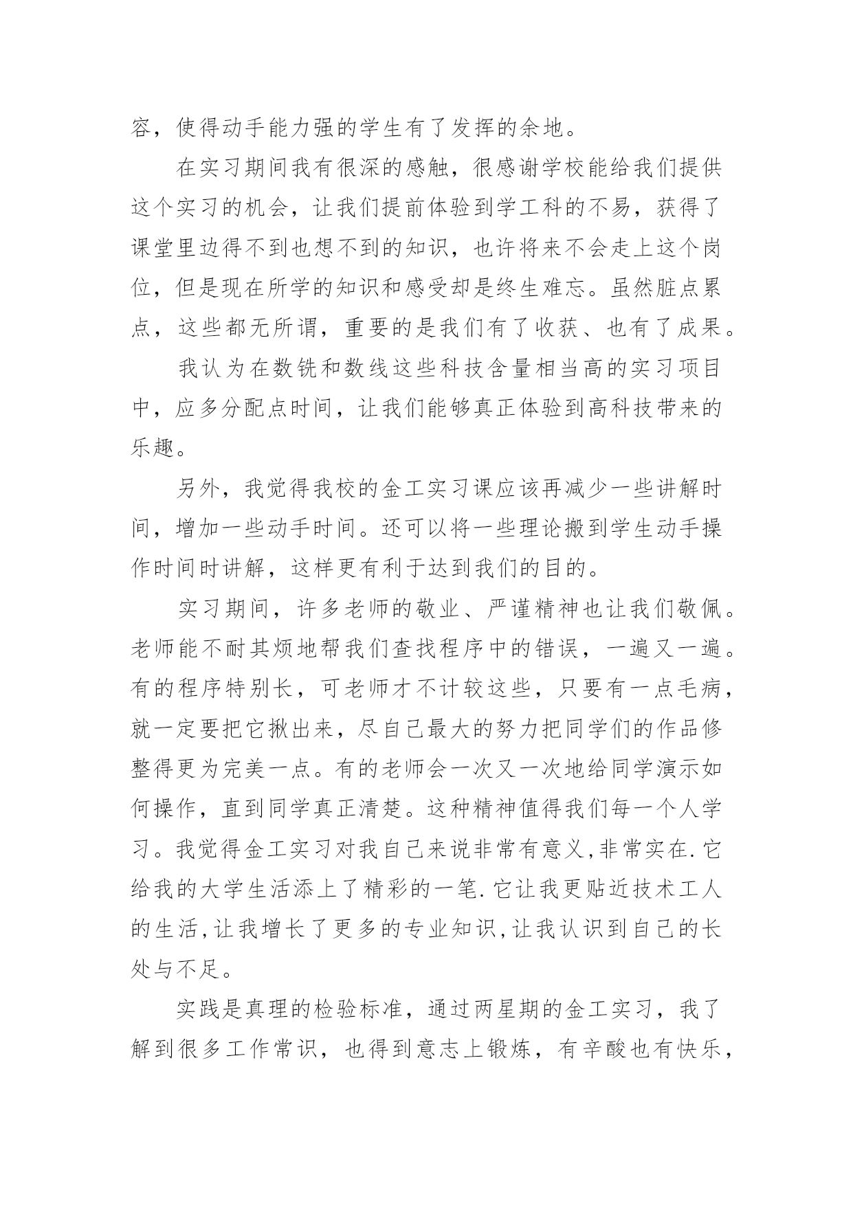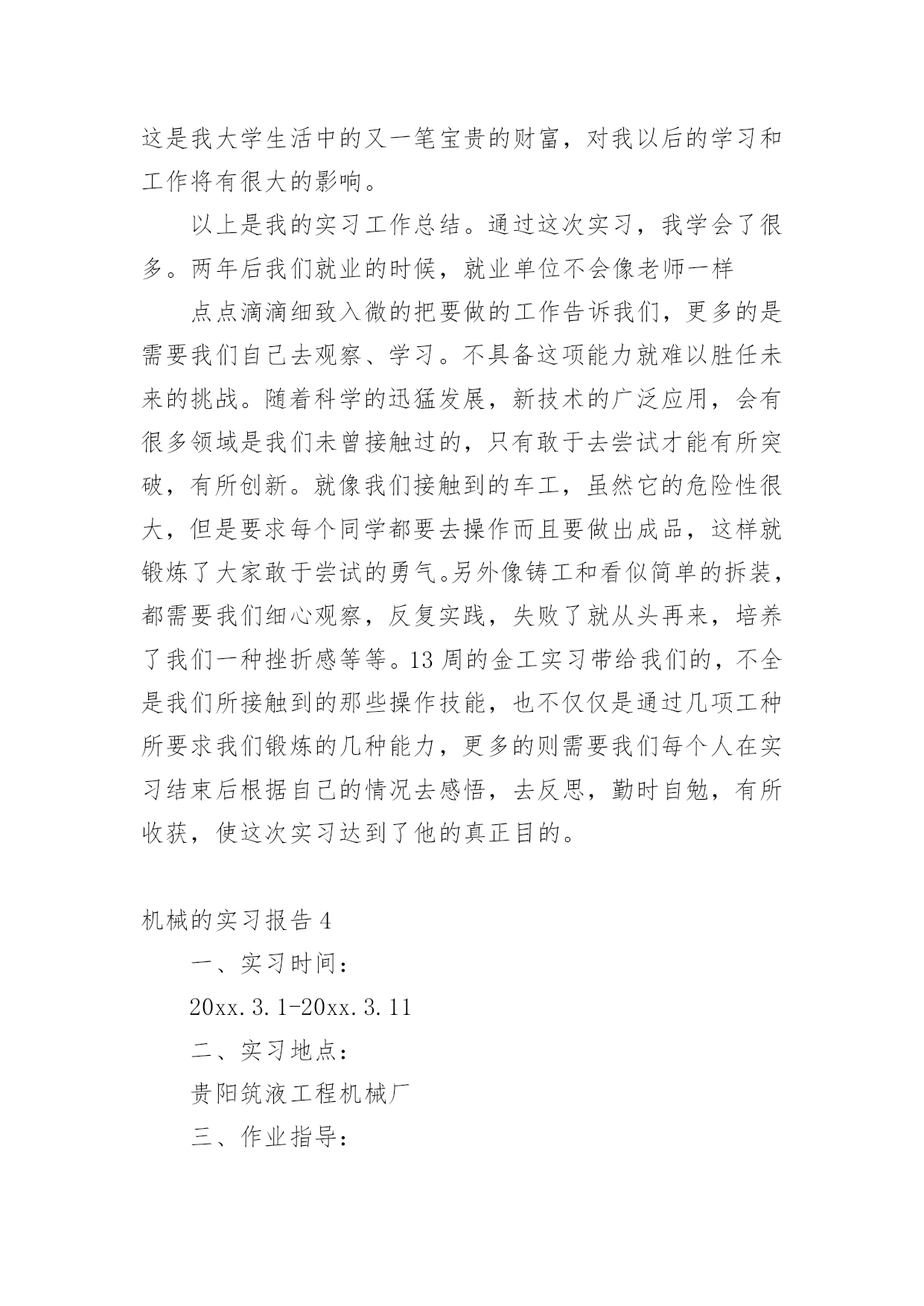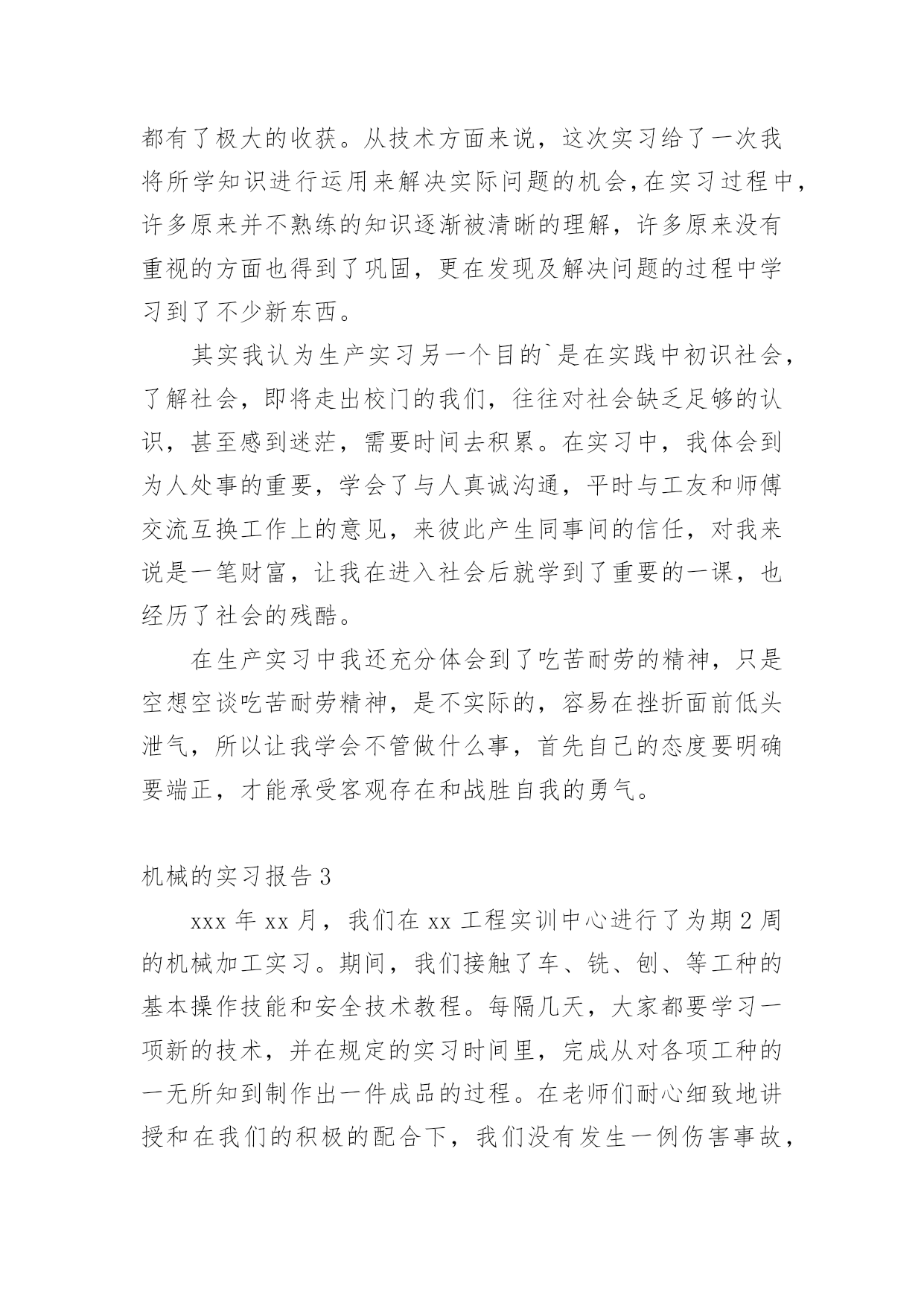 机械的实习报告在生活中,需要使用报告的情况越来越多,报告成为了一种新兴产业。一听到写报告就拖延症懒癌齐复发?以下是小编为大家整理的机械的实习报告,希望能够帮助到大家。机械的实习报告1实习的目的及意义1、实习目的本次实习我们主要去三家企业,中国**汽集团、机床集团和精工机械厂,在公司中采取了听讲座、到车间观摩学习等各种各样的形式学习机械制造,对机械制造有一个整体的认识。2、实习单位简介中国汽车集团简介:中国汽车集团前身是原xx汽车制造总厂。原**汽车制造总厂始建于1935年,主要生产汽车零部件。该厂于1956年开始自主研发设计制造汽车,步入汽车制造企业。1960年4月试制出了中国第一辆**型汽车-黄河牌jn150型8吨**型汽车,结束了中国不能生产xx型汽车的历史。总部坐落于山东省**市,是国内主要的xx型载xx汽车生产基地,也是我国xx型汽车工业的.摇篮,以开发和制造中国第一辆**型汽车(黄河jn150)、成功引进斯太尔**型汽车生产项目和与沃尔沃合资生产项目、自主研发howo产品是目前中国**型汽车产销量最大的企业而闻名。机床厂简介:产品与服务范围:锻压设备、(数控)金切机床、自动化设备、数控切割设备、铸造机械设备、环保机械设备、建材成套设备等七大类。为客户提供售前、售后服务;机床设备维修改造、备件供应;铸造件、锻热件、焊接件、机械加工零件的对外协作等。-自动化设备:可提供自动上下料机械手、自动翻转机、全自动板材开卷校平剪切生产线、大型多工位送料机构、数控转塔冲等。同时,铸造机械、数控切割机、环保建材设备等保持高速增长,是全国机床行业产品门类最多、规格最全的企业。机械的实习报告2时光悠悠,短暂的实习结束了,在这期间我学到了许多有用的东西,不管是关于齿轮、齿轮轴的生产方面,还是为人处世方面,我都颇有收获。生产实习是每个大学生必须拥有的一段经历,它使我们在实践中了解社会,让我们学到了很多在课堂上根本就学不到的知识,也打开了视野,增长了见识,为我们以后进一步走向社会打下坚实的基础。通过了解零件机加工的情况,与学习本专业有关的各种知识,第一次亲身感受了所学知识与实际的应用,让我们大开眼界,也是对以前所学知识的一个初审。通过这次生产实习,进一步巩固和深化所学的理论知识,为后续的工作打好基础。在实习过程中,我从技术,团队合作,专业素质等方面都有了极大的收获。从技术方面来说,这次实习给了一次我将所学知识进行运用来解决实际问题的机会,在实习过程中,许多原来并不熟练的知识逐渐被清晰的理解,许多原来没有重视的方面也得到了巩固,更在发现及解决问题的过程中学习到了不少新东西。其实我认为生产实习另一个目的`是在实践中初识社会,了解社会,即将走出校门的我们,往往对社会缺乏足够的认识,甚至感到迷茫,需要时间去积累。在实习中,我体会到为人处事的重要,学会了与人真诚沟通,平时与工友和师傅交流互换工作上的意见,来彼此产生同事间的信任,对我来说是一笔财富,让我在进入社会后就学到了重要的一课,也经历了社会的残酷。在生产实习中我还充分体会到了吃苦耐劳的精神,只是空想空谈吃苦耐劳精神,是不实际的,容易在挫折面前低头泄气,所以让我学会不管做什么事,首先自己的态度要明确要端正,才能承受客观存在和战胜自我的勇气。机械的实习报告3xxx年xx月,我们在xx工程实训中心进行了为期2周的机械加工实习。期间,我们接触了车、铣、刨、等工种的基本操作技能和安全技术教程。每隔几天,大家都要学习一项新的技术,并在规定的实习时间里,完成从对各项工种的一无所知到制作出一件成品的过程。在老师们耐心细致地讲授和在我们的积极的配合下,我们没有发生一例伤害事故,基本达到了预期的实习要求,圆满地完成了2周的实习。以下是我的实习报告总结:机械加工实习是培养学生实践能力的有效途径。又是我们大学生、工科类的大学生,非常重要的也特别有意义的实习课。金工实习又是我们的一次实际掌握知识的机会,离开了课堂严谨的环境,我们会感受到车间的气氛。同时也更加感受到了当一名工人的心情,使我们更加清醒地认识到肩负的责任。实习期间,通过学习车工。我们做出了自己设计的工艺品,铣工、车工、刨工的实习每人都能按照图纸要求做出一个工件;最辛苦的要数车工和钳工,车工的危险性最高,在一天中同学们先要掌握开车床的要领,然后按照图纸要求车出锤子柄。一个下午下来虽然很多同学浑身酸痛,但是看到自己平生第一次在工厂中做出的成品,大家都喜不自禁,感到很有成就感。这次金工实习给我的体会是:①通过这次实习我们了解了现代机械制造工业的生产方式和工艺过程。熟悉工程材料主要成形方法和主要机械加工方法及其所用主要设备的工作原理和典型结构、工夹量具的使用以及安全操作技术。了解机械制造工艺知识和新工艺、新技术、新设备在机械制造中的应用。②在工程材料主要成形加工方法和
