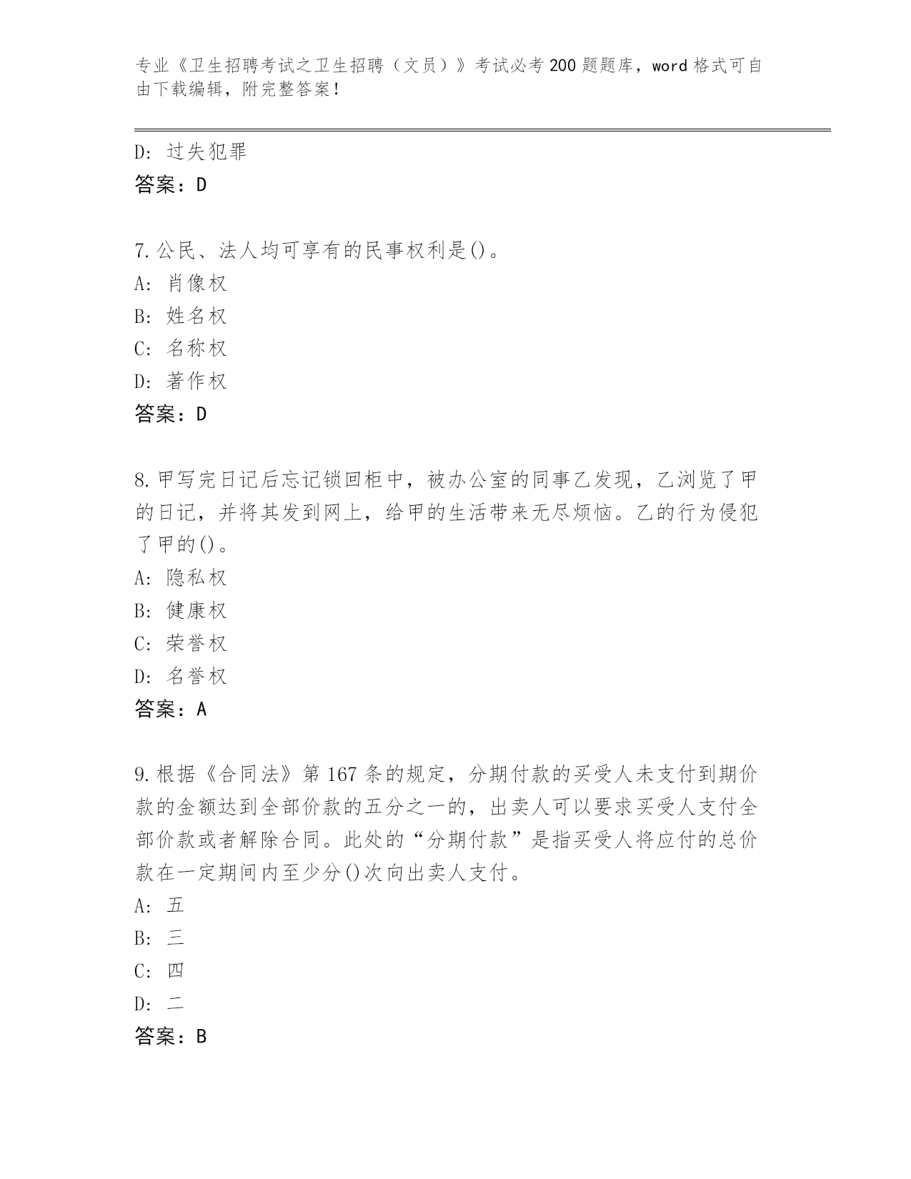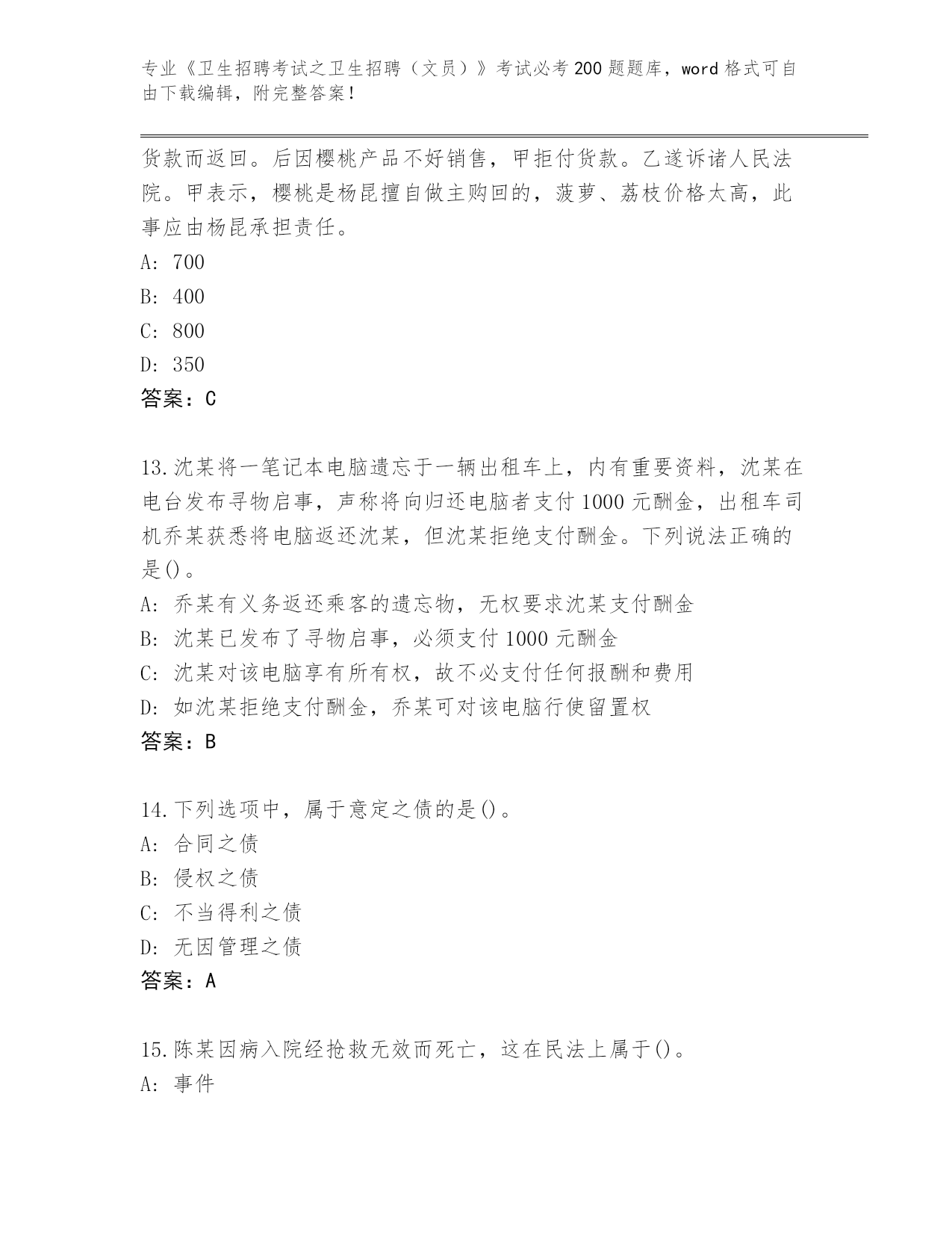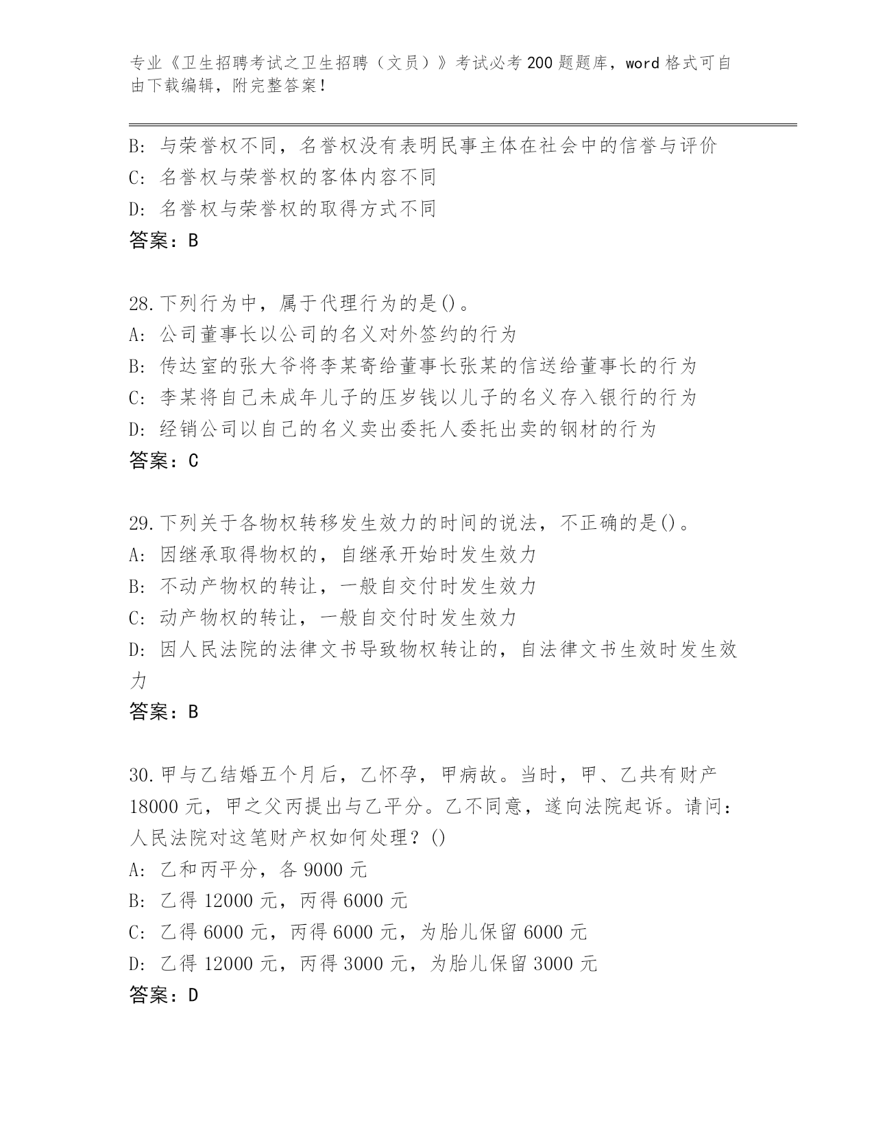 山西省盂县整理《卫生招聘考试之卫生招聘(文员)》考试必考200题真题题库附答案【培优B卷】