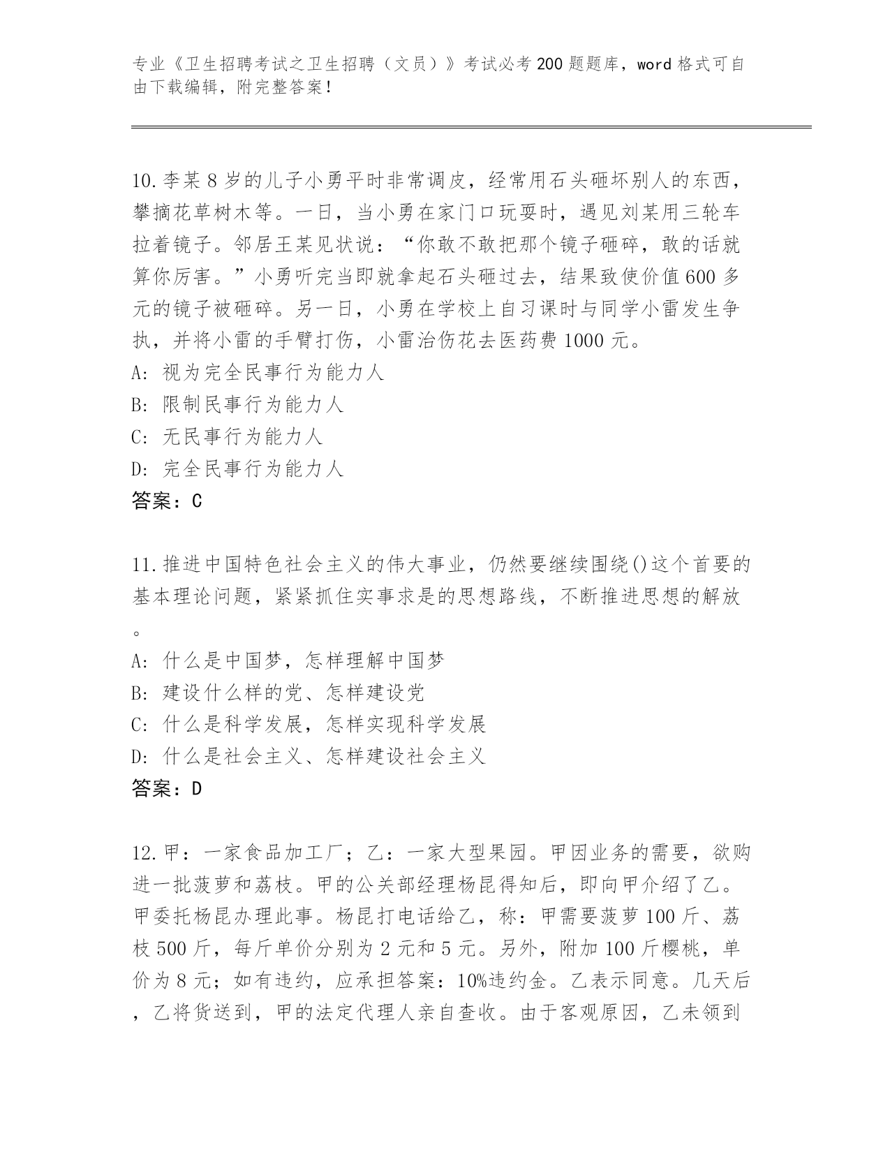 2024四川省德格县《卫生招聘考试之卫生招聘(文员)》考试必考200题内部题库【典型题】