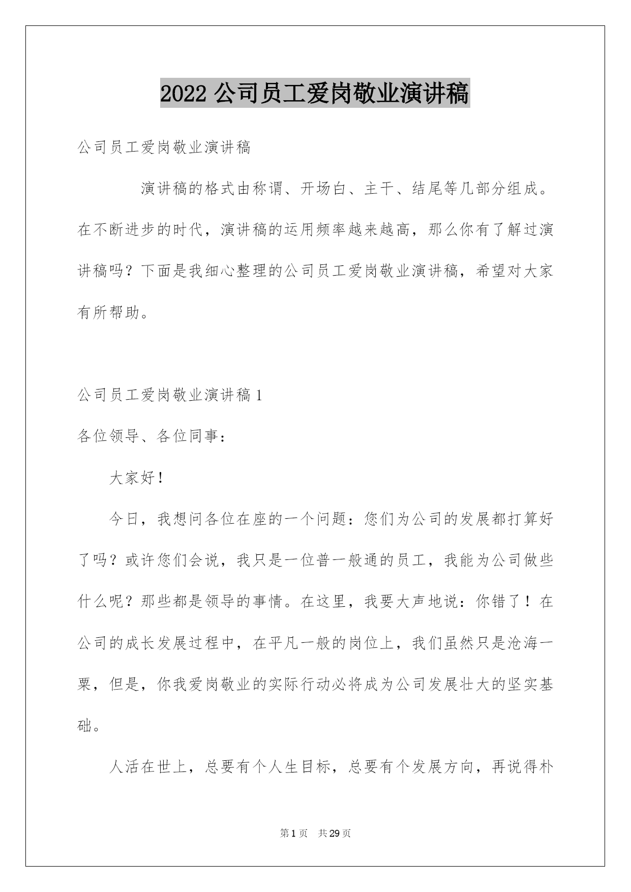 2022公司员工爱岗敬业演讲稿编辑原创范文.docx