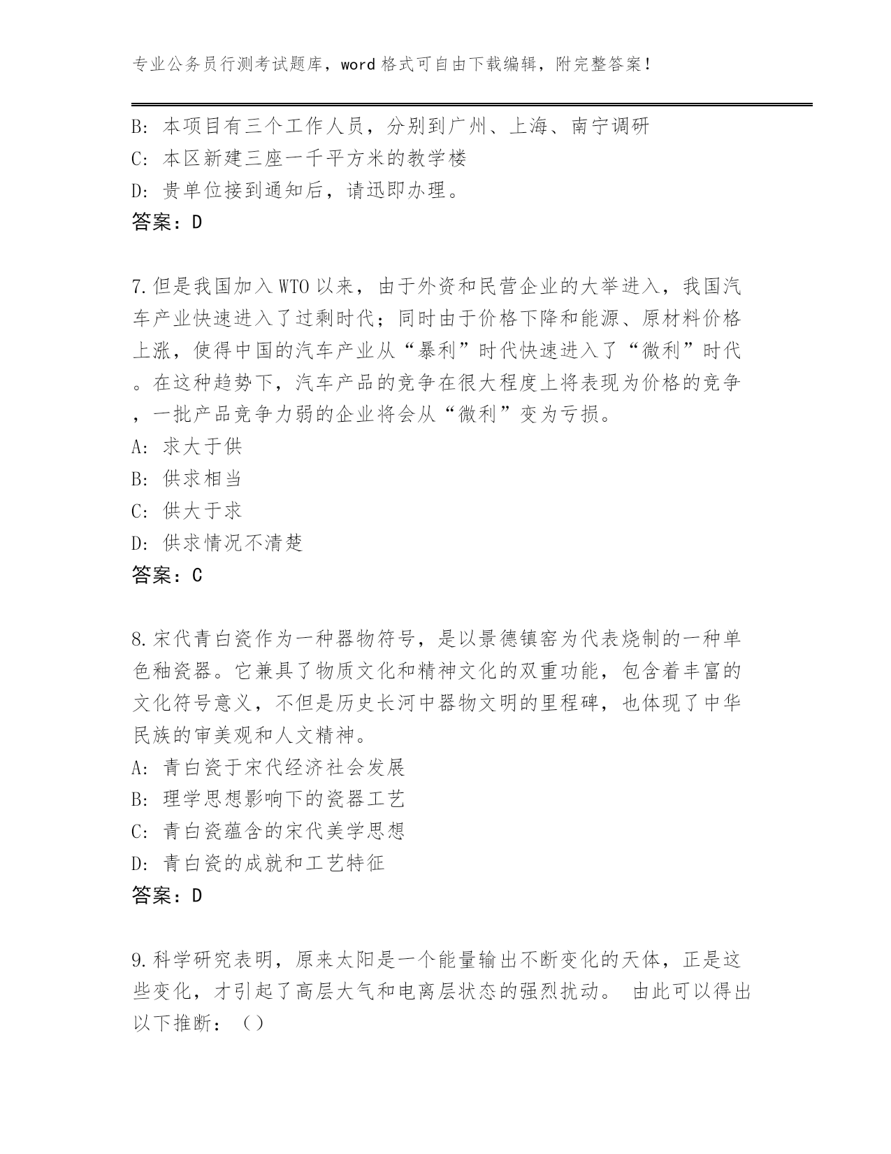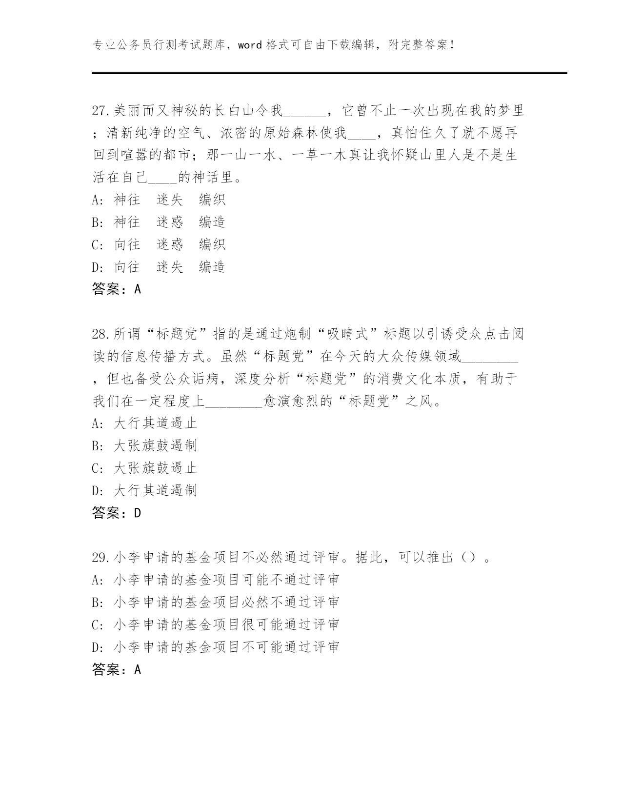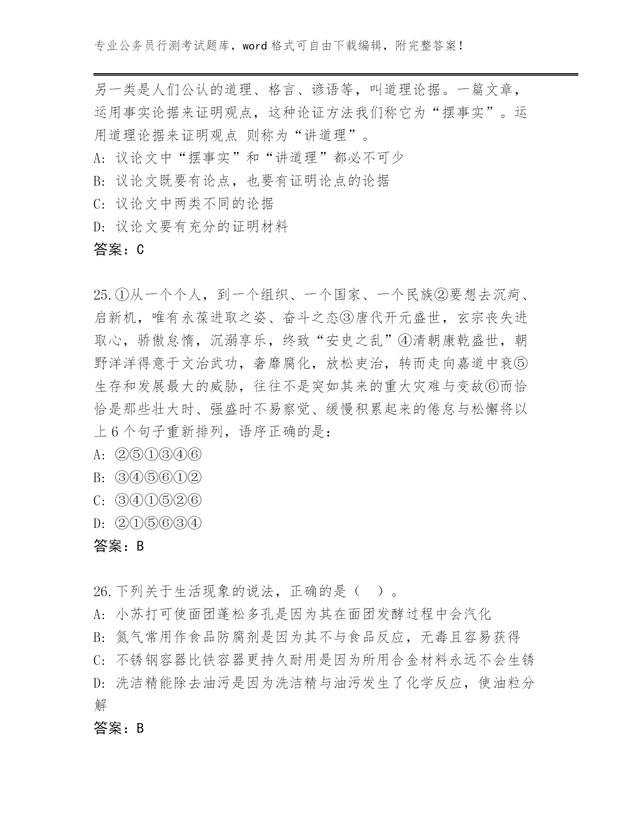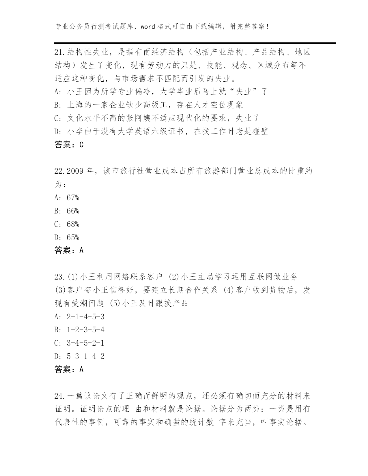 2024年天津市蓟州区公务员行测考试(满分必刷)