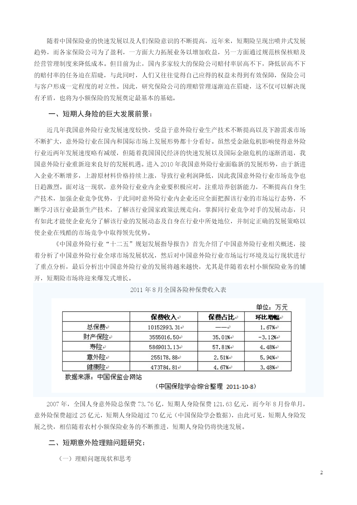 保险公司人身意外伤害保险理赔中存在问题的探讨.doc
