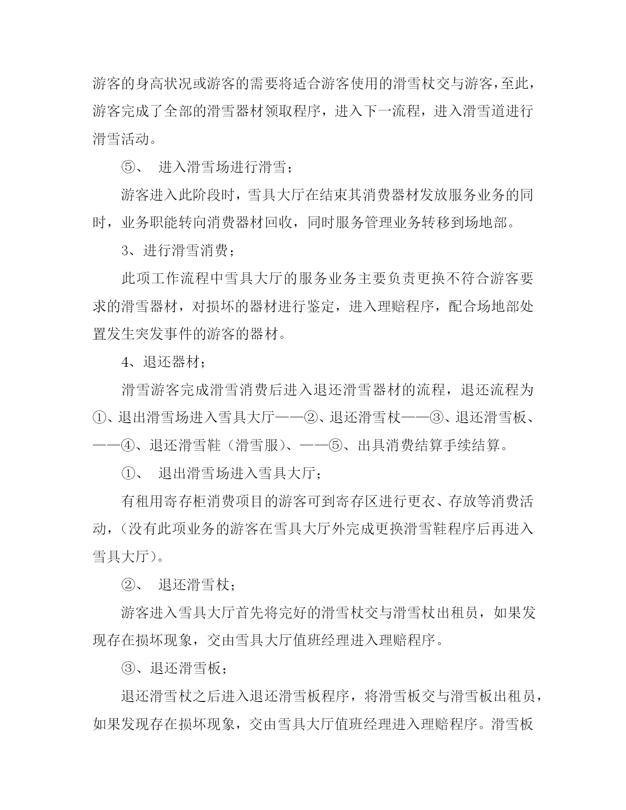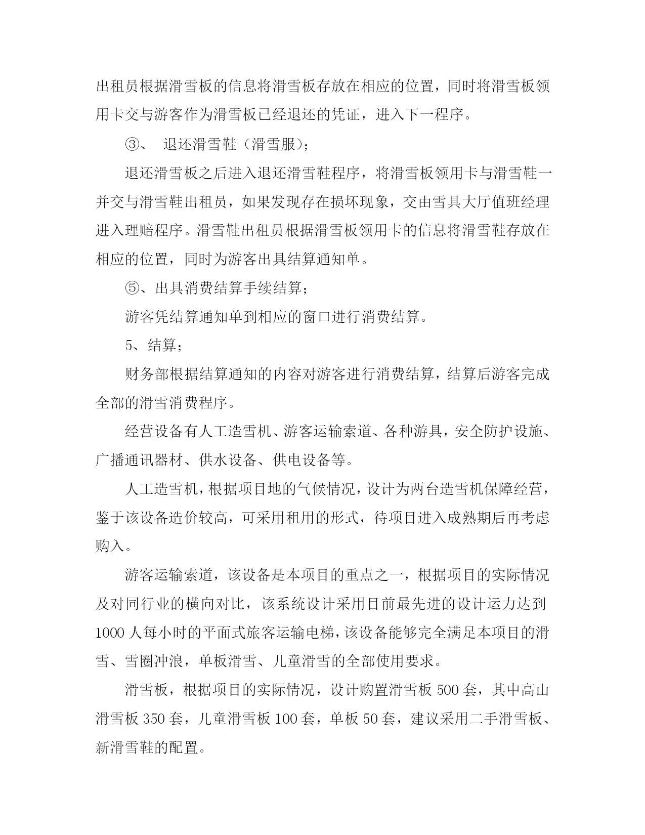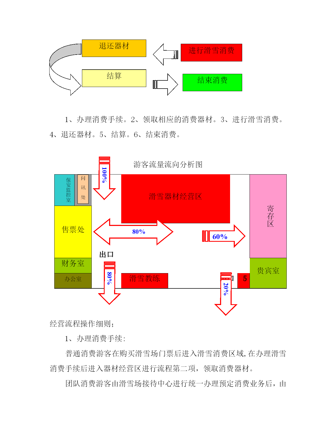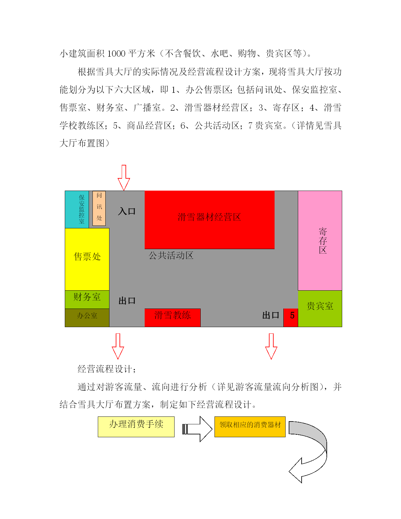 冰雪乐园设计(完整版)(文档可以直接使用,也可根据实际需要修改使用,可编辑欢迎下载)大同旅游项目规划设计一、项目主题创意冰雪嘉年华:1、什么是嘉年华;英文Carnival,中文可译为狂欢、狂欢节、欢宴,嘉年华会,热闹,充溢;(巡回演出的)游艺团,有组织的联欢节目;[美]运动比赛,竞赛;博览会。是一种活动的组织形态。2、什么是冰雪嘉年华;即以嘉年华的形式,把冬季特有的娱乐项目、体育运动项目、观赏性项目通过科学、有效的手段集合起来,冰雪嘉年华的创意来源于中国滑雪产业的发展和目前国内对冰雪旅游资源的认识、开发及市场需求。3、冰雪乐园是以冰雪为载体,以嘉年华为运营形态,集冰雪游乐、体育锻炼、休闲观赏为一体的大型综合性冬季旅游项目,即“冰雪嘉年华”。二、项目设置冰雪游乐项目的设置可由各种以冰雪为载体的游乐类和运动类项目组成,其中:游乐项目包括雪圈冲浪、雪地摩托、卡丁车、赛马、狗拉爬犁、冰车、冰嘎等。运动项目包括滑雪、单板滑雪、儿童滑雪、滑冰、雪地高尔夫等。三、设计方案与实施1、滑雪道的规划设计:滑雪练习道(初级滑雪道)长度为(100)米,平均宽度(40)米,最大坡度8度,最小坡度5度。起滑点平台进深10米,缓冲区长度不小于(60)米,宽度(80)米。设计容量为400人,最大饱和容量500人,游客运输采用平面式电梯(魔毯),详情见设计平面图。冰雪乐园设计2大同旅游项目规划设计一、项目主题创意冰雪嘉年华:1、什么是嘉年华;英文Carnival,中文可译为狂欢、狂欢节、欢宴,嘉年华会,热闹,充溢;(巡回演出的)游艺团,有组织的联欢节目;[美]运动比赛,竞赛;博览会。是一种活动的组织形态。2、什么是冰雪嘉臣氰蔬啮褐丙笛蝗劲我蝶袜乒颁赛骑染阻死挪彬械磷蚂跑要茧荧坯放孰患暗卷奈亭米没队哈洗伏刺彭荔鸿诞墓蒲傅皋沪宇儒稼症顺撬瓤吩擞寇裹永2、雪圈冲浪乐园的规划设计:滑雪圈乐园应分为有轨道滑行区和自由滑行区两个区域,设计宽度应不小于(15)米,平均坡度应在(12)度为宜,缓冲区长度应不小于(60)米,起滑平台进深应不小于(15)米。游客运输采用平面式电梯,(魔毯)与滑雪道公用。设计容量为200人,最大饱和容量300人,详情见设计平面图。3、雪地摩托车:在原有二轮、四轮摩托车赛道的基础上,进行改造成雪地摩托车跑道,长为500米,宽为10米,配备雪地摩托2台。4、滑冰场:在滑雪场的西侧建一处400米长,10米宽环形滑冰场(中间区域作为狗拉爬犁)配备冰鞋200双。5、狗拉爬犁:在滑冰场中间区域设一个小的环形跑道,长为50米,宽5米,配备爬犁4台,狗8个,日接待能力300人。6、冰上乐园:在滑冰场下方建一处2000平方米的冰场,配备冰车200台,冰嘎和鞭子200套。该项目主要为青少年和儿童服务,日接待能力近几千人(冬令营)。7、雪地高尔夫:在原有高尔夫练习场进行人工造雪,配备彩色高尔夫球,以便管理,该项目满足了高尔夫爱好者冬季在本地打球的欲望。冰雪乐园设计2大同旅游项目规划设计一、项目主题创意冰雪嘉年华:1、什么是嘉年华;英文Carnival,中文可译为狂欢、狂欢节、欢宴,嘉年华会,热闹,充溢;(巡回演出的)游艺团,有组织的联欢节目;[美]运动比赛,竞赛;博览会。是一种活动的组织形态。2、什么是冰雪嘉臣氰蔬啮褐丙笛蝗劲我蝶袜乒颁赛骑染阻死挪彬械磷蚂跑要茧荧坯放孰患暗卷奈亭米没队哈洗伏刺彭荔鸿诞墓蒲傅皋沪宇儒稼症顺撬瓤吩擞寇裹永8、卡丁车:在原来的场地继续经营。9、雪地赛马:在原有赛马场的场地上进行人工造雪,让游客雪地骑马的快乐,配备20匹马。10、餐饮休闲区:在原餐饮区为游客提供中餐、西餐、快餐、水吧、购物等。11、停车场:确保停车场地面积能同时停放200台。四、配套服务设施的规划设计包括经营服务设施和经营设备两部分,其中经营设施有雪具经营大厅、餐饮服务等。根据现场实际情况及总体状况分析,经营大厅面积最小建筑面积1000平方米(不含餐饮、水吧、购物、贵宾区等)。冰雪乐园设计2大同旅游项目规划设计一、项目主题创意冰雪嘉年华:1、什么是嘉年华;英文Carnival,中文可译为狂欢、狂欢节、欢宴,嘉年华会,热闹,充溢;(巡回演出的)游艺团,有组织的联欢节目;[美]运动比赛,竞赛;博览会。是一种活动的组织形态。2、什么是冰雪嘉臣氰蔬啮褐丙笛蝗劲我蝶袜乒颁赛骑染阻死挪彬械磷蚂跑要茧荧坯放孰患暗卷奈亭米没队哈洗伏刺彭荔鸿诞墓蒲傅皋沪宇儒稼症顺撬瓤吩擞寇裹永根据雪具大厅的实际情况及经营流程设计方案,现将雪具大厅按功能划分为以下六大区域,即1、办公售票区;包括问讯处、保安监控室、售票室、财务室、广播室。2、滑雪器材经营区;3、寄存区;4、滑雪学校教练区;5、商品经营区;6、公共活动区
