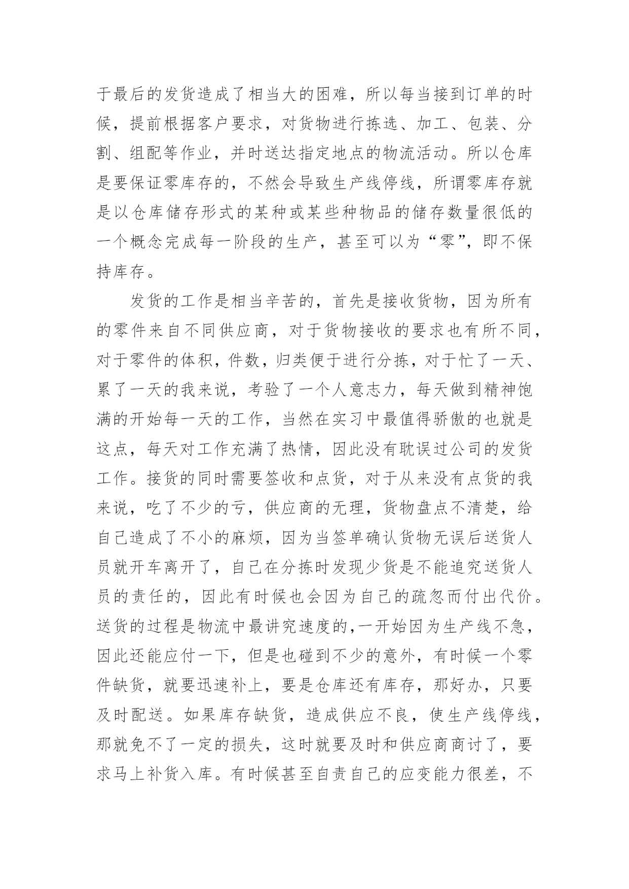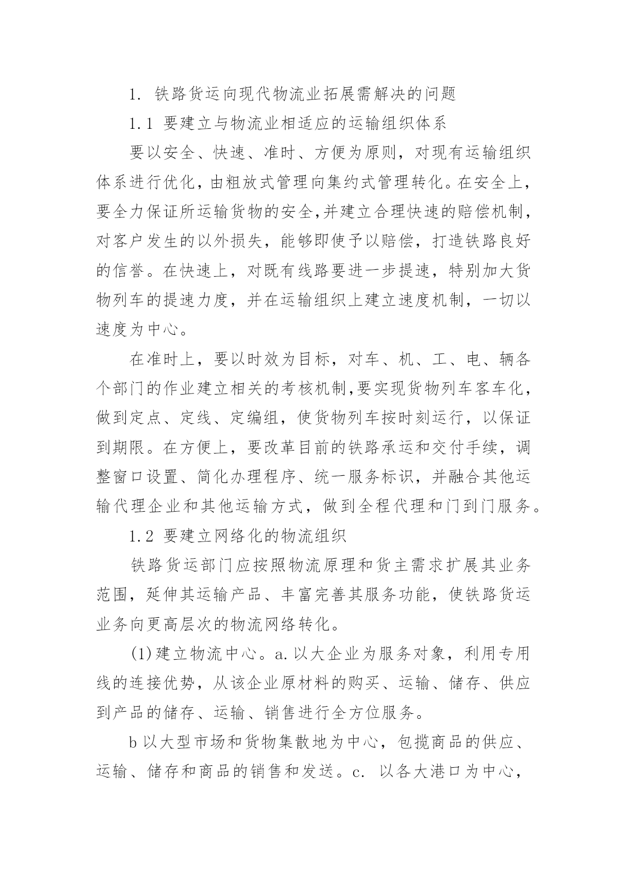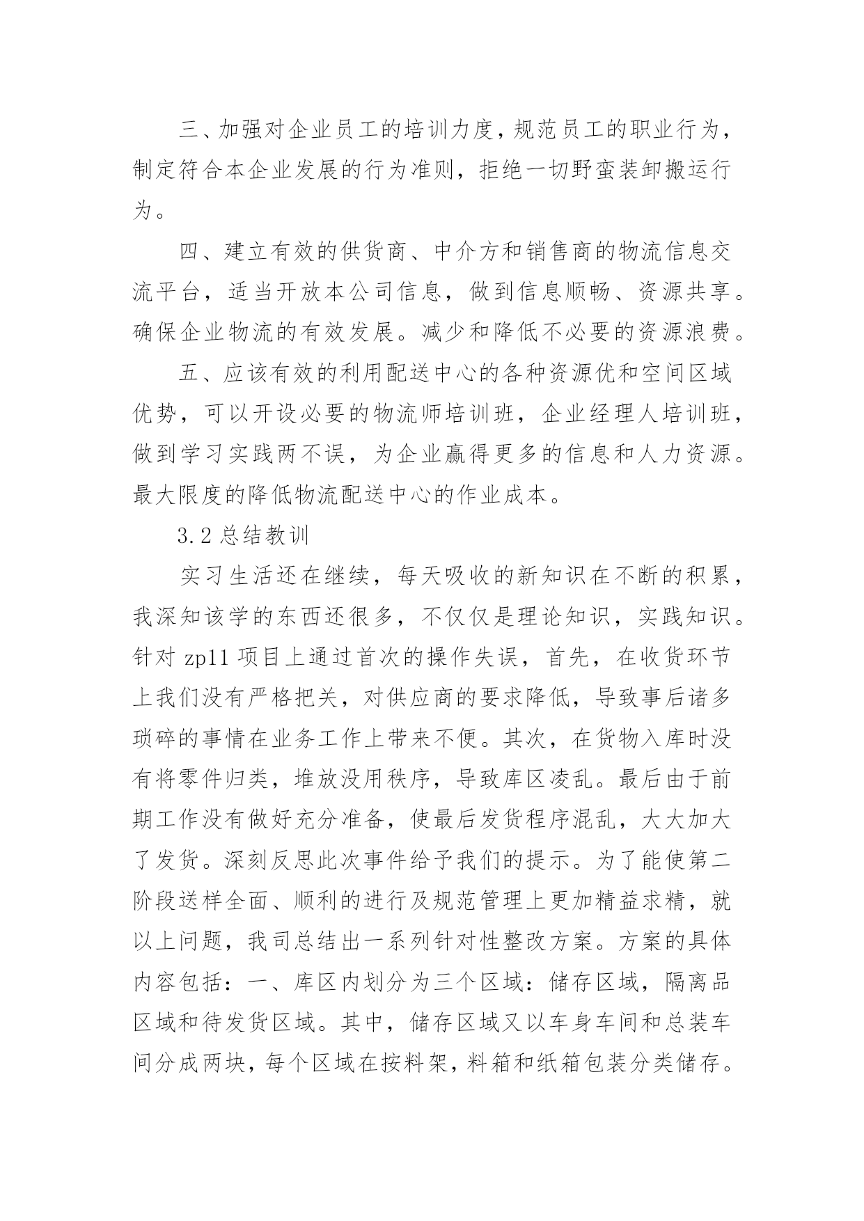 物流实习报告物流实习报告在我们平凡的日常里,报告十分的重要,报告具有语言陈述性的特点。你知道怎样写报告才能写的好吗?以下是小编精心整理的物流实习报告,仅供参考,欢迎大家阅读。物流实习报告1探讨了铁路货物运输企业向现代物流业拓展的必要性和可行性,进而分析铁路货运向现代物流转变的优势和劣势以及存在的问题,提出了传统铁路货物运输企业向现代物流企业拓展的思路及对策。中国加入WTO后,随着中国经济的快速发展和经济体制改革的不断深化,中国物流产业出现了加速发展的趋势,成为了国民经济中的一个重要组成部分和新的经济增长点。而传统的铁路货运已不能满足现代物流发展的需要,必须向提供运输、仓储、包装、配送、流通、加工、信息处理等多种服务的现代物流业发展。这无疑对承担着我国重要运输任务的铁路运输业提出了更新、更高的要求。面对机遇和挑战,传统铁路货运业必须加快向现代物流业转化的步伐,并把货运物流业作为铁路运输业发展的战略目标。通过资源整合,逐步使铁路从传统的、以运输为主的企业转变为规模经营、系统服务、现代化的第三方物流企业,成为我国综合物流系统的中坚力量。1.铁路货运向现代物流业拓展需解决的问题1.1要建立与物流业相适应的运输组织体系要以安全、快速、准时、方便为原则,对现有运输组织体系进行优化,由粗放式管理向集约式管理转化。在安全上,要全力保证所运输货物的安全,并建立合理快速的赔偿机制,对客户发生的以外损失,能够即使予以赔偿,打造铁路良好的信誉。在快速上,对既有线路要进一步提速,特别加大货物列车的提速力度,并在运输组织上建立速度机制,一切以速度为中心。在准时上,要以时效为目标,对车、机、工、电、辆各个部门的作业建立相关的考核机制,要实现货物列车客车化,做到定点、定线、定编组,使货物列车按时刻运行,以保证到期限。在方便上,要改革目前的铁路承运和交付手续,调整窗口设置、简化办理程序、统一服务标识,并融合其他运输代理企业和其他运输方式,做到全程代理和门到门服务。1.2要建立网络化的物流组织铁路货运部门应按照物流原理和货主需求扩展其业务范围,延伸其运输产品、丰富完善其服务功能,使铁路货运业务向更高层次的物流网络转化。(1)建立物流中心。a.以大企业为服务对象,利用专用线的连接优势,从该企业原材料的购买、运输、储存、供应到产品的储存、运输、销售进行全方位服务。b以大型市场和货物集散地为中心,包揽商品的供应、运输、储存和商品的销售和发送。c.以各大港口为中心,围绕出港货物的销售、发送、运输进行服务。c以各较大城市的`货场为中心,围绕城市的物流中心、大型商场进行服务。总之,要坚持“抓大放小”的原则,以货物和商品的集散地为重点,建立物流中心,而舍弃那些管理水平差、服务不好、生产效率低的车站。(2)各物流中心要以资本或业务为纽带,把依附的延伸服务企业和短途运输企业进行整合和重组,形成合力。(3)对各物流中心进行集中和联合,以现代企业制度为模式,组成大型物流企业集团,形成高度集中、协调运转的全国性、规模化物流网络,以适应物流业集中化的要求。(4)要与海运、空运、公路等运输方式建立协作关系,互惠互利,建立多种运输有机结合的运输体系,实现多式联运和门到门服务,共同建造现代物流服务。1.3要加强物流业的现代化建设反映快速化、功能集成化、服务系统化、目标广泛化、手段现代化、作业规范化、组织网络化、经营市场化、信息电子化是现代物流的特征。所以,要建成真正的物流企业,必须加强现代化的建设。要充分利用现代信息网络技术。信息网络技术是构成现代物流体系的重要组成部分,也是提高物流服务效率的重要技术保障。应积极利用网络技术,建立网络信息系统、货物跟踪系统、电子数据交换、存货管理系统,通过网络平台和信息技术将营业站及经营网点连接起来,既可以优化企业内部资源配置,实现管理的科学化、系统化、数字化和对货物运送进行全程的跟踪监控;又可以通过网络与用户、制造商及相关单位联结,实现资源共享、信息共用,对物流各环节进行实时跟踪、有效控制与全程管理。物流实习报告2作为物流人才的培养对象,我便自信满满的填上了应聘信息。在经过了初试复试之后,顺利的进入了__物流(上海)有限公司其下属单位上海港程储运有限公司进行实习。1.实习内容1.1实习单位简介上海港程国际储运有限公司,该公司成立于1998年5月31日,是中国船舶代理行业协会会员单位暨nvocc专业委员会委员单位,公司物流操作部任单证员一职。1.2实习岗位和培训我实习的岗位是物流操作部任单证员一职。主要从事的工作是对仓储部的进仓单进行整理归纳,以及对装箱单的打印及预录和审单。对这个环节有所了解后,我被调到了外仓库,进行了实地的收发货。主要是收货时对供应商送来的货物进行清点,核对收货单数量,入库,按客户的要求请将货物分批出货,配送时点安排做到准确,准时。之后
