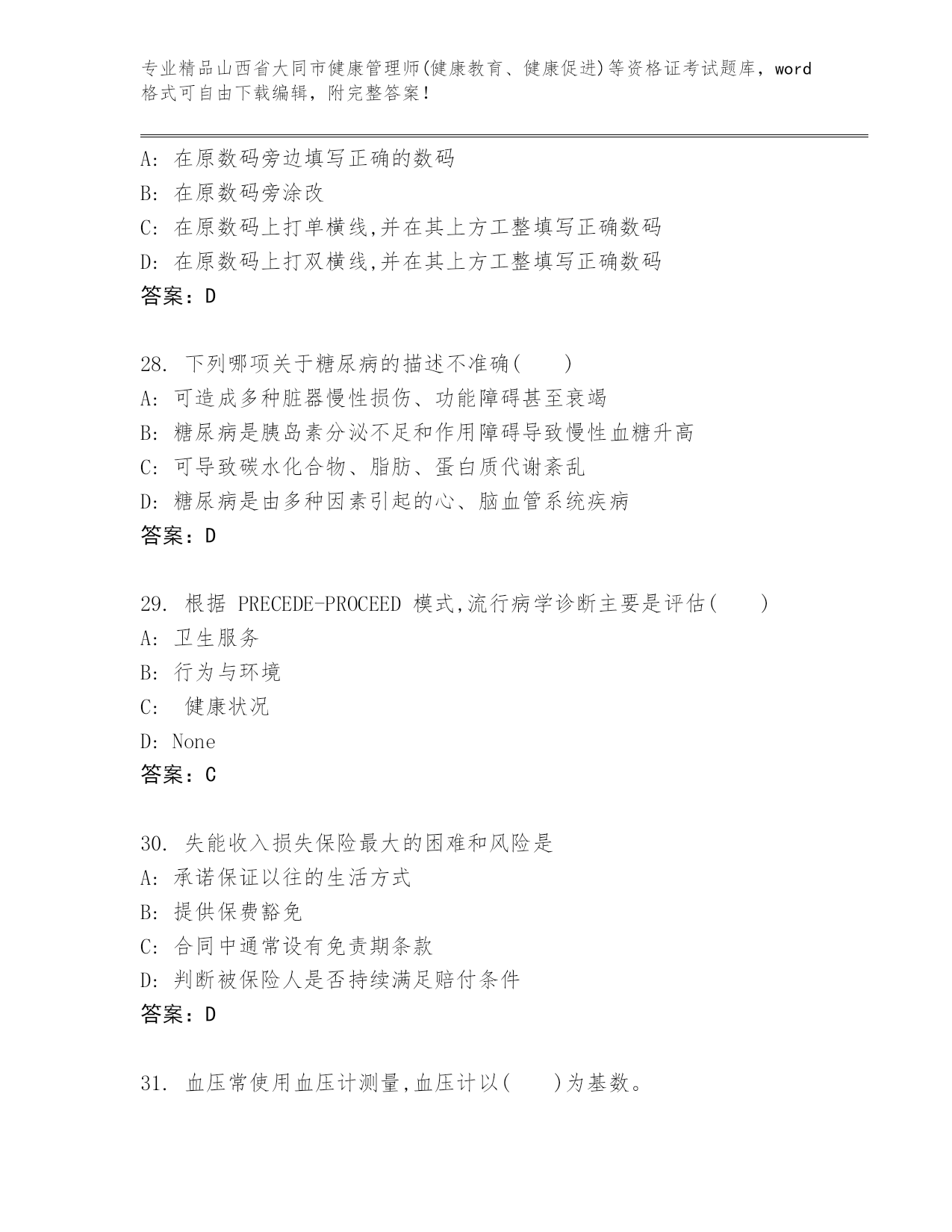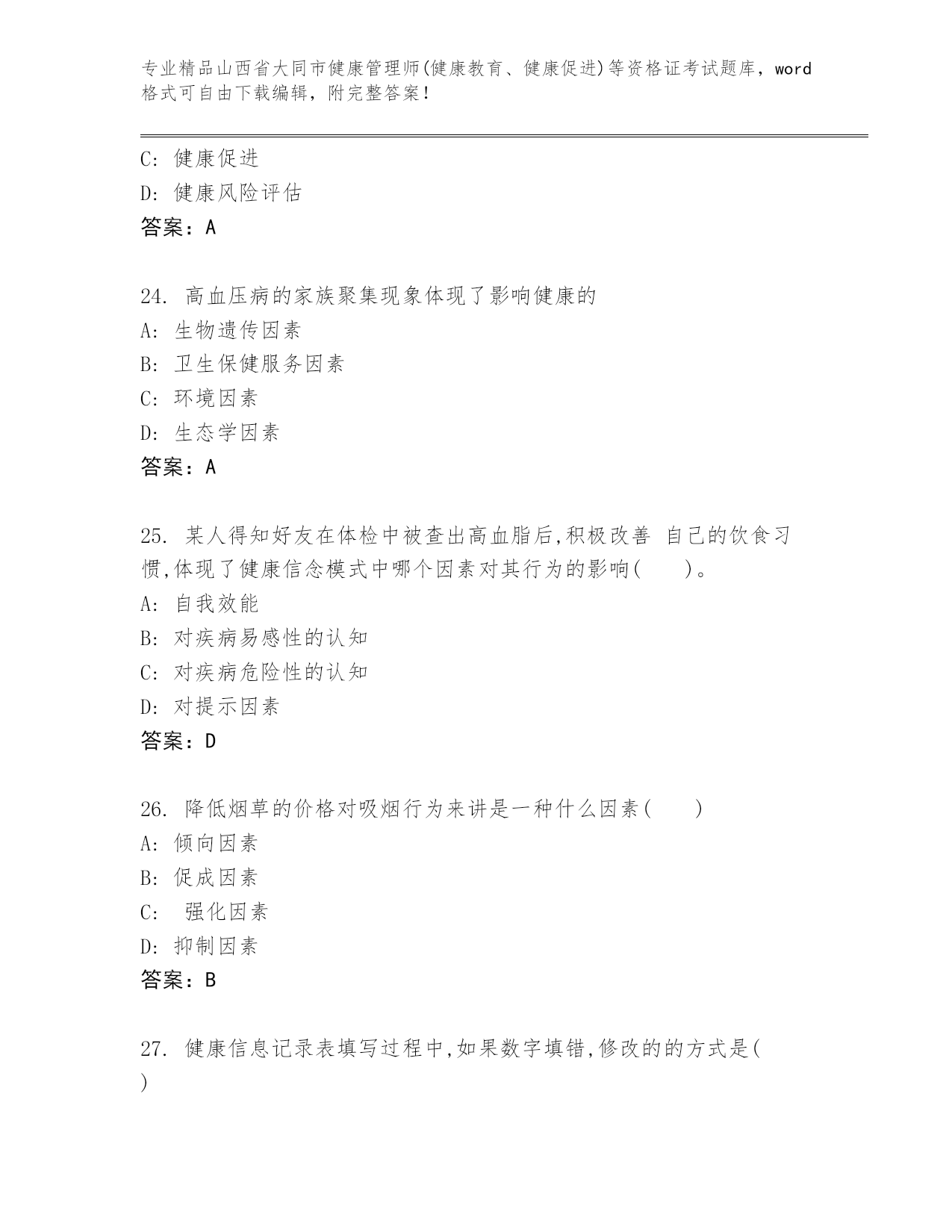 山西省大同市健康管理师(健康教育、健康促进)等资格证考试精选题库【轻巧夺冠】
