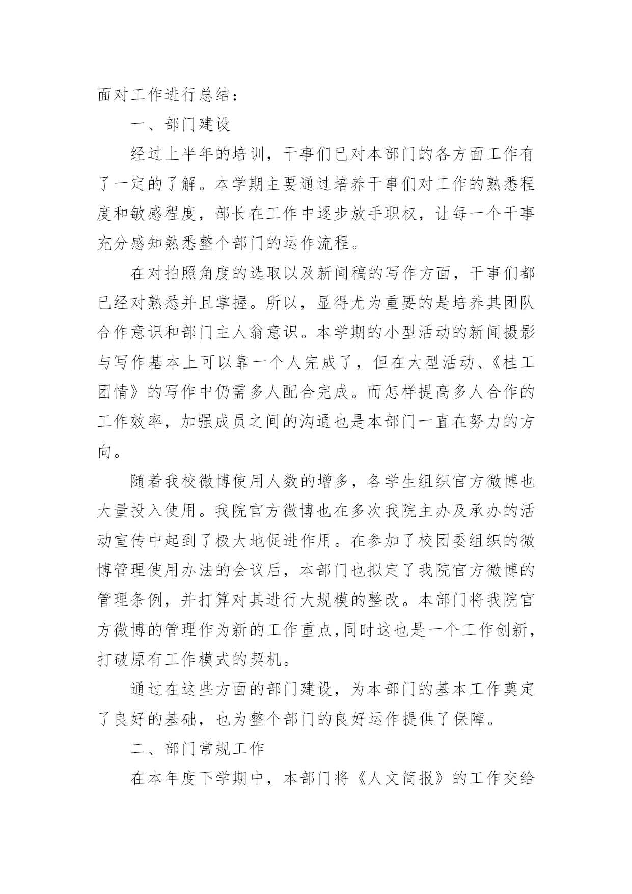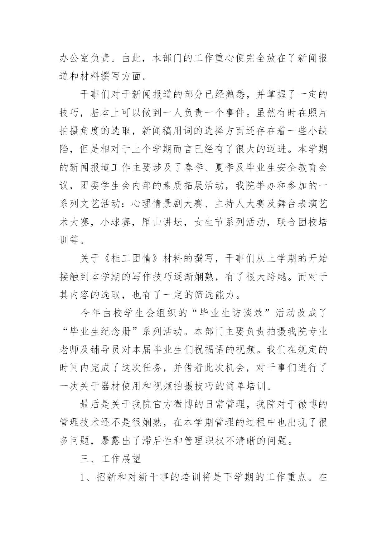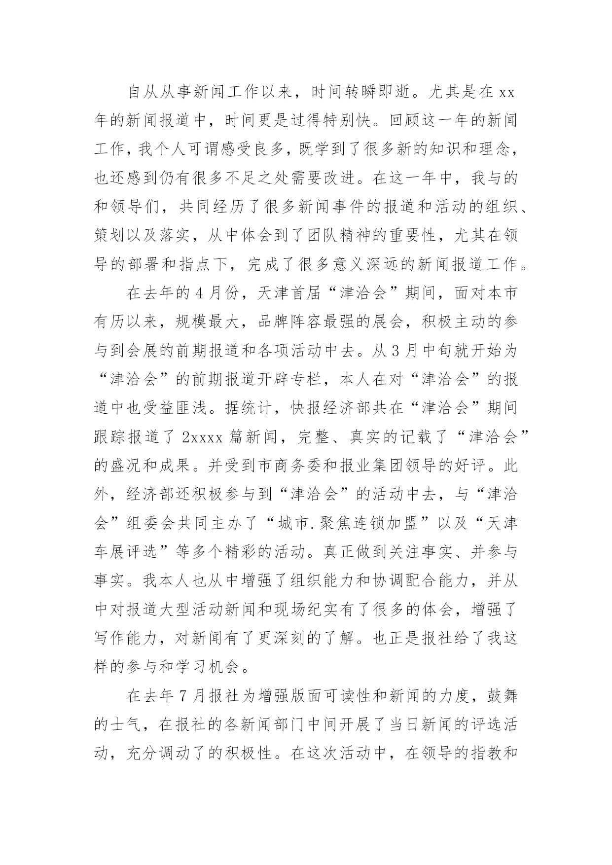 新闻工作者个人工作总结新闻工作者个人工作总结6篇总结是对某一阶段的工作、学习或思想中的经验或情况进行分析研究的书面材料,它是增长才干的一种好办法,因此,让我们写一份总结吧。总结你想好怎么写了吗?以下是小编整理的新闻工作者个人工作总结,仅供参考,大家一起来看看吧。新闻工作者个人工作总结1光阴荏苒,日月如梭,转眼间,我已是有三年半实战经验的“老新闻记者”啦,怎么是“老记者”呢,说实话,我一开始就知道记者的职业很辛苦,怕自己会坚持不下去,没想到:自己却在三年多的职业生涯中会这么顺利地走过来,并且走得还算“漂亮”。我分析了一下原因,首先与各位领导和同事们的帮助是分不开的;其次,自己目前也初步具备了作为一名记者该有的敢于吃苦,勇于实践,和不断学习提高的基本素质。xx年是国家比较坎坷艰难的一年,但却是我极速成长的一年。南方的冰雪灾害,汶川大地震,金融危机全球漫延等,时时牵动着全国人民的心,也触动着我思想的最深处,“作为新闻记者的我能干些什么呢?”“众志成城,支援灾区”“坚定信心,迎难而上”等一系列新闻小专题出自我手;奥运会时,全县不同群众以实际行动迎接奥运会的喜悦心情,我的碳素笔头和摄像镜头将其一一记录;全县组织开展的“三访六帮”活动,我多次深入贫困户,无保户家里,了解他们的疾苦,关心弱势群体,电视节目中经常穿插报道。xx年,我基本完成了自己的本职工作。工作中,我不断努力提高自身素质与修养。我要求自己做到:在思想上和政治上与党中央保持一致,坚持社会主义方向;不断培养自己的好奇心理、竞争意识、冒险精神和坚强的意志。我常常利用工作之余寻找各种与业务有关的资料,进行分析研究,取其精华、去其糟粕。坚持每天认真观看各大电视台的新闻栏目;不断加强自身修养,使自已努力做到:重事实,讲真话,主持正义,坚持真理;报道内容健康,有益社会进步;讲究文德,反对以稿谋私;自觉抵制拜金主义、享乐主义、个人主义思想侵蚀;处理好与同事间的关系等。工作中,我敢于吃苦,勇于实践。新闻工作是一项实践性很强的工作,缺乏对社会的基本了解的人是没有资格做一名优秀的新闻人的,我要求自己做到“三勤”、“两不怕”,即“脑勤、腿勤、耳勤”和“不怕苦,不怕累”。一分耕耘、一分收获。xx年,由我采写的《xx》新闻获省、市电视新闻短消息二等奖;《农民工子女上学不难了》获市级电视台好新闻三等奖。今后工作中,我将再接再励,使工作再上一个新台阶。新闻工作者个人工作总结2自从从事新闻工作以来,时间转瞬即逝。尤其是在xx年的新闻报道中,时间更是过得特别快。回顾这一年的新闻工作,我个人可谓感受良多,既学到了很多新的知识和理念,也还感到仍有很多不足之处需要改进。在这一年中,我与的和领导们,共同经历了很多新闻事件的报道和活动的组织、策划以及落实,从中体会到了团队精神的重要性,尤其在领导的部署和指点下,完成了很多意义深远的新闻报道工作。在去年的4月份,天津首届“津洽会”期间,面对本市有历以来,规模最大,品牌阵容最强的展会,积极主动的参与到会展的前期报道和各项活动中去。从3月中旬就开始为“津洽会”的前期报道开辟专栏,本人在对“津洽会”的报道中也受益匪浅。据统计,快报经济部共在“津洽会”期间跟踪报道了2xxxx篇新闻,完整、真实的记载了“津洽会”的盛况和成果。并受到市商务委和报业集团领导的好评。此外,经济部还积极参与到“津洽会”的活动中去,与“津洽会”组委会共同主办了“城市.聚焦连锁加盟”以及“天津车展评选”等多个精彩的活动。真正做到关注事实、并参与事实。我本人也从中增强了组织能力和协调配合能力,并从中对报道大型活动新闻和现场纪实有了很多的体会,增强了写作能力,对新闻有了更深刻的了解。也正是报社给了我这样的参与和学习机会。在去年7月报社为增强版面可读性和新闻的力度,鼓舞的士气,在报社的各新闻部门中间开展了当日新闻的评选活动,充分调动了的积极性。在这次活动中,在领导的指教和策划下,我的几篇稿件也有幸获奖,但回顾获奖的经历却感慨万千。其中,狗不理在海外遭遇抢注的报道,功夫在于平日于口内的积极联系和多新闻的不懈追踪。而探秘商场假货内幕的稿件,获奖原因主要是能够生动、深刻的.挖掘行业内幕。该稿件报道后,也引起了市商业部门、市工商局等部门的高度重视。主管部门还特此对本市商业市场进行了更严格的强化管理。这我从中也体会到,作为一名与事实、新闻和服务社会中紧密而有益的联系。随后,我的又一篇报道,关于对本市商家向未成年人售酒的调查,也获得了好评。并且部门随后还专门开设了关注未成年人消费的专题报道。但在撰写这些新闻报道的同时,我也深刻的感受到部门领导和给予我的支持和帮助,因为受到个人能力的限制,在很多新闻报道中我也经常漏洞百出,有时还会犯错别字、语句不通等很低级的错误,如果没有领导和的把关,就不会有合格满意的报道。去年中秋节前夕,作