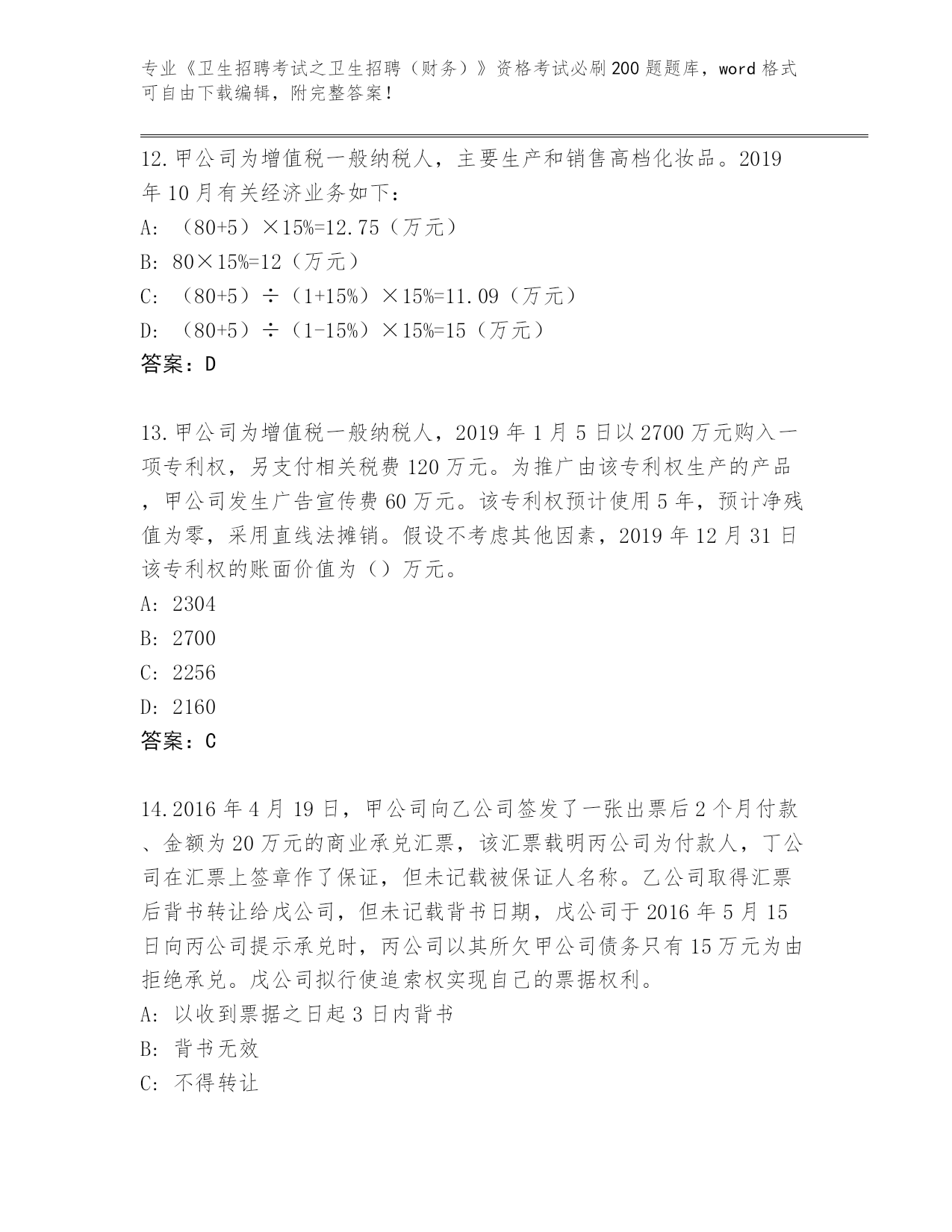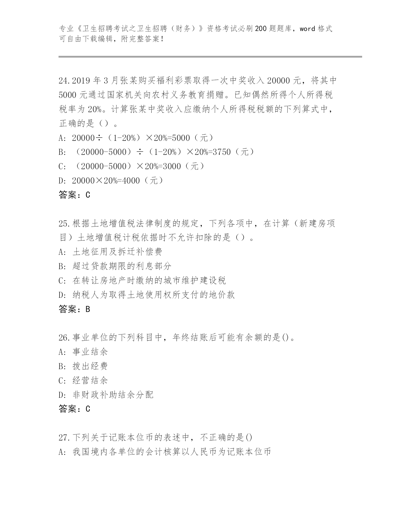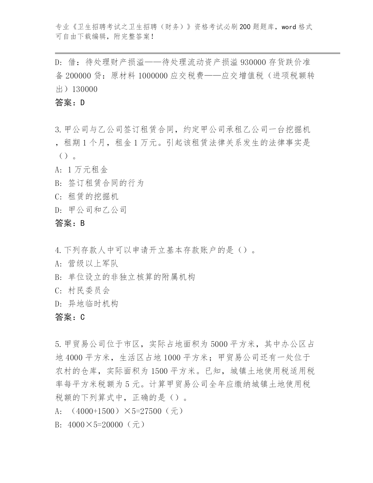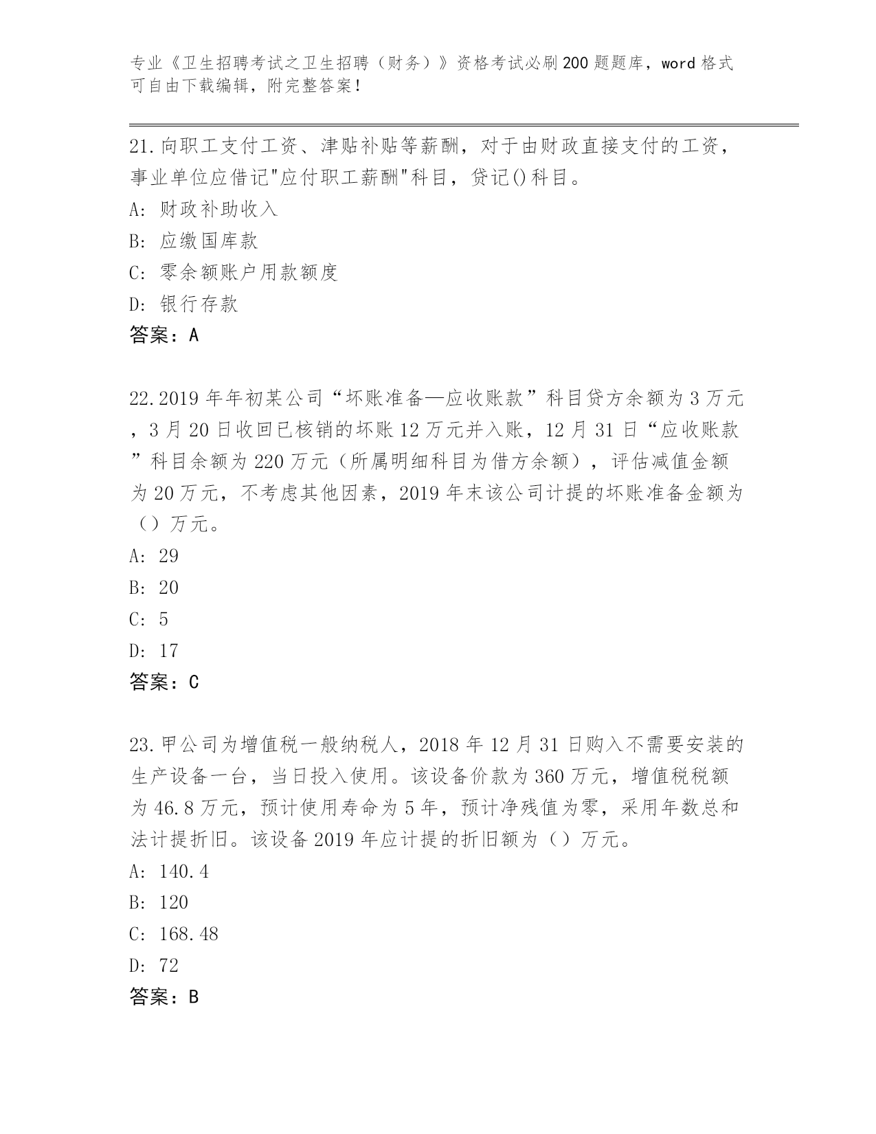 湖北省崇阳县2024《卫生招聘考试之卫生招聘(财务)》资格考试必刷200题真题题库附答案【预热题】