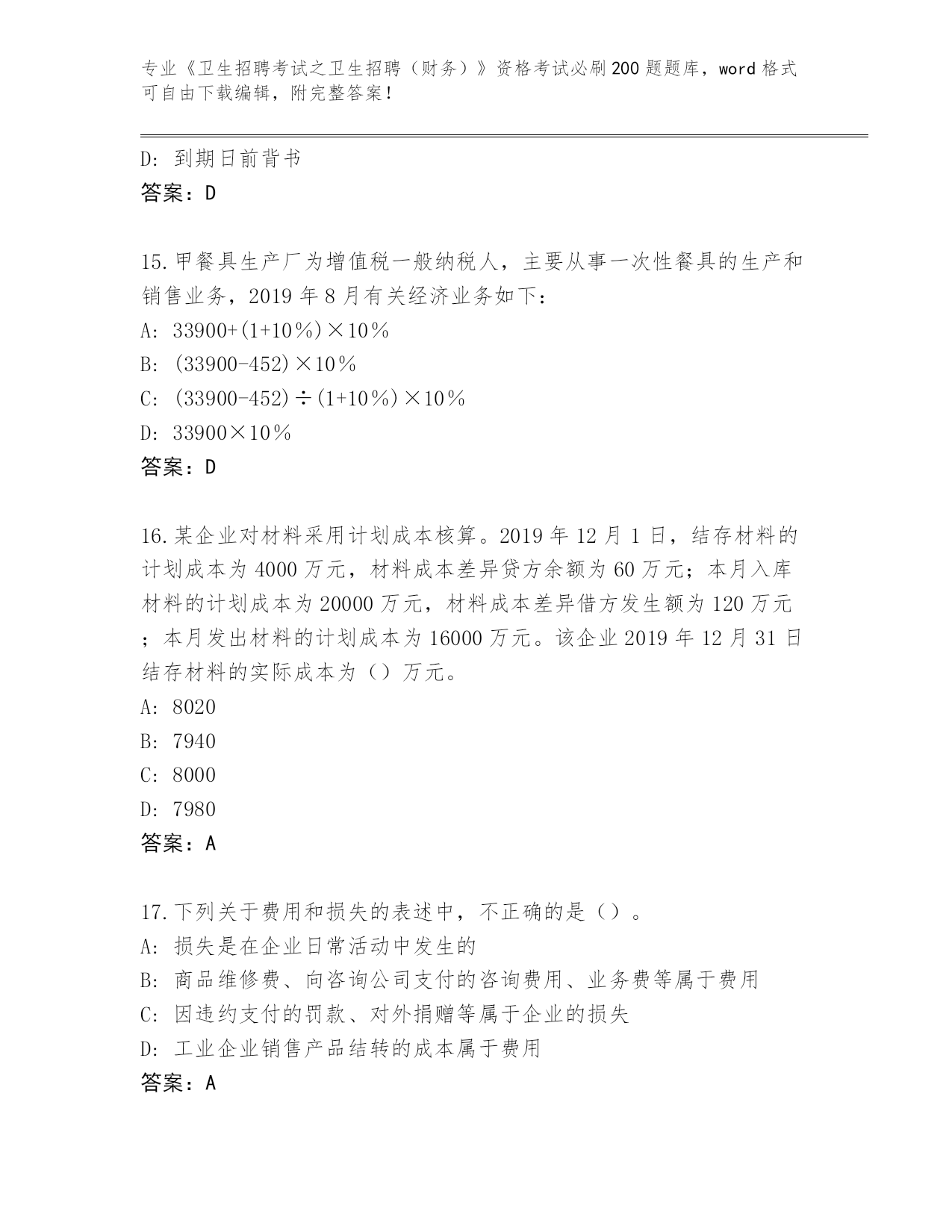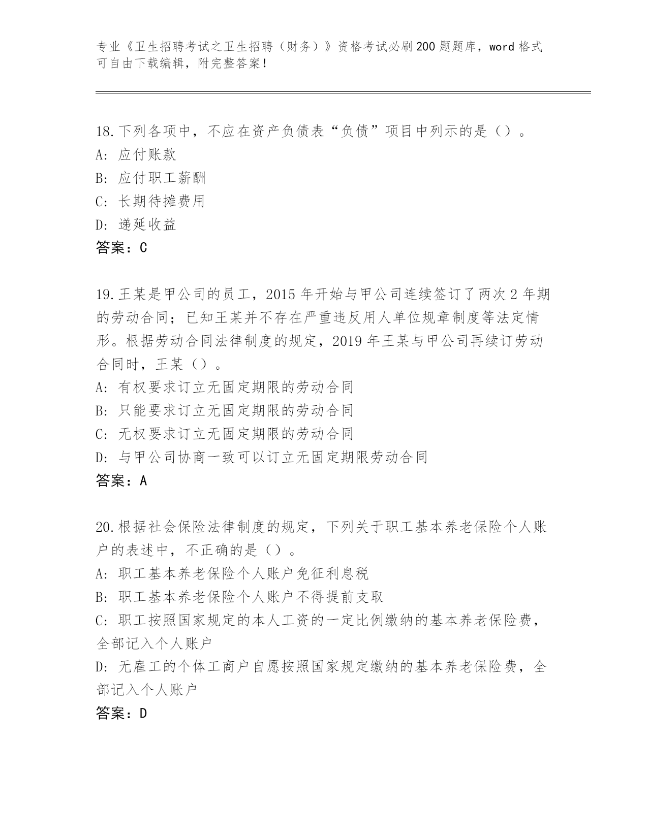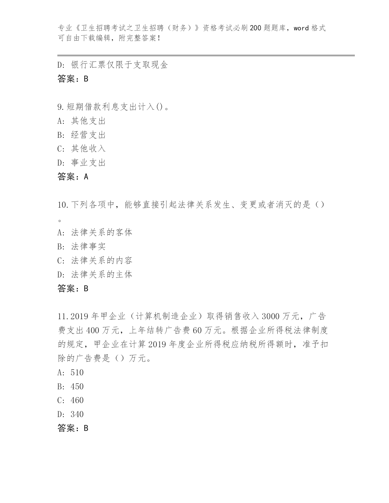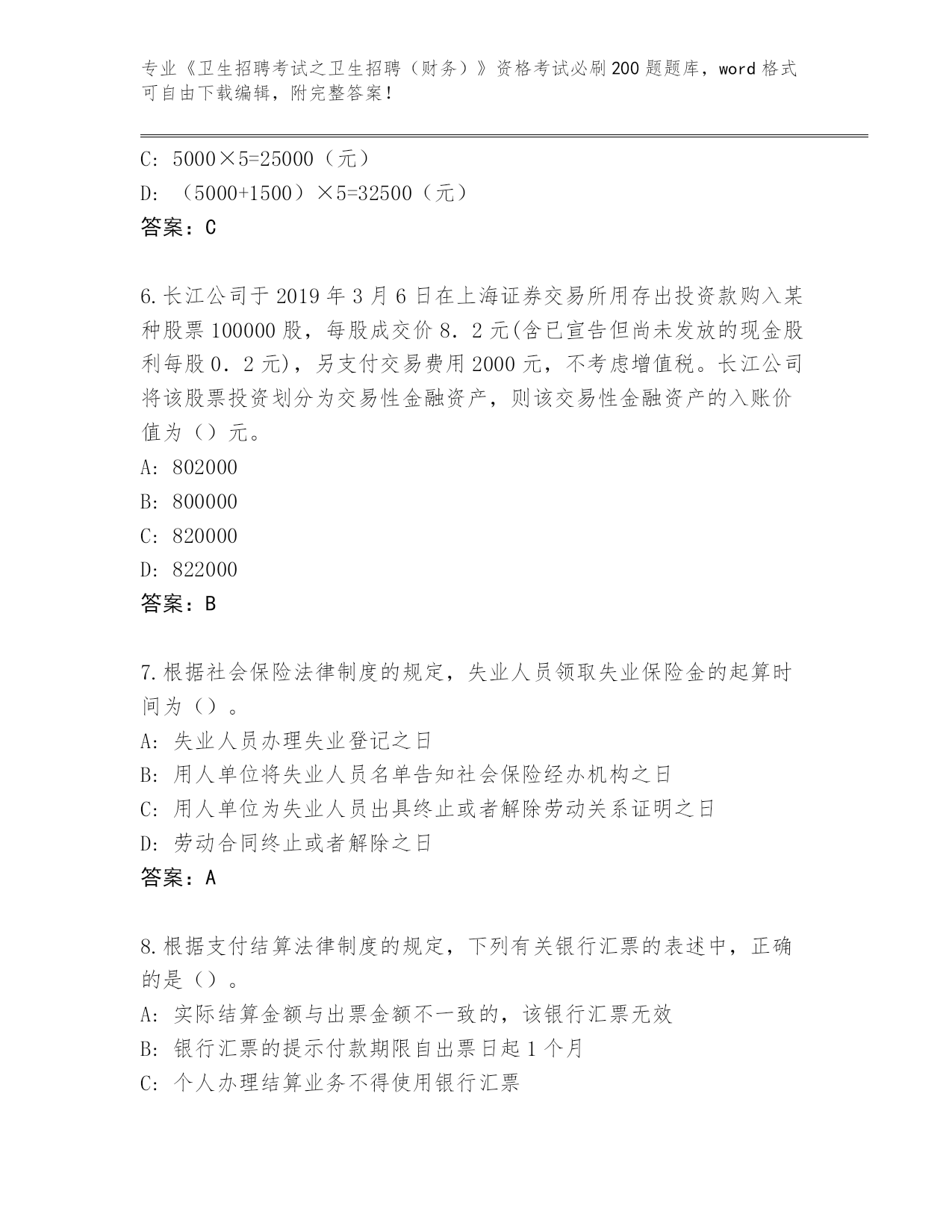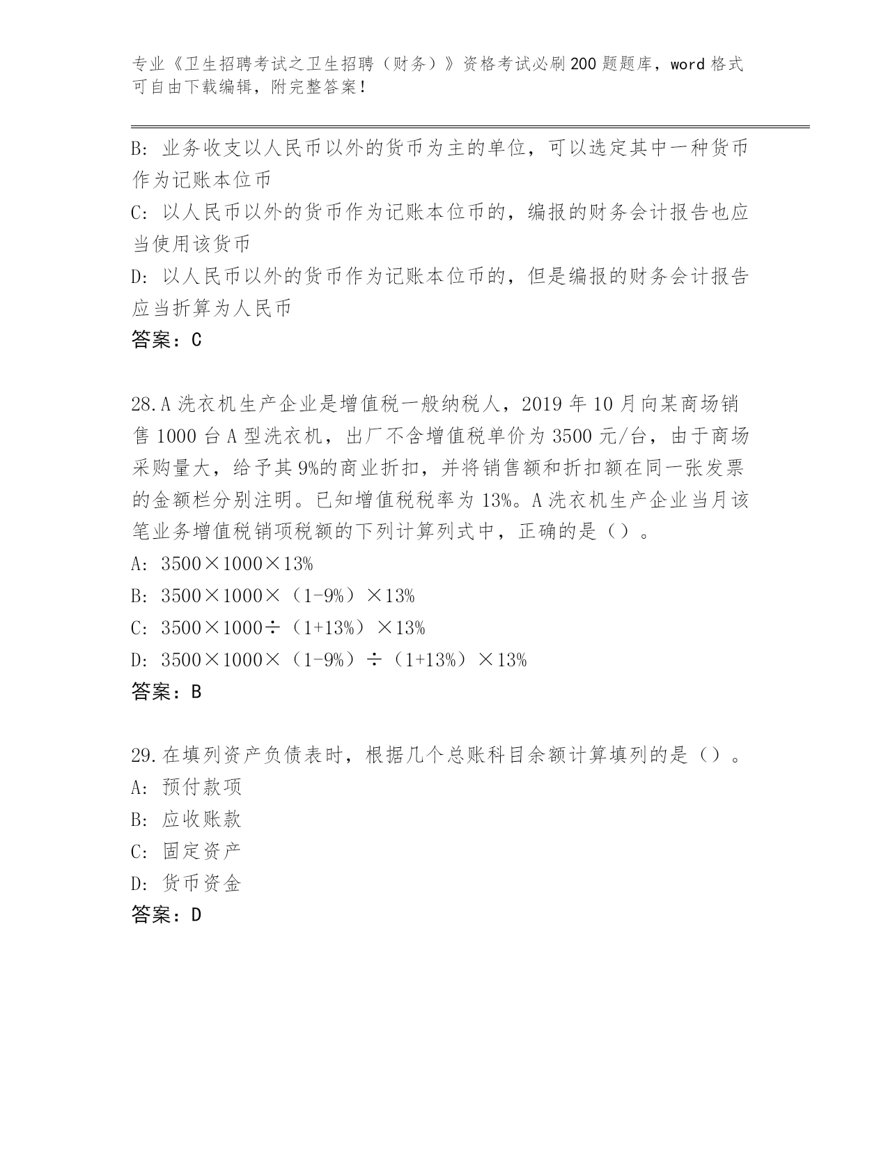 历年湖北省崇阳县《卫生招聘考试之卫生招聘(财务)》考试必背200题真题题库(预热题)