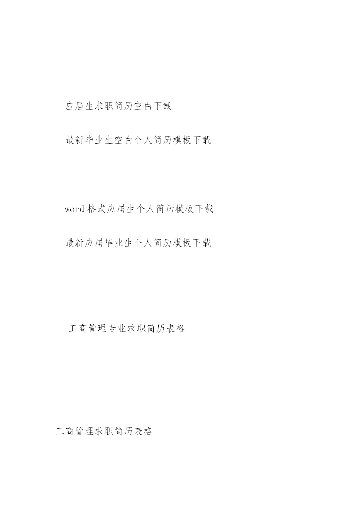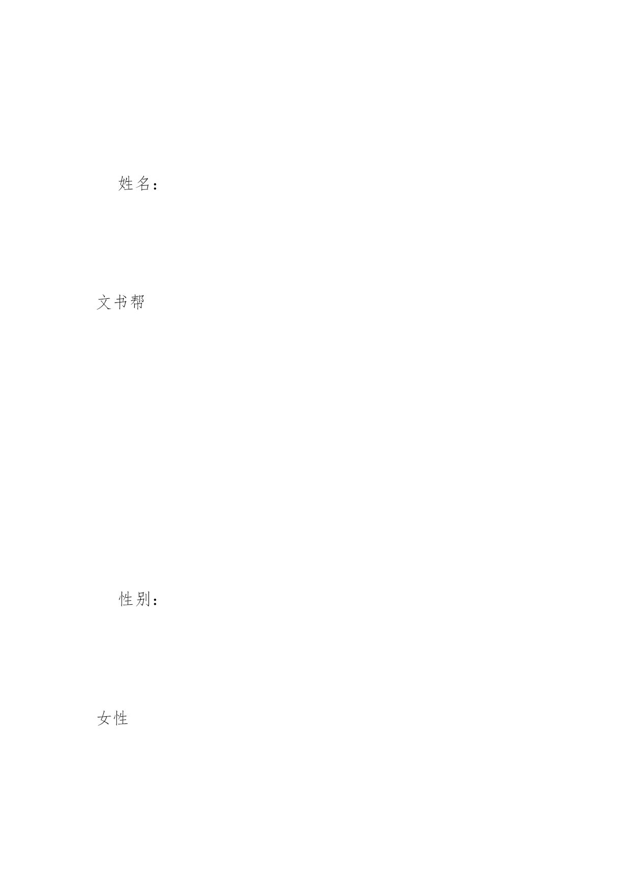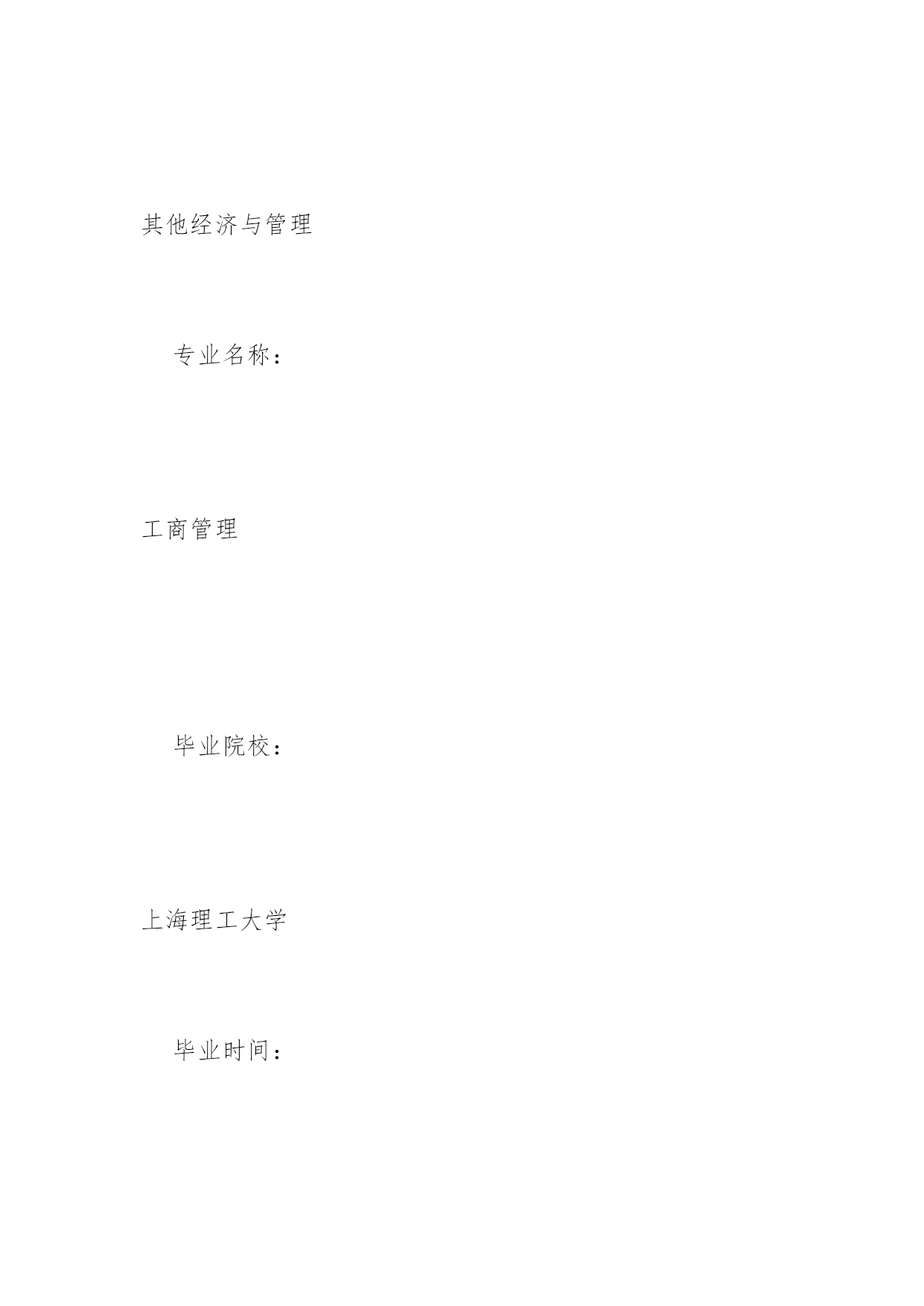 工商管理专业求职简历表格工商管理专业求职简历表格应该怎么做呢?在制作简历时,大家可以选择表格式简历!这样既可以将自己信息全部书写进去,页面也会非常清晰明了!以下是文书帮分享的:工商管理专业求职简历表格,欢迎大家阅读!以下《word个人简历模板下载》、《个人简历表格下载word》简历模板大全个人简历表格免费下载毕业简历模板一页word下载实习生空白简历下载大学就业个人简历模板彩色个性简历模板最新个人简历范文模板下载空白word简历下载应届生个人空白简历模板下载word格式简单实用的个人简历下载大学生简历模板word格式免费下载应届生求职简历空白下载最新毕业生空白个人简历模板下载word格式应届生个人简历模板下载最新应届毕业生个人简历模板下载工商管理专业求职简历表格工商管理求职简历表格姓名:文书帮性别:女性出生年月:1986年7月身份证号:身高:172视力情况:好婚姻状况:未婚政治面貌:团员户口所在地:新浜镇家庭住址:上海市学业资料人才类型:不限最高学历:本科专业类别:其他经济与管理专业名称:工商管理毕业院校:上海理工大学毕业时间:2010外语种类:英语外语等级:无口语水平:一般第二外语:无电脑水平:熟练职场资料希望应聘的职位类别:文秘行政/人力资源/后勤类目前从事岗位:失业希望从事行业:其他行业期望月薪:2000-3000工作经验:2006/08-2007/03上海晋拓金属制品有限公司人事助理●2008/03-2010/12上海新雅物业管理有限公司行政文员自我评价:主修课程:C程序设计、数据结构与算法、数据库设计与开发、计算机组织与结构、操作系统与Unix、计算机网络、计算机多媒体、Windows技术、接口技术、软件工程、经济学原理、市场营销、经济学、财务管理、企业战略管理、西方经济学、统计学、会计学、人力资源管理、企业战略管理掌握技能:平面制图软件(Photoshop、Indesign)机械制图软件(AutoCAD)网页制作软件(Frontpage、Dreamweaver、Firewoks)视频编辑软件(AdobePremierePro)字幕制作软件(Popsub)音频编辑软件(CoolEditPro、GoldWave)熟练操作Office各软件个人评价:本人个性随和稳重,有上进心,工作敬业负责,有较强的责任心和耐心;五笔打字,平均速度100汉字/分钟;拥有C型驾照;热爱绘画并自学成才。求职意向:行政、人事、助理教育背景专业类别所学专业专业学历专业学制就学形式毕业时间毕业院校其他经济与管理工商管理本科2年其他2010年上海理工大学计算机类计算机技术及应用大专3年全日制2007年上海大学工作经历就职起讫时间单位行业就职单位就职部门职位类别职位名称职务层次工作描述2008年3月至2010年12月房地产物业上海新雅物业管理有限公司管理部文秘行政/人力资源/后勤类行政文员职员报修电话的接听与记录;员工档案的录入和管理;业主文件资料、原始数据的保管、归档;办公用品、办公设备、耗材等物资的购买;领导安排的其它行政工作。2006年8月至2007年3月机械模具五金上海晋拓金属制品有限公司人事部文秘行政/人力资源/后勤类人事助理职员整理、统计员工日常考勤资料;员工日常加班