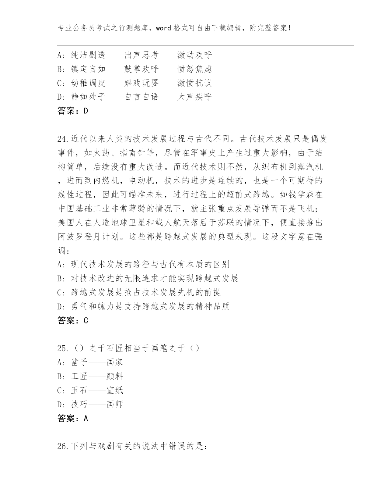山西省交口县2024公务员考试之行测题库及参考答案(预热题)