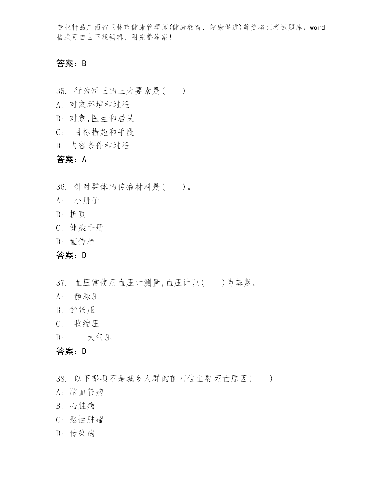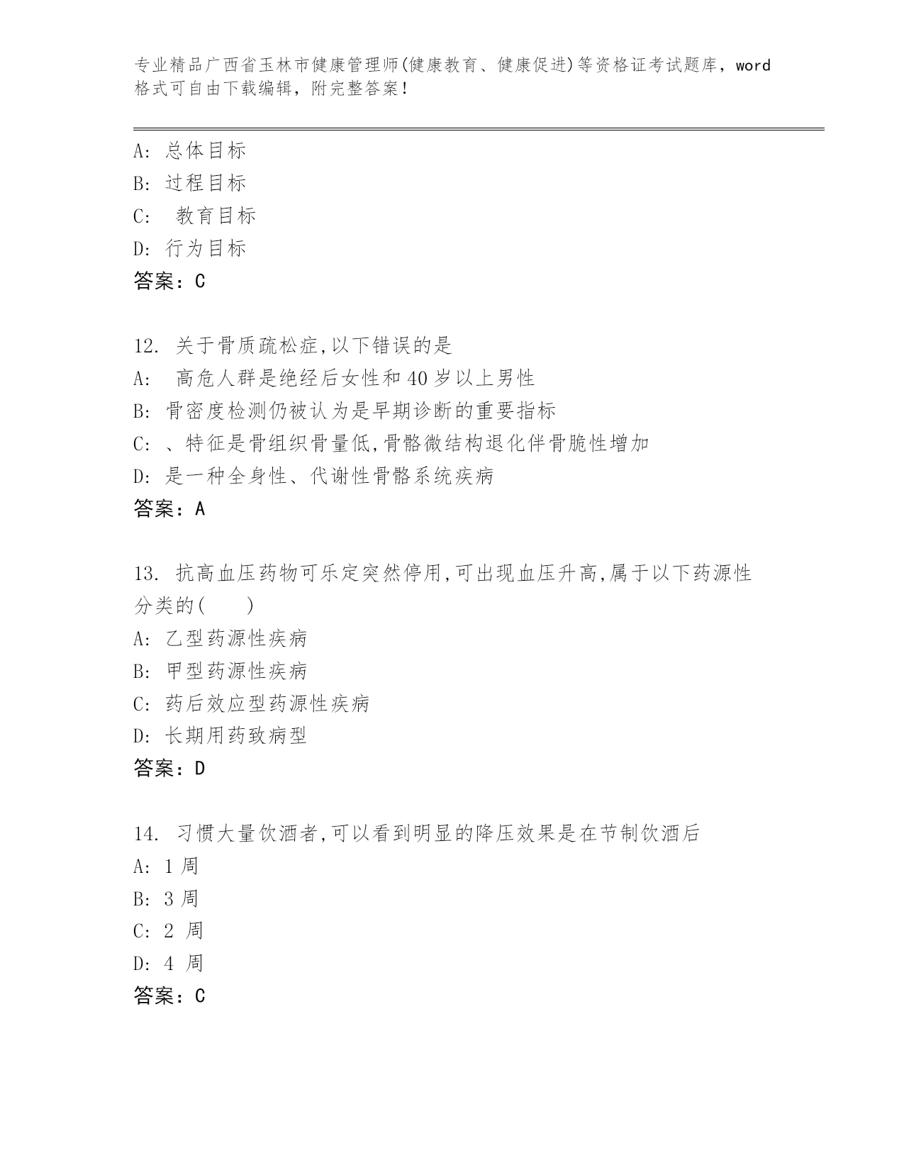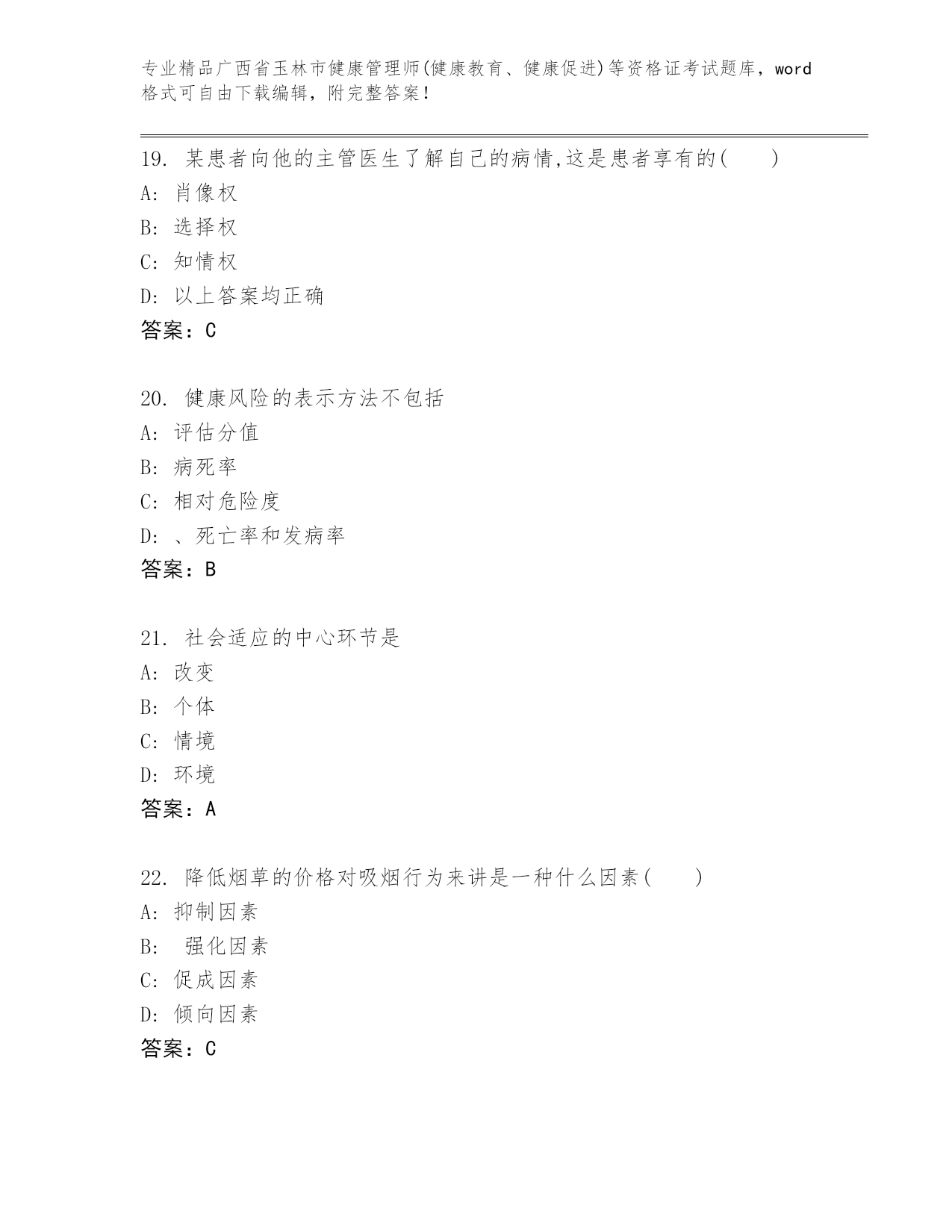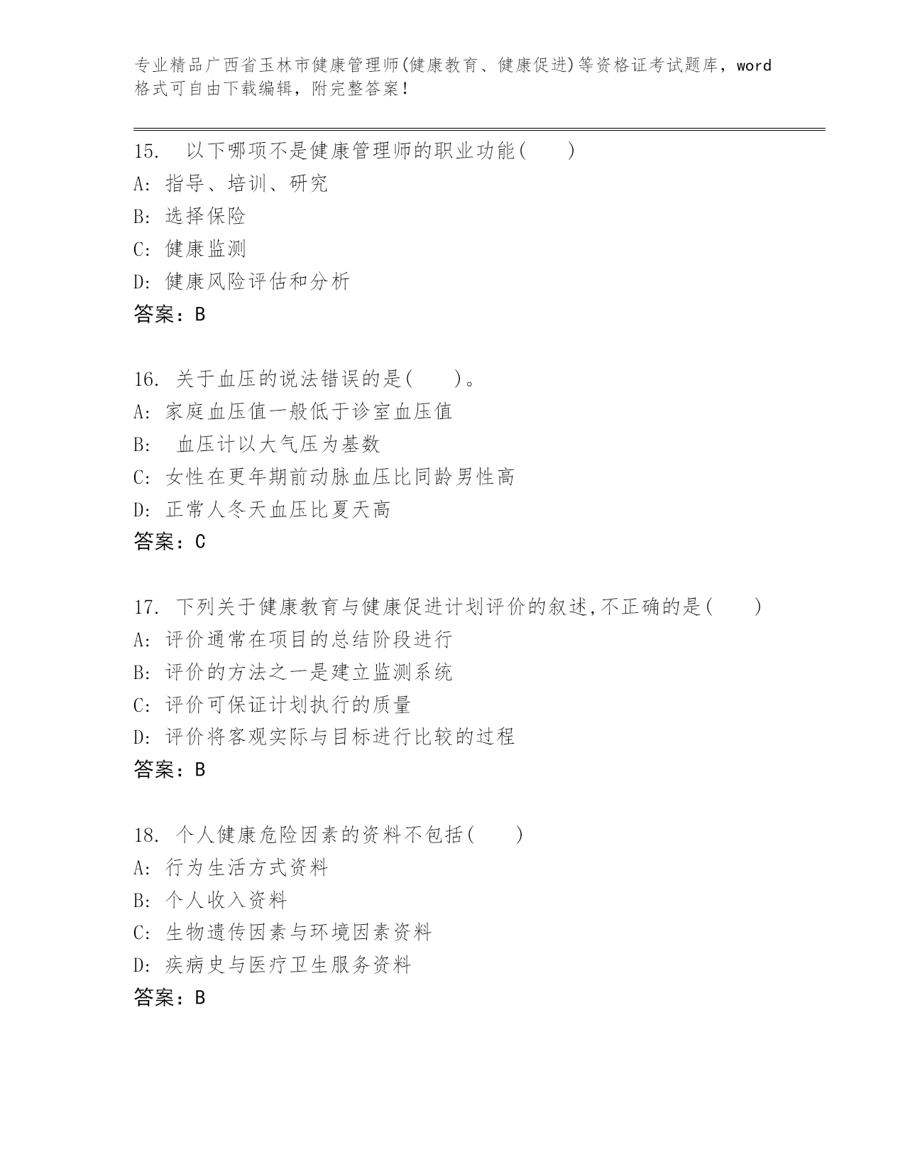 优选广西省玉林市健康管理师(健康教育、健康促进)等资格证考试通用题库及答案【精选题】.docx