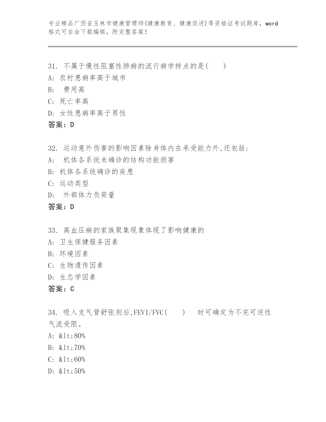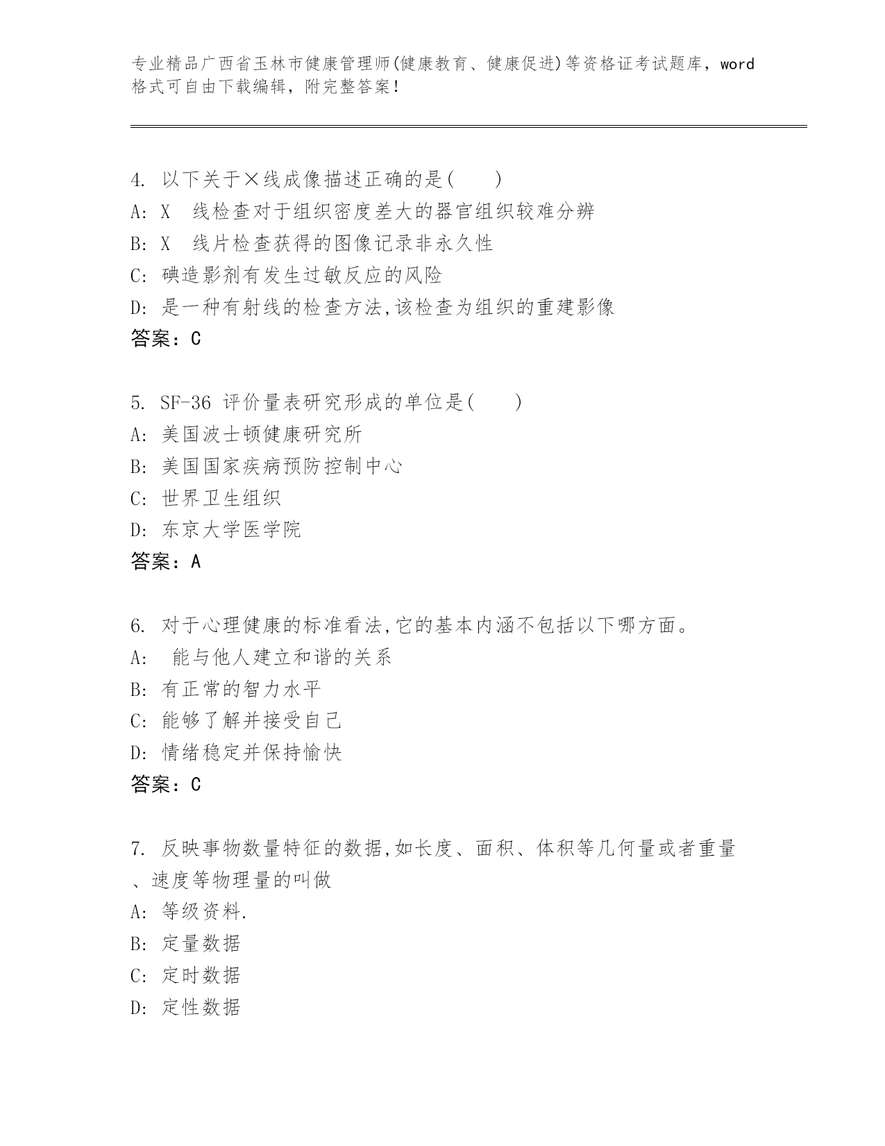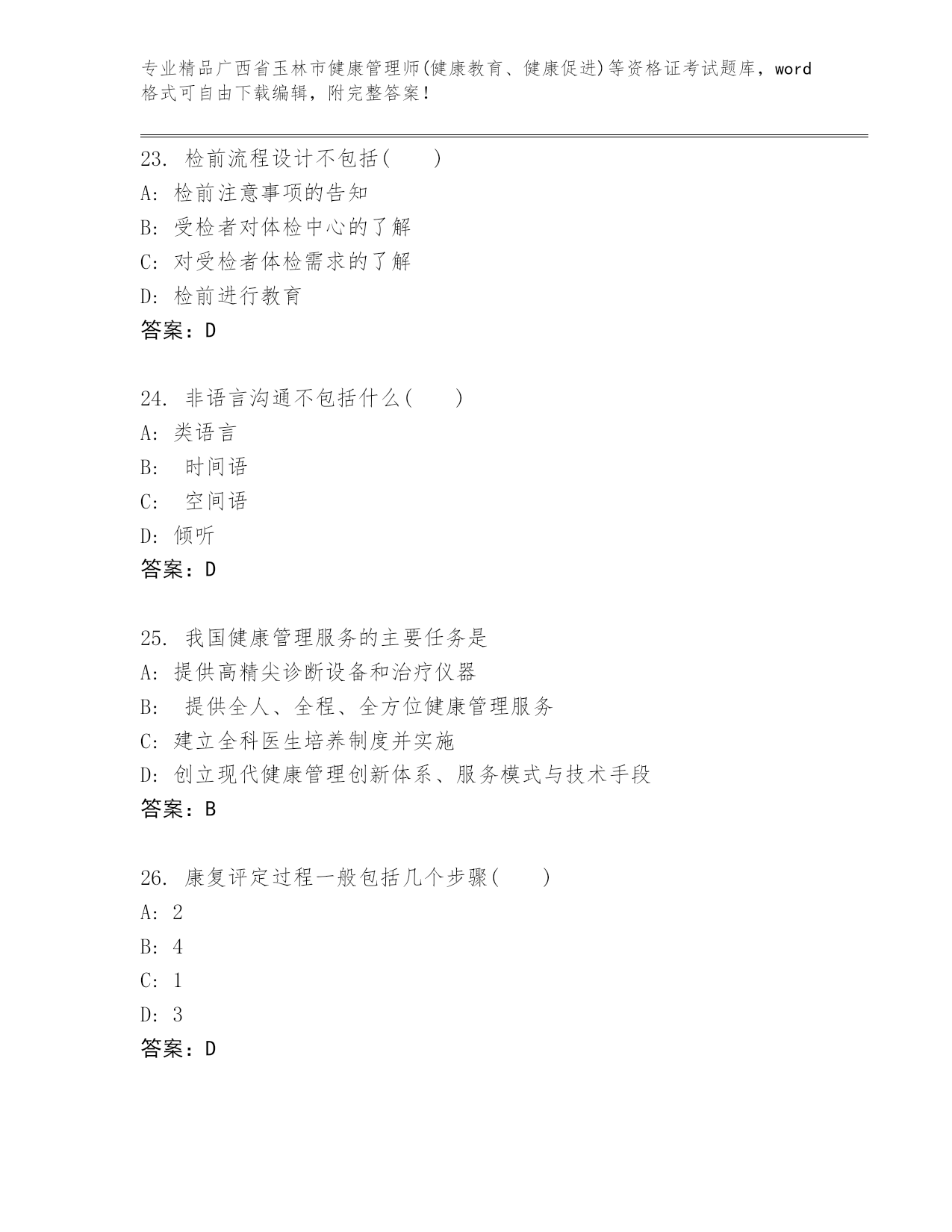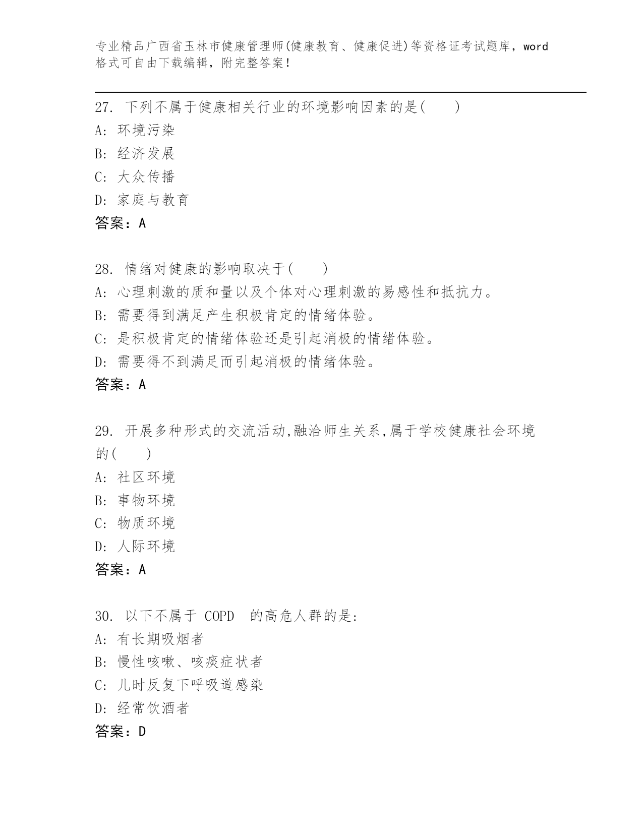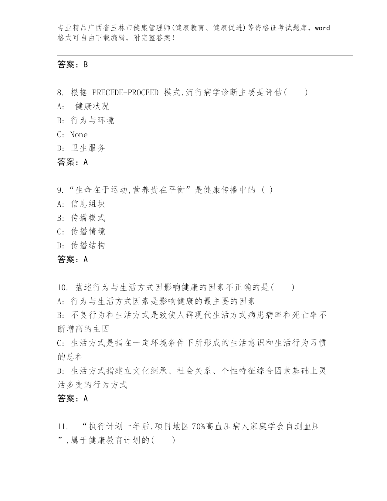 优选广西省玉林市健康管理师(健康教育、健康促进)等资格证考试通用题库及答案【精选题】.docx