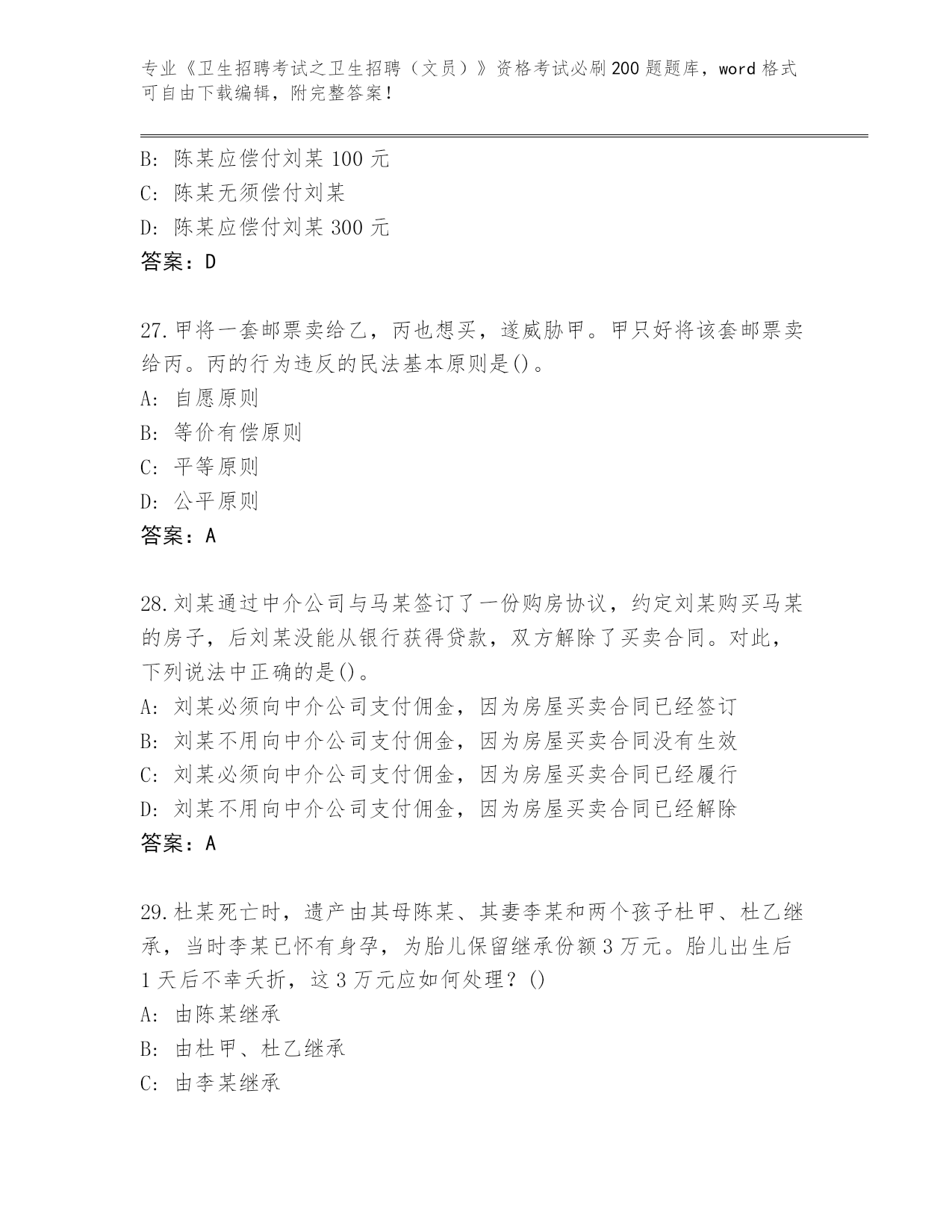 山东省《卫生招聘考试之卫生招聘(文员)》资格考试必刷200题【预热题】