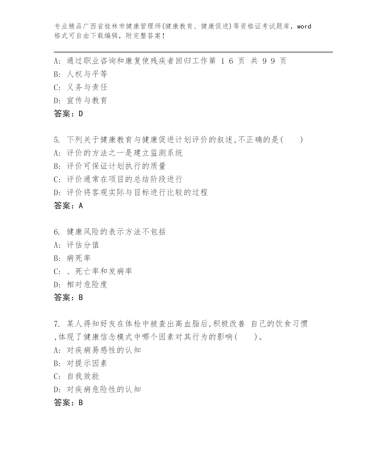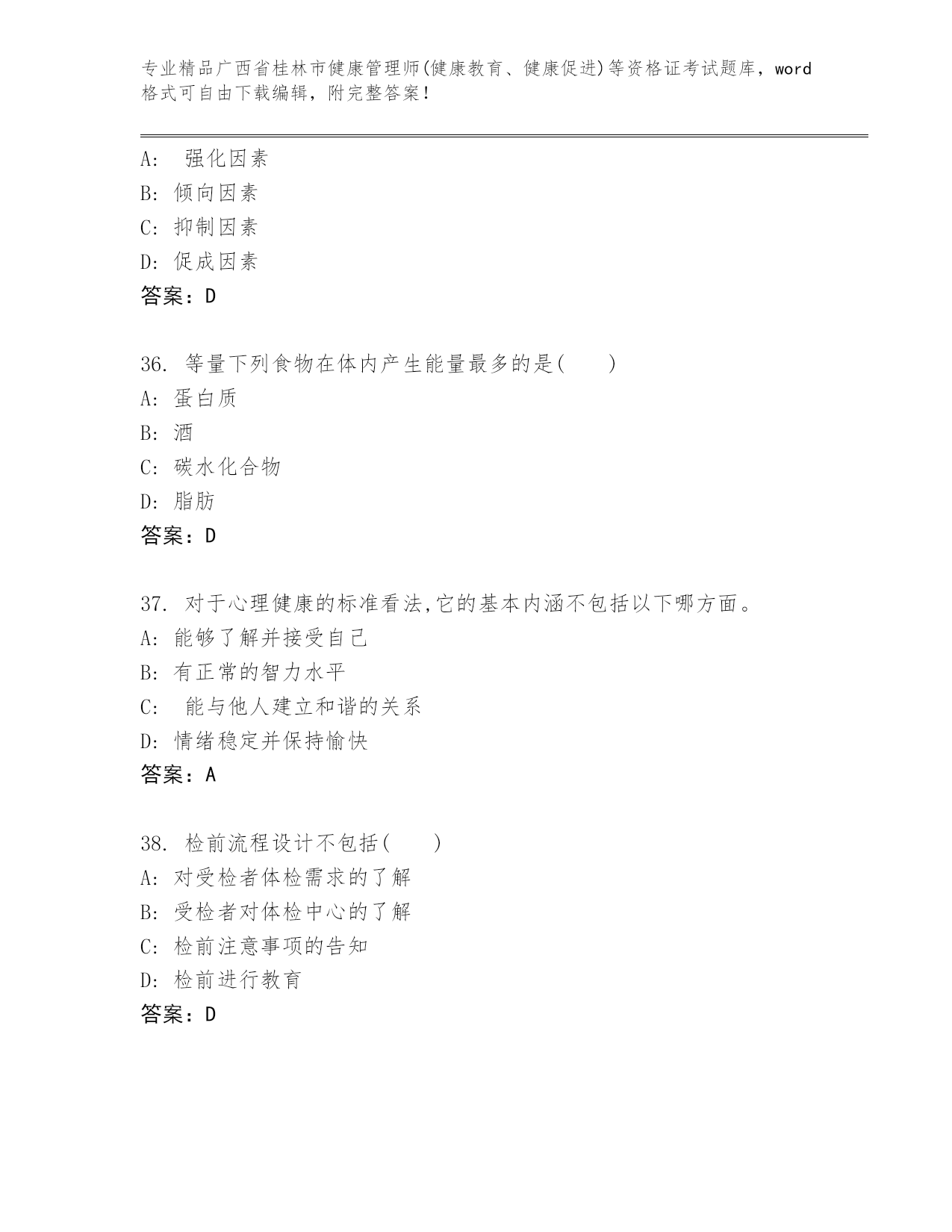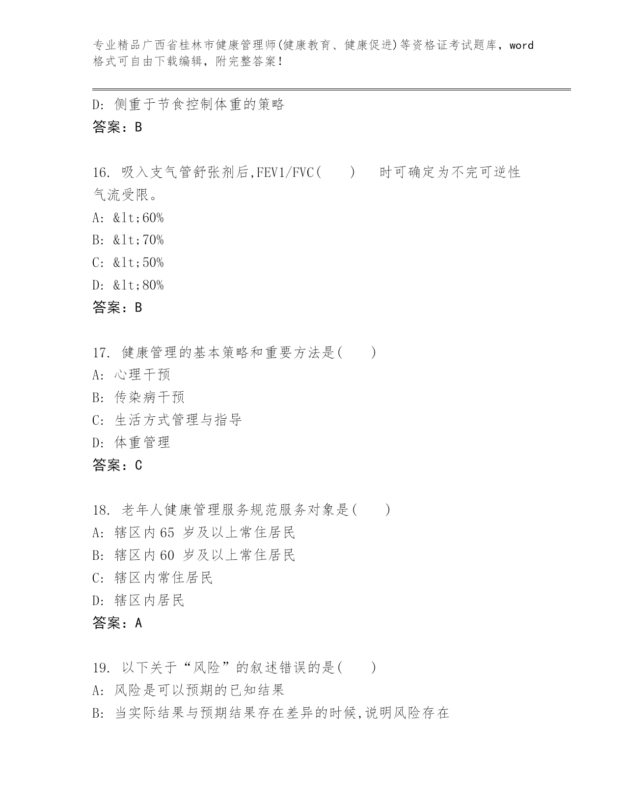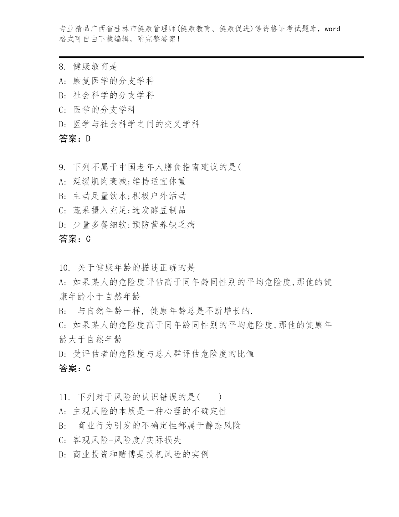 最新广西省桂林市健康管理师(健康教育、健康促进)等资格证考试完整题库(全优).docx