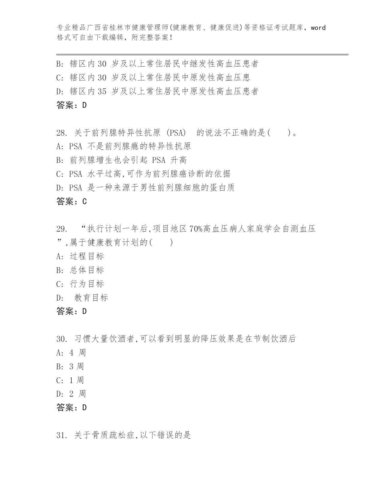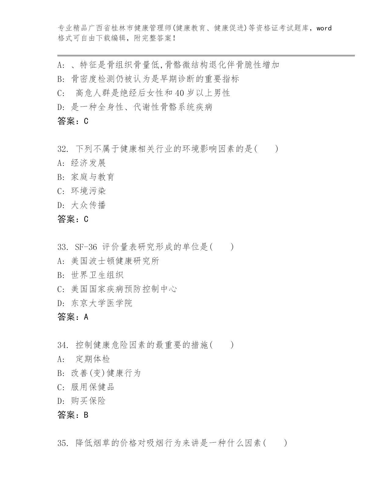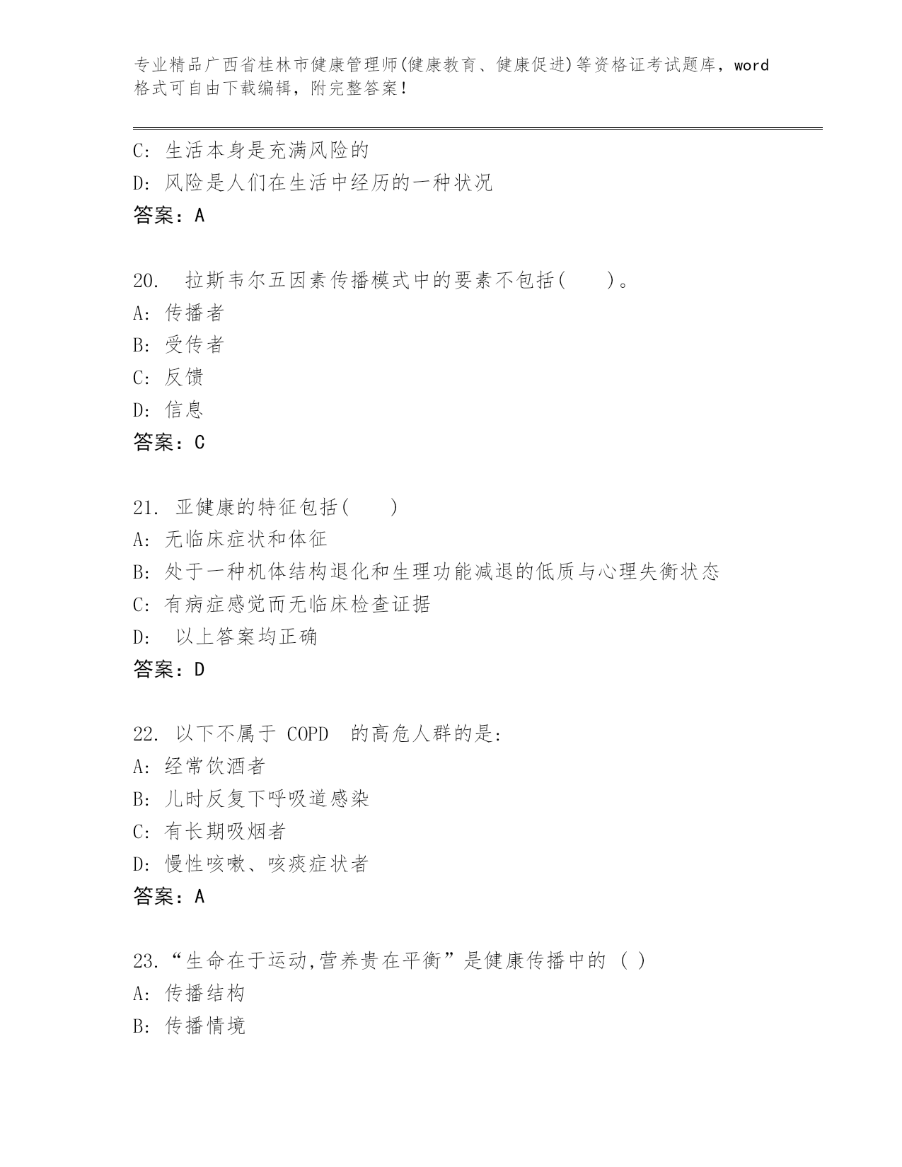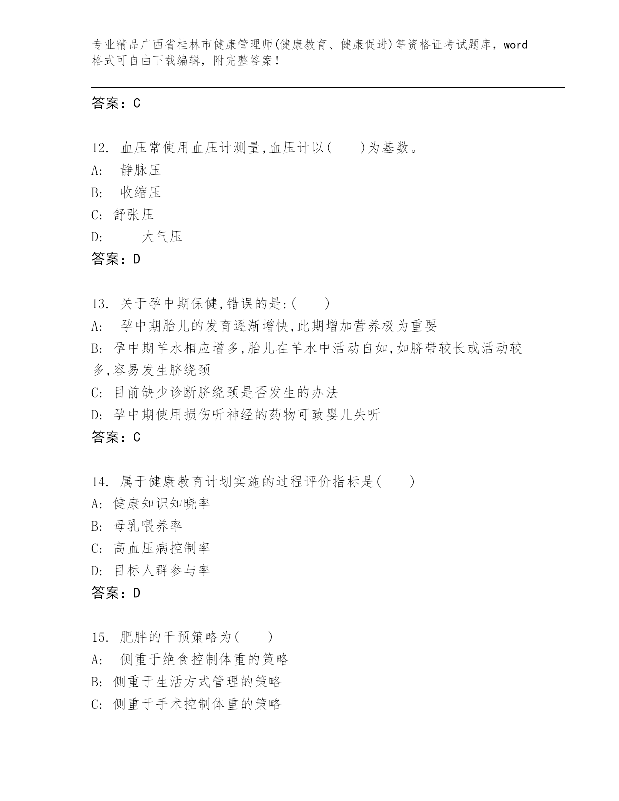 最新广西省桂林市健康管理师(健康教育、健康促进)等资格证考试完整题库(全优).docx