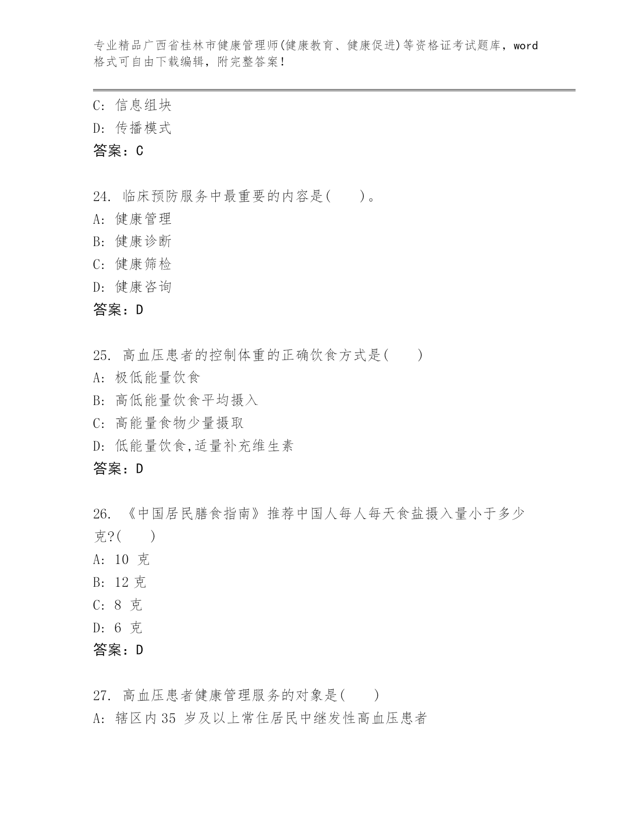 最新广西省桂林市健康管理师(健康教育、健康促进)等资格证考试完整题库(全优)