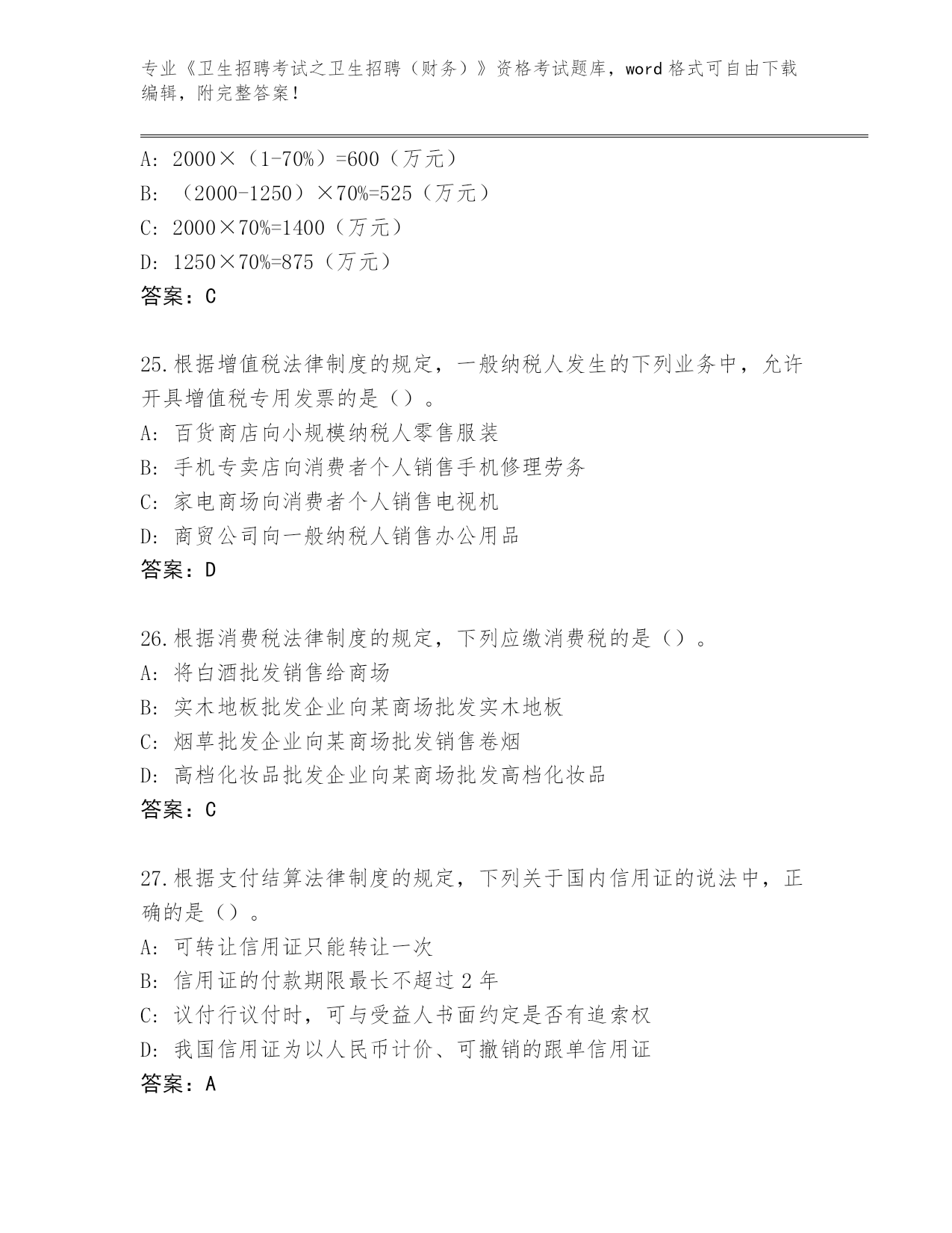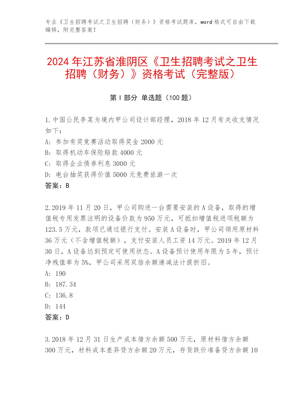 2024年江苏省淮阴区《卫生招聘考试之卫生招聘(财务)》资格考试题库大全(A卷)