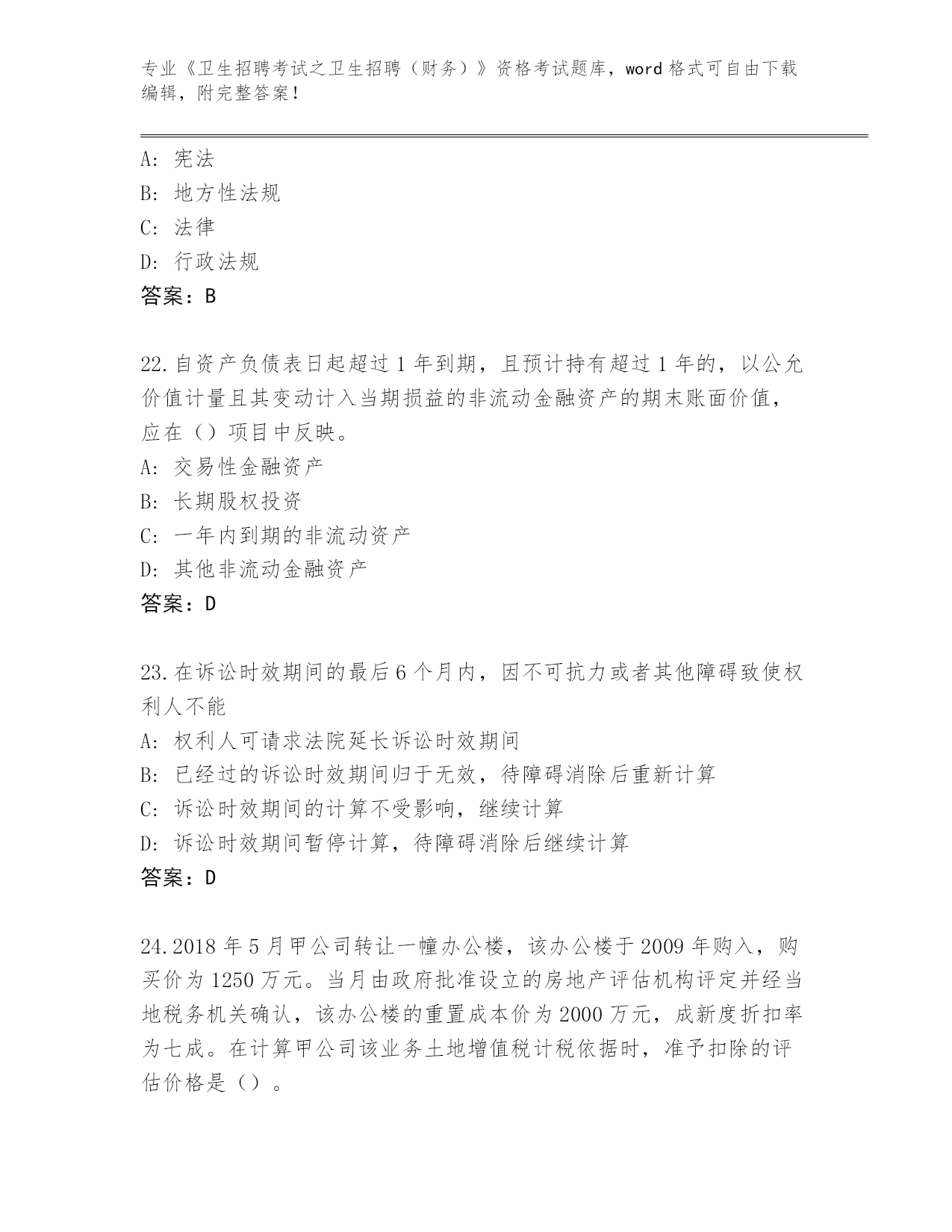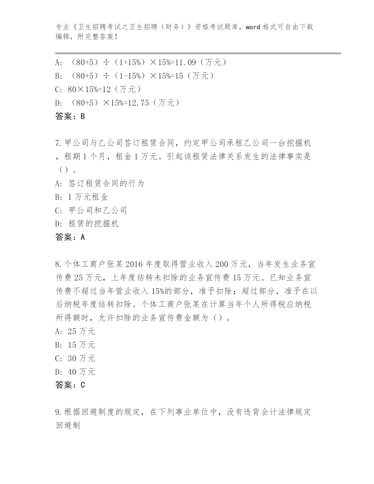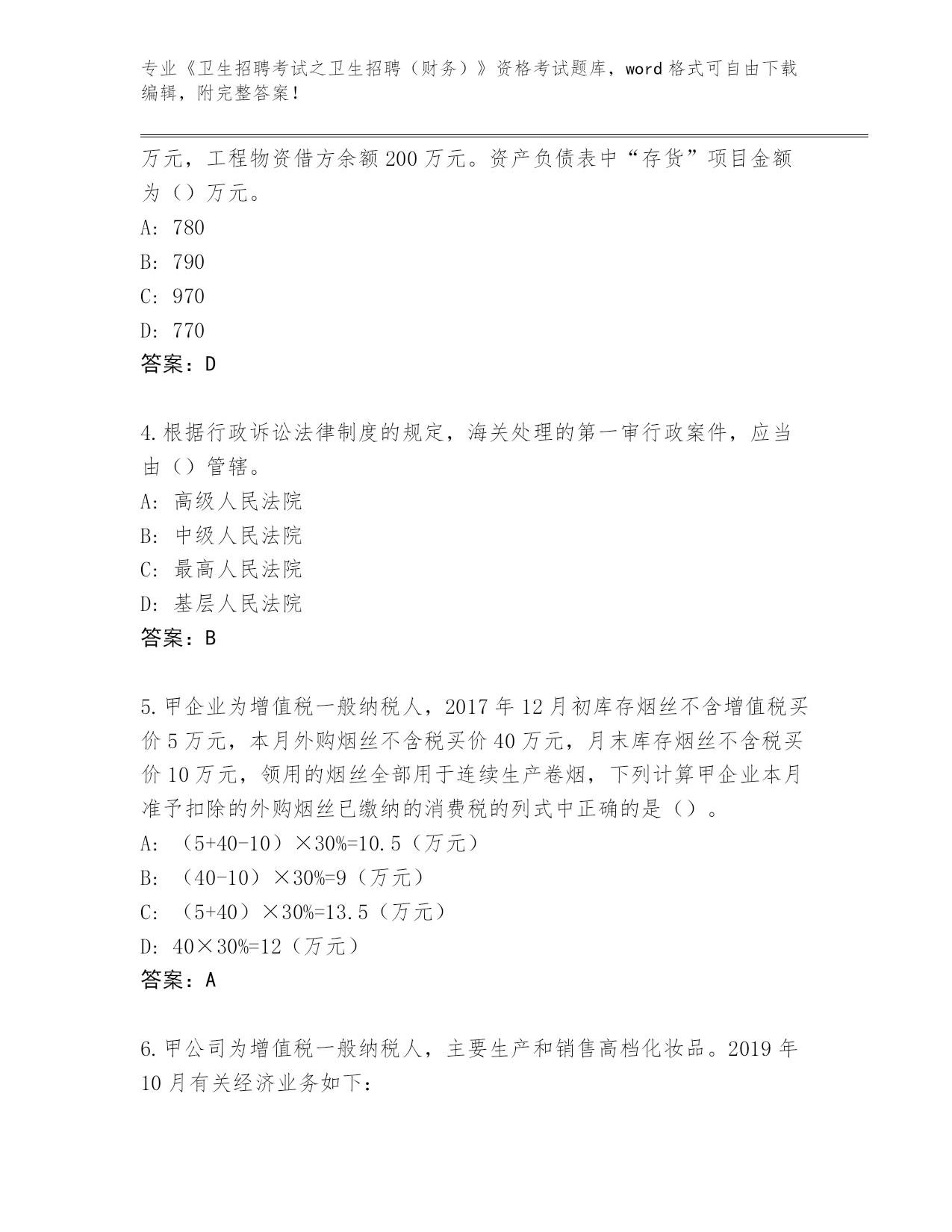 2023-24年江苏省淮阴区《卫生招聘考试之卫生招聘(财务)》考试内部题库【夺冠】