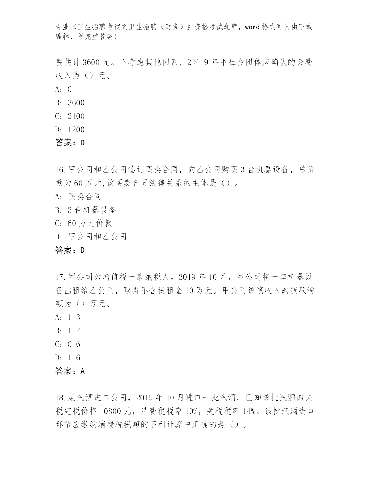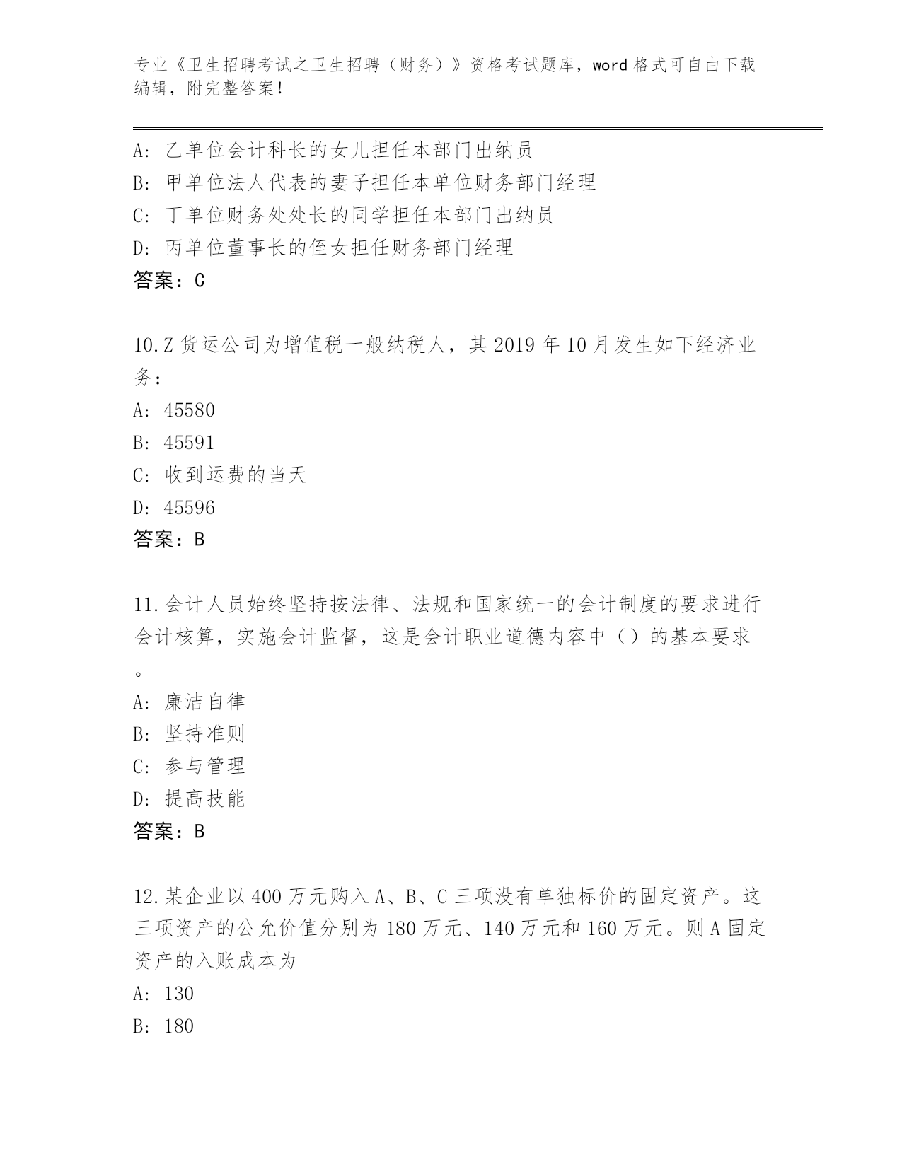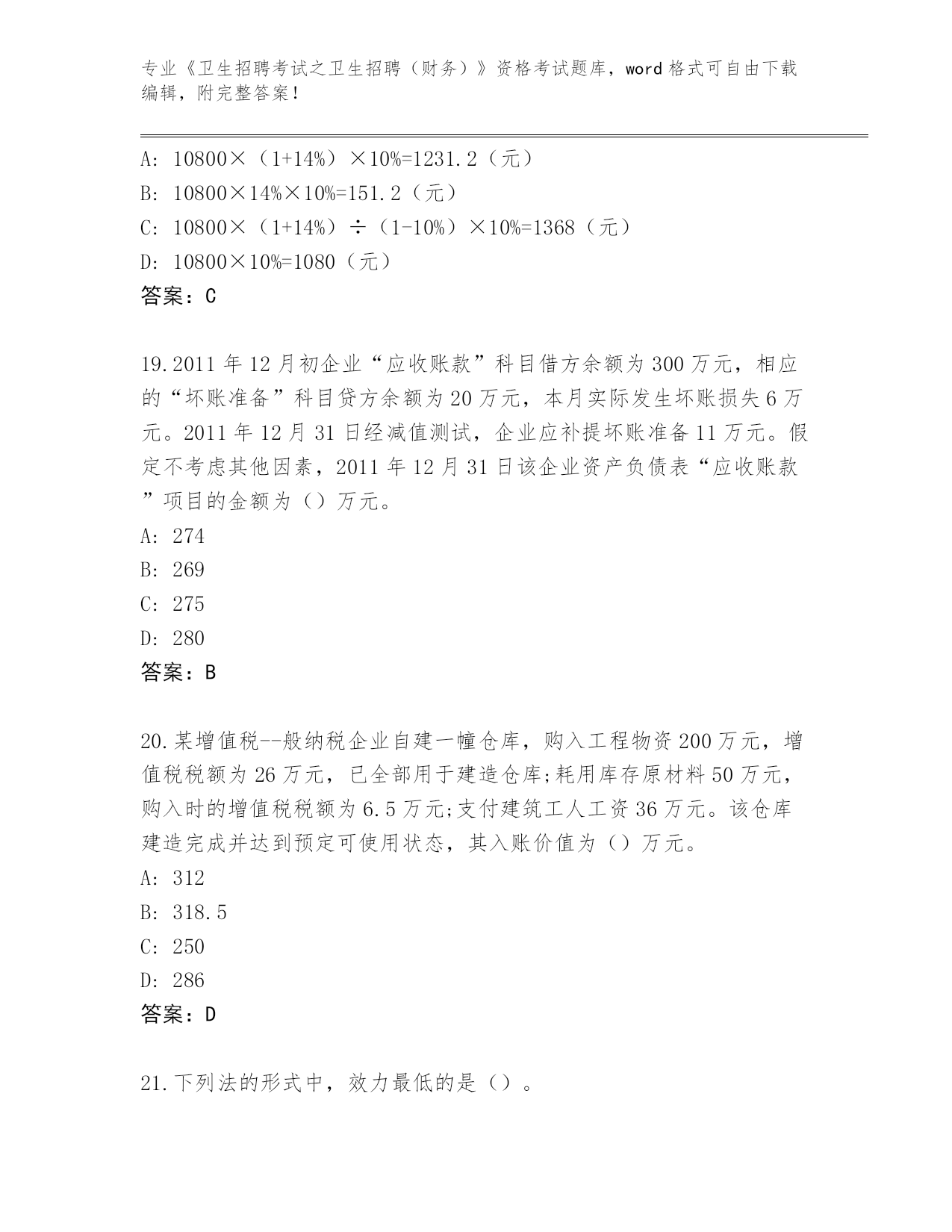 2024年江苏省淮阴区《卫生招聘考试之卫生招聘(财务)》资格考试题库大全及答案(易错题)