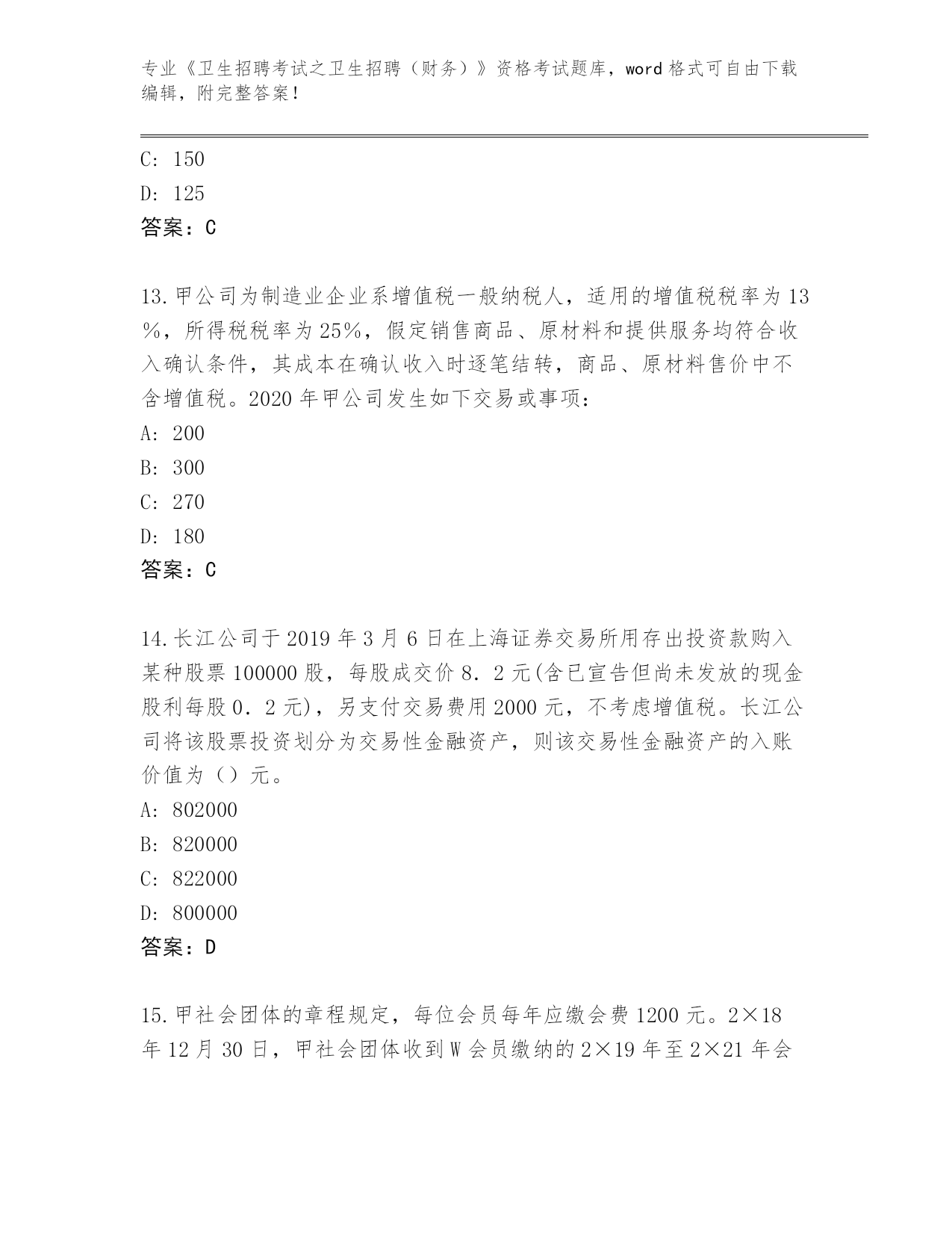 2024年江苏省淮阴区《卫生招聘考试之卫生招聘(财务)》资格考试(完整版)