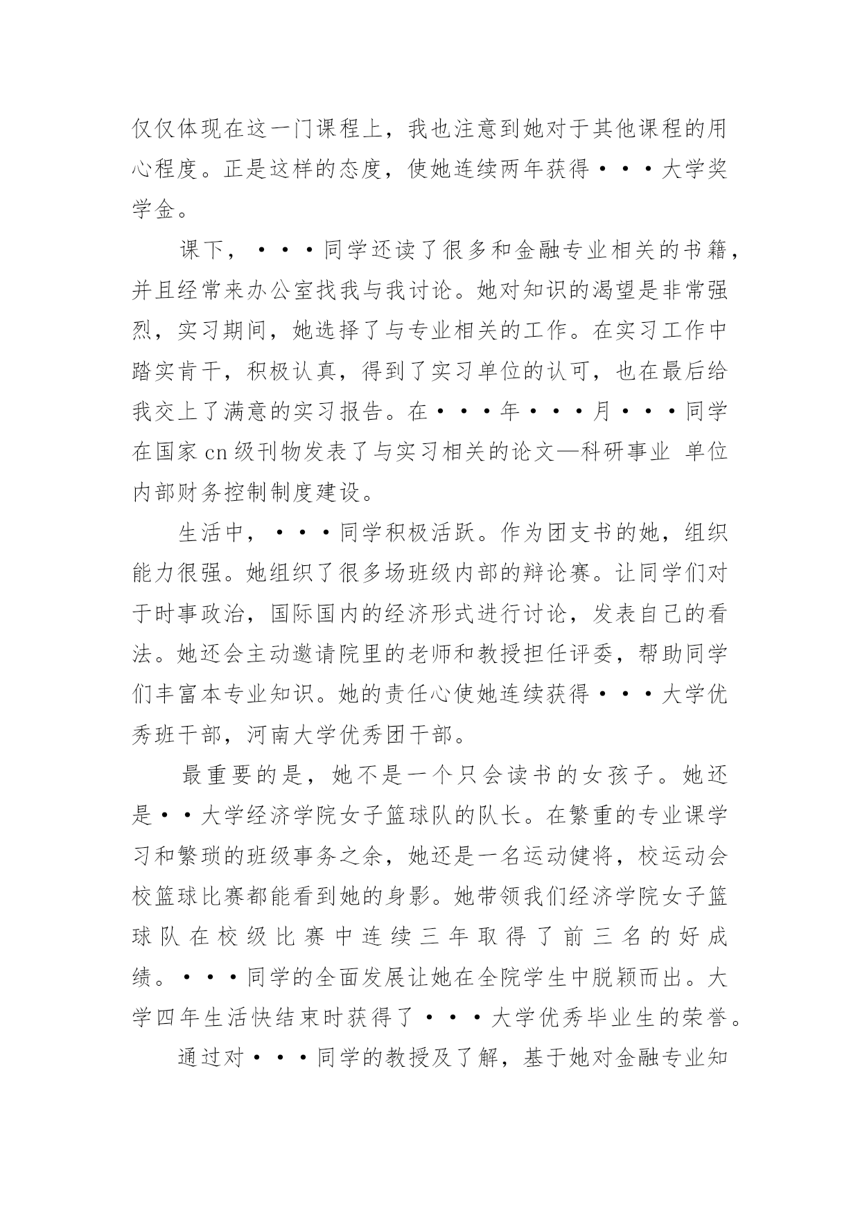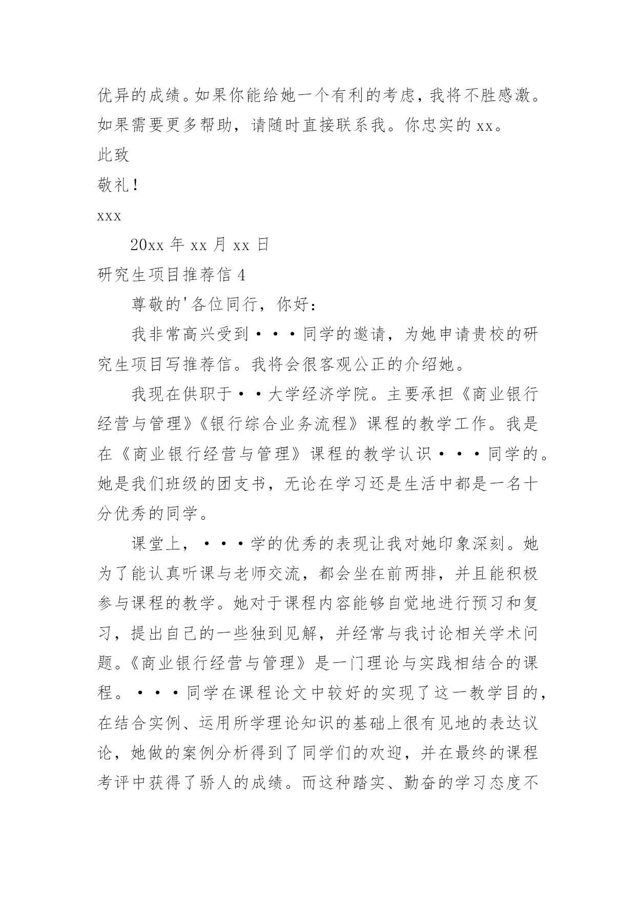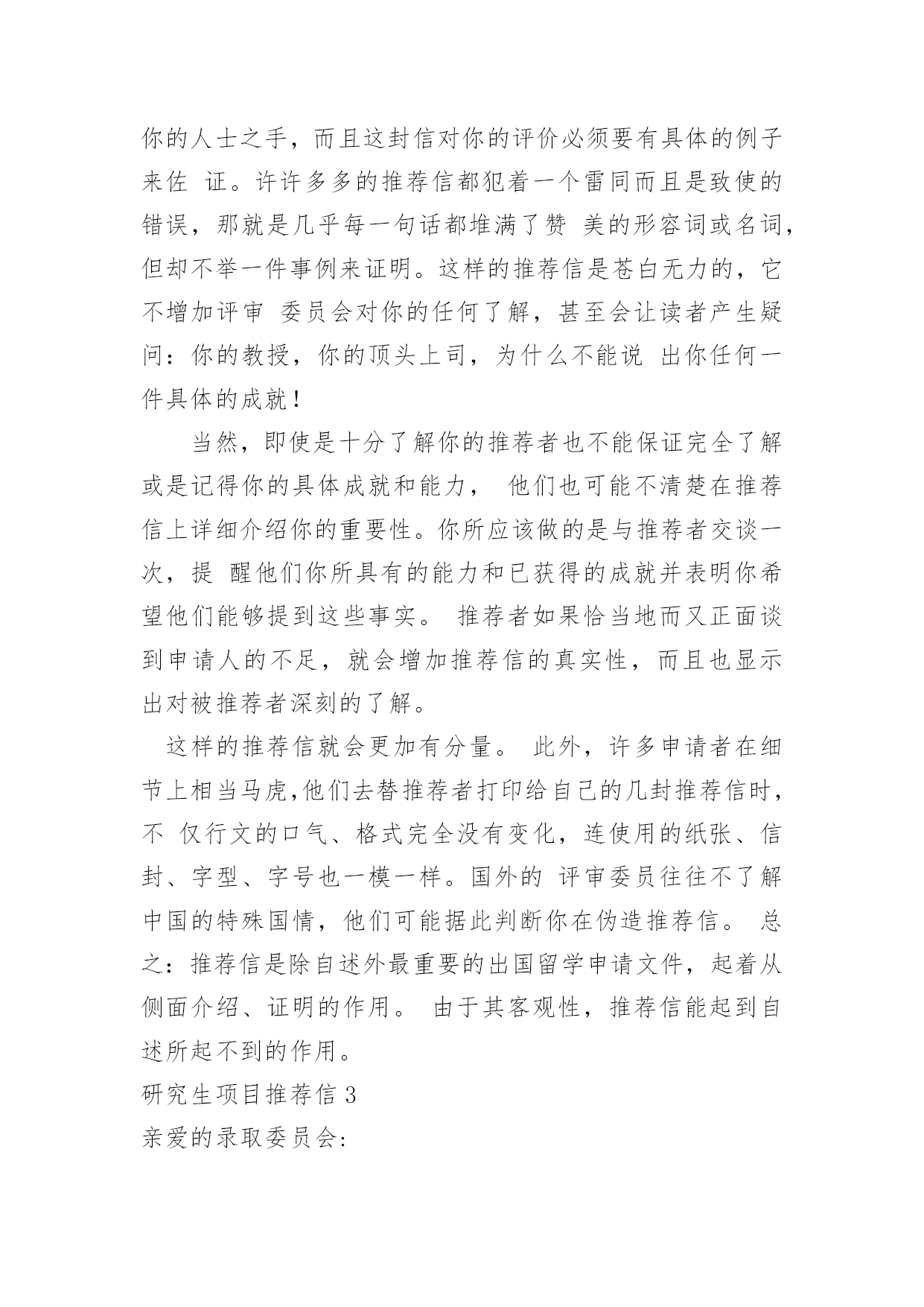 研究生项目推荐信研究生项目推荐信随着个人素质的提升,越来越多人会去使用推荐信,一封好的推荐信能为申请人加分。大家知道推荐信的格式吗?下面是小编为大家收集的研究生项目推荐信,仅供参考,希望能够帮助到大家。研究生项目推荐信1尊敬的领导:您好!我很荣幸推荐我的学生XXX申请参加您的研究生项目。XXX学生曾经参加过我的“XX控制系统”项目以及他在中高年级期间的“XXX理论”项目。并获得很高的成绩和评价。其中,在针对性研究生开放的课题中,他是仅有的参与的三位本科学生之一。在指导他的期间,我了解到他是一个好学和勤奋的人,他总是积极发言并学习掌握一些知识。其实有一些任务对一般的学生是有难度的,可他总能出色地解决这些问题,这些正是因为他的逻辑和分析思维能力以及对理论的清晰构想。在最后的项目中,他也打动了我。在解决开发项目中自由易变的优选问题,他深思熟虑并且熟练地完成了它,所以项目能够运转良好,甚至是发生一些特殊情况,但是它仍就能够很好的运转和阅读。因此我给了他比其他许多研究生更好的成绩。另外,在中高年级他参与了XX控制和系统的路线项目并且得到很好的成绩。根据我的观察,在你的研究控制和系统领域,XXX学生完全能够担任主要职责,我对他很有信心。他已经在一些项目中体现了他卓越学习能力和勤劳努力。他能表现的很杰出甚至是在高强度的项目中也可以很优越。我毫不犹豫地坚决肯定地推荐他,希望您能够优先考虑他。推荐人:XXXXXXX年XX月XX日研究生项目推荐信2申请北美的硕士研究生或博士研究生项目一般需要2~3份推荐信。谁是最好的推荐人呢?录取评审委员会最看重那些与被推荐者有着或曾有过密切的工作关系的人或其他熟悉你的科研能力、学术水平、组织能力和领导才能的人士。在大学比较了解你的教授,在工作单位里的顶头上司或是你参与的其他社会组织,如各种学术和慈善团体的负责人,是理所当然的最佳推荐人人选。你也应当尽量避免请同一类型的人士给你写推荐信。你需要录取评审委员会对你有一个完整而全面的了解,不能只局限于在校的学习成绩或是工作上的表现。除了推荐者的选择,推荐信的内容也有格外需要注意的地方。一封好的推荐信不仅需要出自一位在某一方面了解你的人士之手,而且这封信对你的评价必须要有具体的例子来佐证。许许多多的推荐信都犯着一个雷同而且是致使的错误,那就是几乎每一句话都堆满了赞美的形容词或名词,但却不举一件事例来证明。这样的推荐信是苍白无力的,它不增加评审委员会对你的任何了解,甚至会让读者产生疑问:你的教授,你的顶头上司,为什么不能说出你任何一件具体的成就!当然,即使是十分了解你的推荐者也不能保证完全了解或是记得你的具体成就和能力,他们也可能不清楚在推荐信上详细介绍你的重要性。你所应该做的是与推荐者交谈一次,提醒他们你所具有的能力和已获得的成就并表明你希望他们能够提到这些事实。推荐者如果恰当地而又正面谈到申请人的不足,就会增加推荐信的真实性,而且也显示出对被推荐者深刻的了解。这样的推荐信就会更加有分量。此外,许多申请者在细节上相当马虎,他们去替推荐者打印给自己的几封推荐信时,不仅行文的口气、格式完全没有变化,连使用的纸张、信封、字型、字号也一模一样。国外的评审委员往往不了解中国的特殊国情,他们可能据此判断你在伪造推荐信。总之:推荐信是除自述外最重要的出国留学申请文件,起着从侧面介绍、证明的作用。由于其客观性,推荐信能起到自述所起不到的作用。研究生项目推荐信3亲爱的录取委员会:潘蓓小姐要求我给她写一封推荐信,支持她申请贵校的研究生项目。作为她的老师,我很乐意答应她的要求。我第一次认识潘老师是在她上大学的时候,当时我是她班的副主任。作为一名教授,我注意到由于缺乏自学能力,学生们,即使是那些在高中表现优异的学生,要跟上大学的速度也是很有挑战性的。然而,作为一个大学前计算机专业没有任何扎实背景的勤奋女孩,她很快适应了我们系尤其激烈的竞争环境。第一年年底,她在班上名列第五,在女生中名列第一。她的自学技巧和非凡的努力给我留下了相当深刻的印象。因此,我相信,以目标为导向,不怕起点,坚持不懈,她有能力取得成就。我认为,她在同学中的突出之处在于,她不仅在考试中获得了优异的成绩,反而扩大了自己的知识面。20xx年春天,潘老师选修了我教的《代数结构与组合数学》这门课。这位好奇又勤奋的年轻女士有时是我下课后最后一个离开的,提出了与这个主题相关的新奇问题。我发现她对知识理解的很深入很细致。此外,我还记得在五月的春假期间,由于我的邮箱坏了,我错过了她讨论一些问题的邮件。但是接下来的一周上课时间,她直接问我。她对知识的热情和探索答案的精神真的给我留下了深刻的印象。最后,她是少数几个在课堂上的每一次考试中几乎得满分的学生之一,这表明她对每一章都掌握得非常好。因此,我给了她98/100分,以表彰她在我的课程中的出