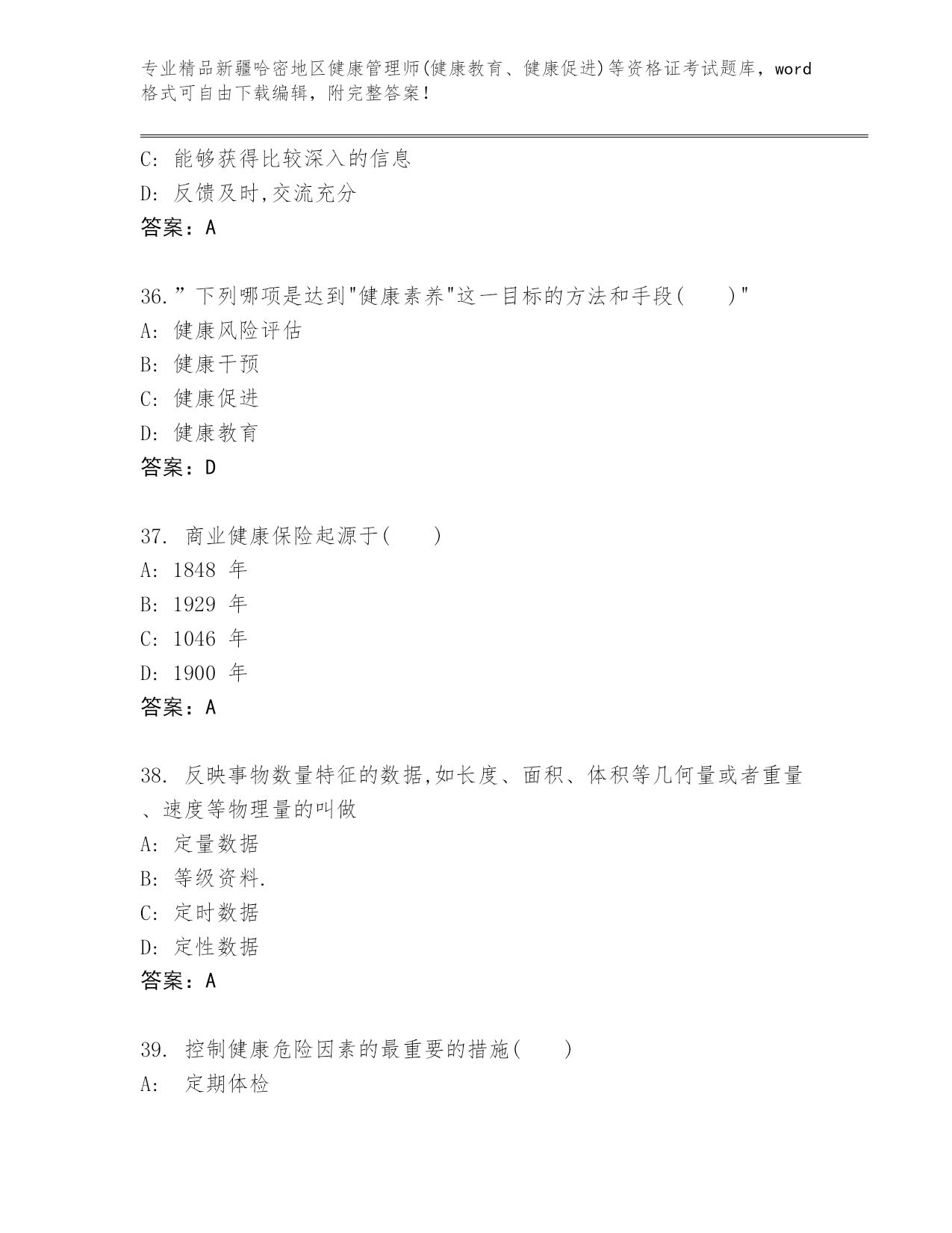 精品新疆哈密地区健康管理师(健康教育、健康促进)等资格证考试内部题库及参考答案(最新).docx