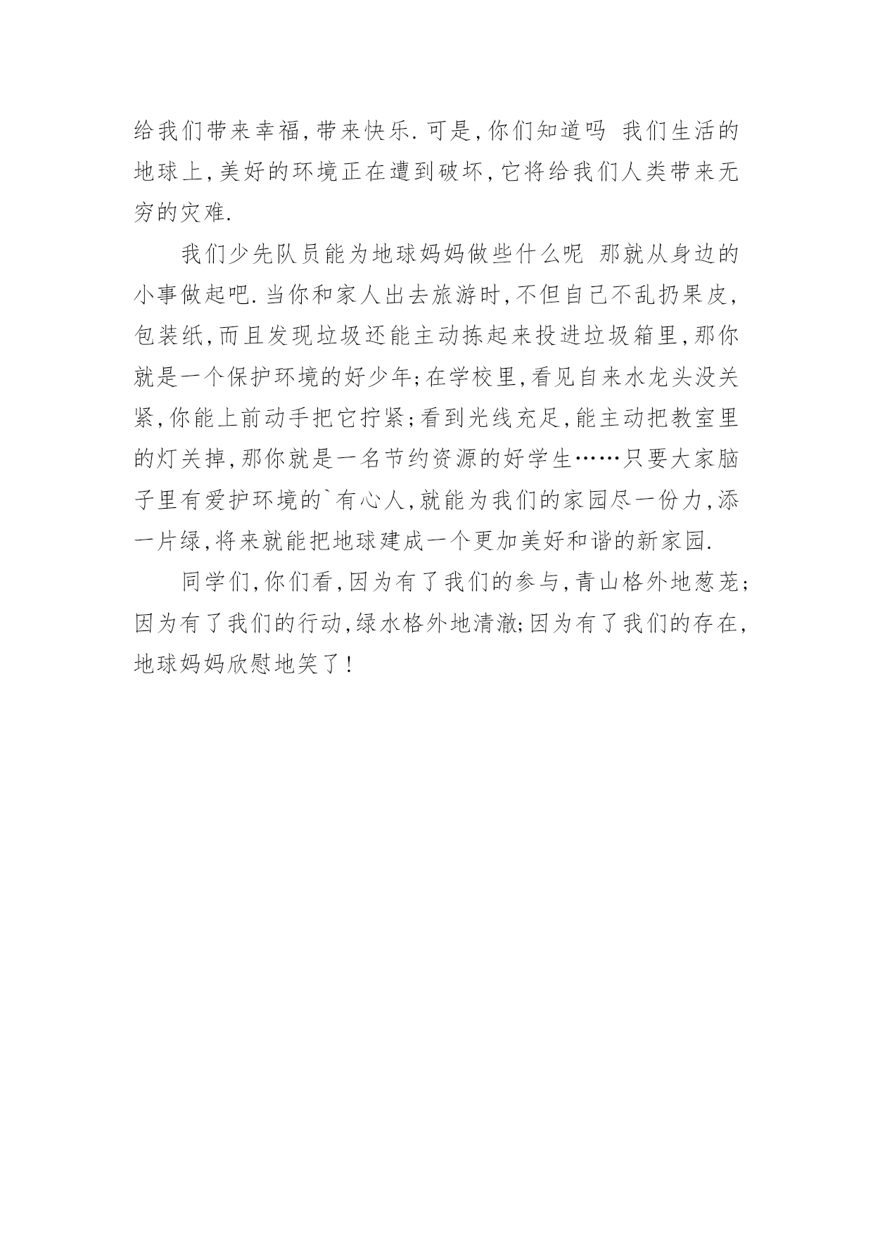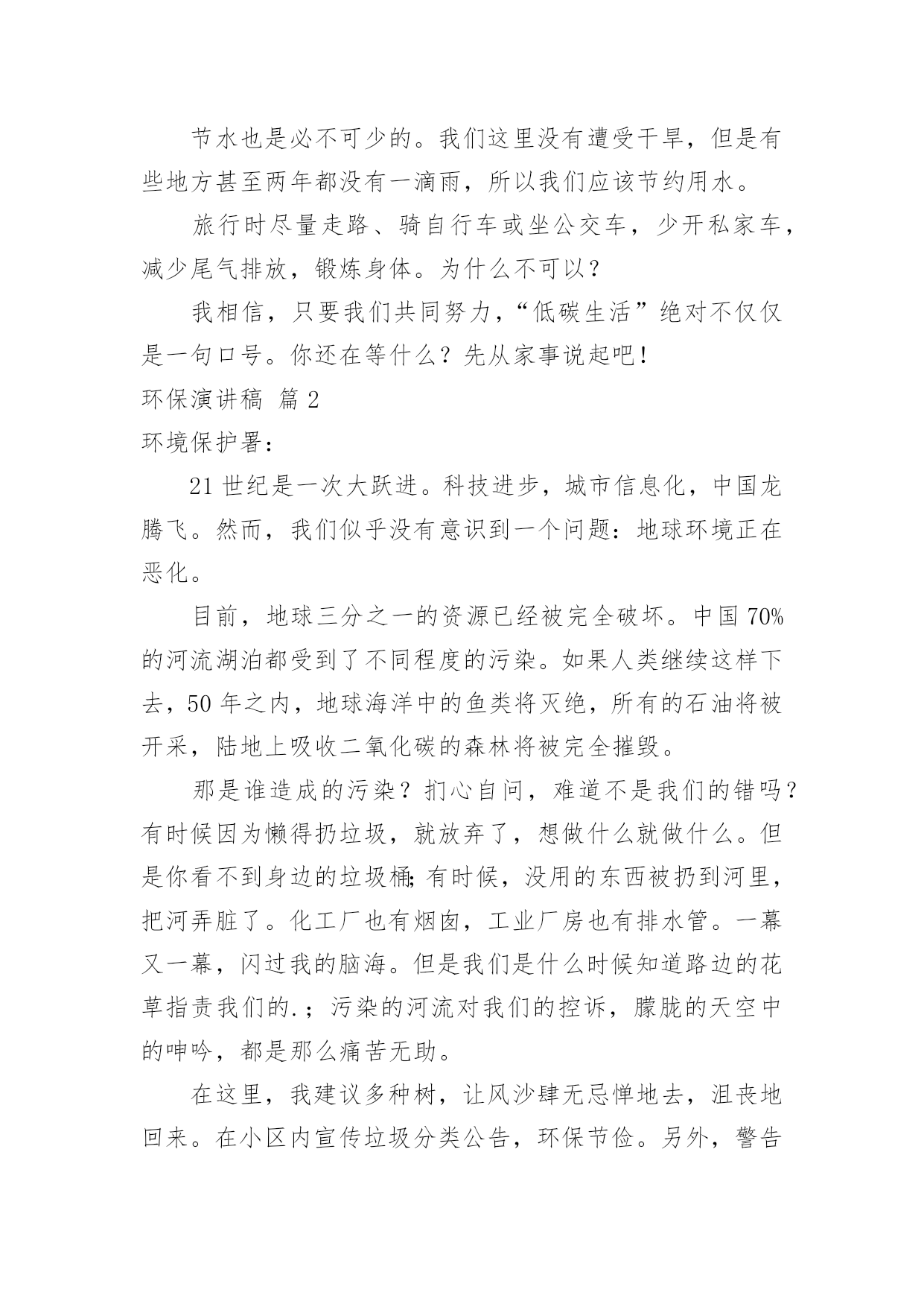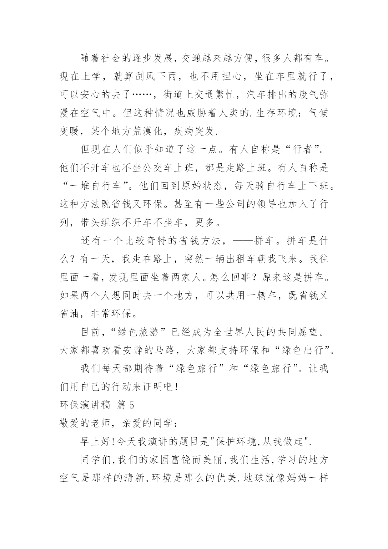 环保演讲稿【必备】环保演讲稿汇总5篇演讲稿在写作上具有一定的格式要求。在快速变化和不断变革的新时代,演讲稿对我们的作用越来越大,那么你有了解过演讲稿吗?以下是小编为大家收集的环保演讲稿6篇,欢迎大家分享。环保演讲稿篇1低碳,这个词每天在电视和网络上都是不可或缺的,可以说是听说过。然而,光听不见是没有用的。有没有具体行动?来看看我们的低碳生活吧!春天是一年的计划,这不仅是种花的好时机,也是低碳生活的好时机。我们家那两个“花痴”实在受不了他们的脾气。爸爸不知怎么弄了一个毛茸茸的,不知名的药草,种在阳台的花盆里,天天好好照顾,真的把花蕾都拿出来了。妈妈不仅要照顾以前的花草,还要准备给植物家族增加一个新成员——仙人掌。至于我,我只是一个欣赏者,因为我对花一无所知。种花不仅丰富了我的业余时间,也清新了空气。劳累了一天,回到家看到满是绿色的`眼睛,觉得神清气爽。当然,省电也不能忽视。现在是漆黑的夜晚,在吃饭的时候,一边欣赏着美丽的夕阳,一边享受着香甜可口的美食,心里会有一种说不出的幸福感。如果下雨或者阴天,每天都太黑,那就拿出烛台点蜡烛,没意思!这样就可以吃到美味独特的烛光晚餐了。你怎么想呢?节水也是必不可少的。我们这里没有遭受干旱,但是有些地方甚至两年都没有一滴雨,所以我们应该节约用水。旅行时尽量走路、骑自行车或坐公交车,少开私家车,减少尾气排放,锻炼身体。为什么不可以?我相信,只要我们共同努力,“低碳生活”绝对不仅仅是一句口号。你还在等什么?先从家事说起吧!环保演讲稿篇2环境保护署:21世纪是一次大跃进。科技进步,城市信息化,中国龙腾飞。然而,我们似乎没有意识到一个问题:地球环境正在恶化。目前,地球三分之一的资源已经被完全破坏。中国70%的河流湖泊都受到了不同程度的污染。如果人类继续这样下去,50年之内,地球海洋中的鱼类将灭绝,所有的石油将被开采,陆地上吸收二氧化碳的森林将被完全摧毁。那是谁造成的污染?扪心自问,难道不是我们的错吗?有时候因为懒得扔垃圾,就放弃了,想做什么就做什么。但是你看不到身边的垃圾桶;有时候,没用的东西被扔到河里,把河弄脏了。化工厂也有烟囱,工业厂房也有排水管。一幕又一幕,闪过我的脑海。但是我们是什么时候知道路边的花草指责我们的.;污染的河流对我们的控诉,朦胧的天空中的呻吟,都是那么痛苦无助。在这里,我建议多种树,让风沙肆无忌惮地去,沮丧地回来。在小区内宣传垃圾分类公告,环保节俭。另外,警告周边餐厅少用一次性餐具。关于河,抓一次罚一次。希望其他公民以身作则,从身边的事做起,让地球的未来充满憧憬和美好!环保演讲稿篇3大家好,我是xx:关于现在越来越严重的雾霾天气,人人都深恶痛绝。为了我们的美好家园,我们要用实际行动来减少雾霾的产生,作为小学生的我有几点小小的`建议!1:尽量坐公交、地铁等公共交通工具,或是走路步行,争取绿色出行。像我就每天步行四十分钟上学和放学,不让爸爸开车接送我,一直都坚持着。既锻炼了身体又减少了废气的污染。2:不要乱扔乱堆和焚烧垃圾,不乱丢废旧电池。不要燃烧高梁杆,每到深秋回乡下外公家,沿着公路都会看到农民伯伯在田地里烧高梁杆和棉花枝,那冉冉升起的浓烟刺得一路上的行人都睁不开眼,看不到很远的前方,天空也灰朦朦的。3:节约纸张,少用一次性碗筷。保护植被,多种植花草树木,像我外公的家乡,原本葱葱郁郁的大山都被砍伐成光秃秃的了。为了减少雾霾的增加,让我们从身边做起,从自身做起!一起加油,为我们美好的家园而努力!将低碳环保进行到底。环保演讲稿篇4随着社会的逐步发展,交通越来越方便,很多人都有车。现在上学,就算刮风下雨,也不用担心,坐在车里就行了,可以安心的去了……,街道上交通繁忙,汽车排出的废气弥漫在空气中。但这种情况也威胁着人类的.生存环境:气候变暖,某个地方荒漠化,疾病突发.但现在人们似乎知道了这一点。有人自称是“行者”。他们不开车也不坐公交车上班,都是走路上班。有人自称是“一堆自行车”。他们回到原始状态,每天骑自行车上下班。这种方法既省钱又环保。甚至有一些公司的领导也加入了行列,带头组织不开车不坐车,更多。还有一个比较奇特的省钱方法,——拼车。拼车是什么?有一天,我走在路上,突然一辆出租车朝我飞来。我往里面一看,发现里面坐着两家人。怎么回事?原来这是拼车。如果两个人想同时去一个地方,可以共用一辆车,既省钱又省油,非常环保。目前,“绿色旅游”已经成为全世界人民的共同愿望。大家都喜欢看安静的马路,大家都支持环保和“绿色出行”。我们每天都期待着“绿色旅行”和“绿色旅行”。让我们用自己的行动来证明吧!环保演讲稿篇5敬爱的老师,亲爱的同学:早上好!今天我演讲的题目是"保护环境,从我做起".同学们,我们的家园富饶而美丽,我们生活,学习的地方空气是那样的清新,环境是那么的优美.地球就像妈妈一样给我们带来幸福