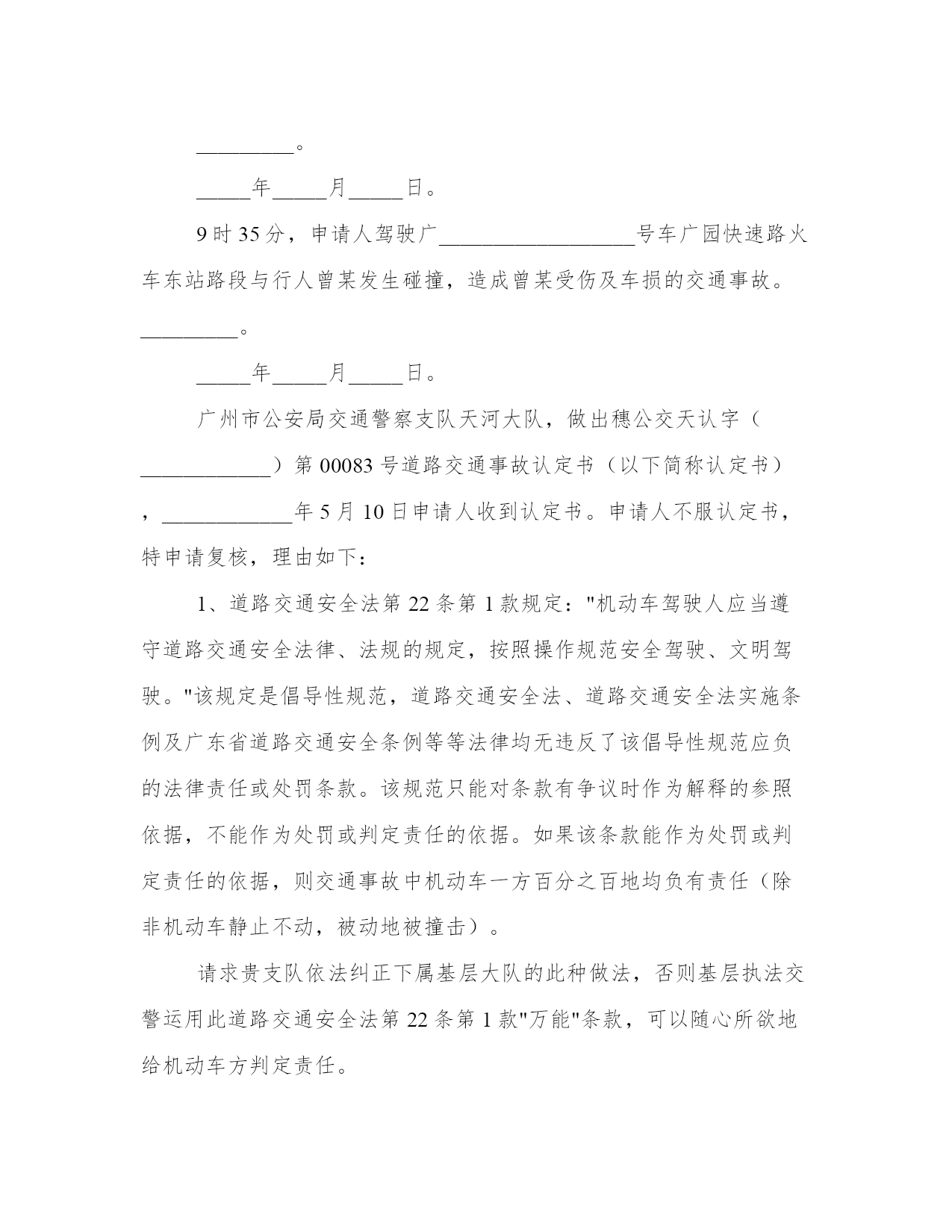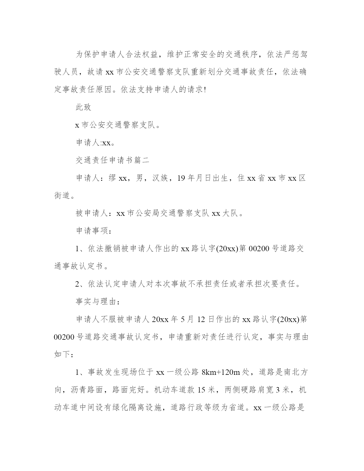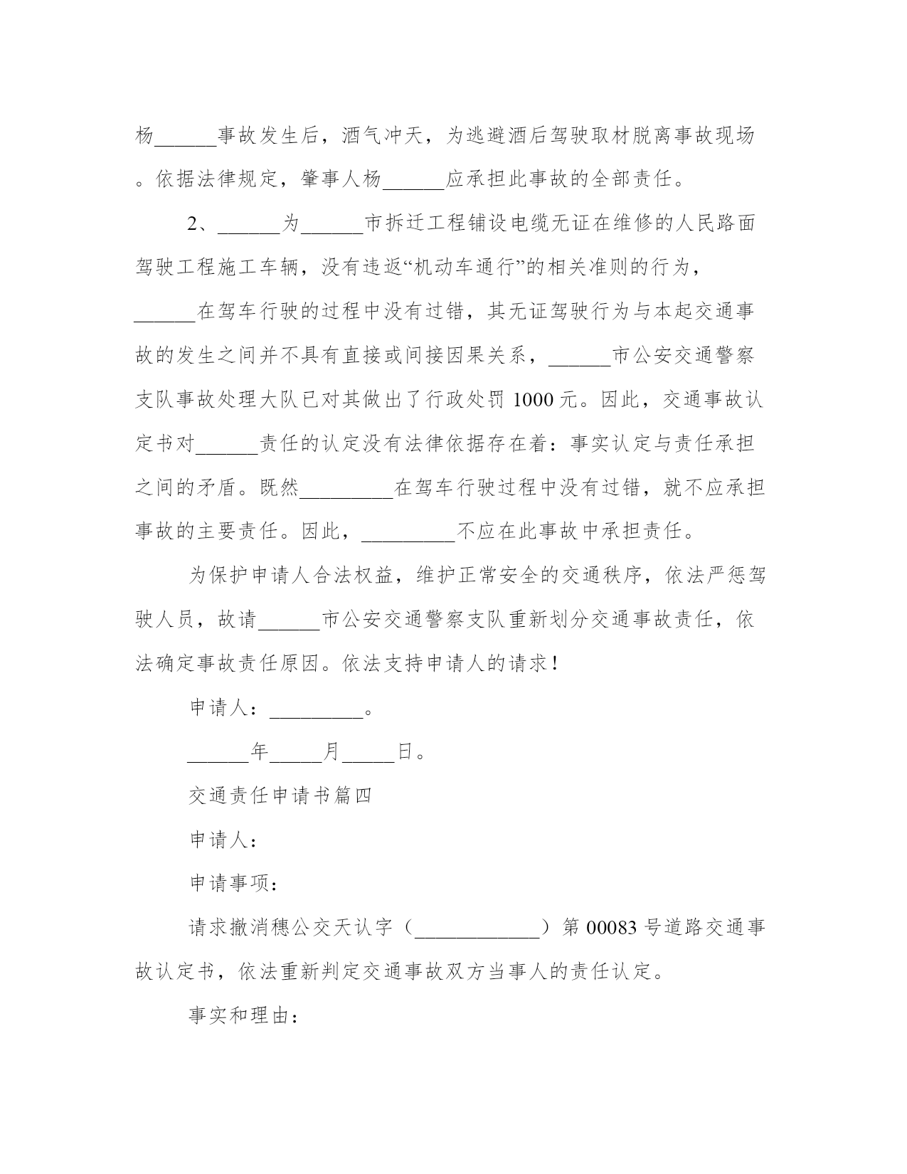 最新交通责任申请书交通事故责任申请书(汇总9篇)