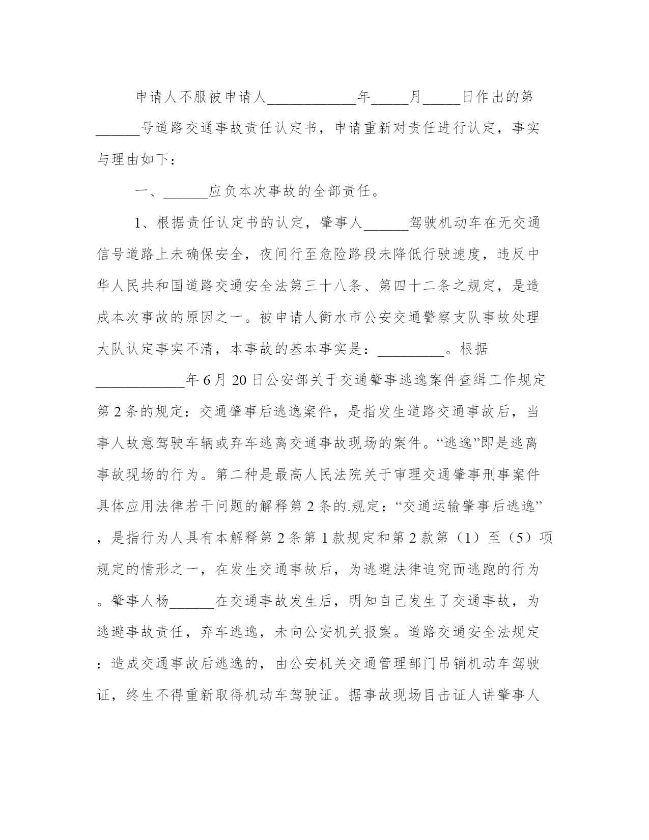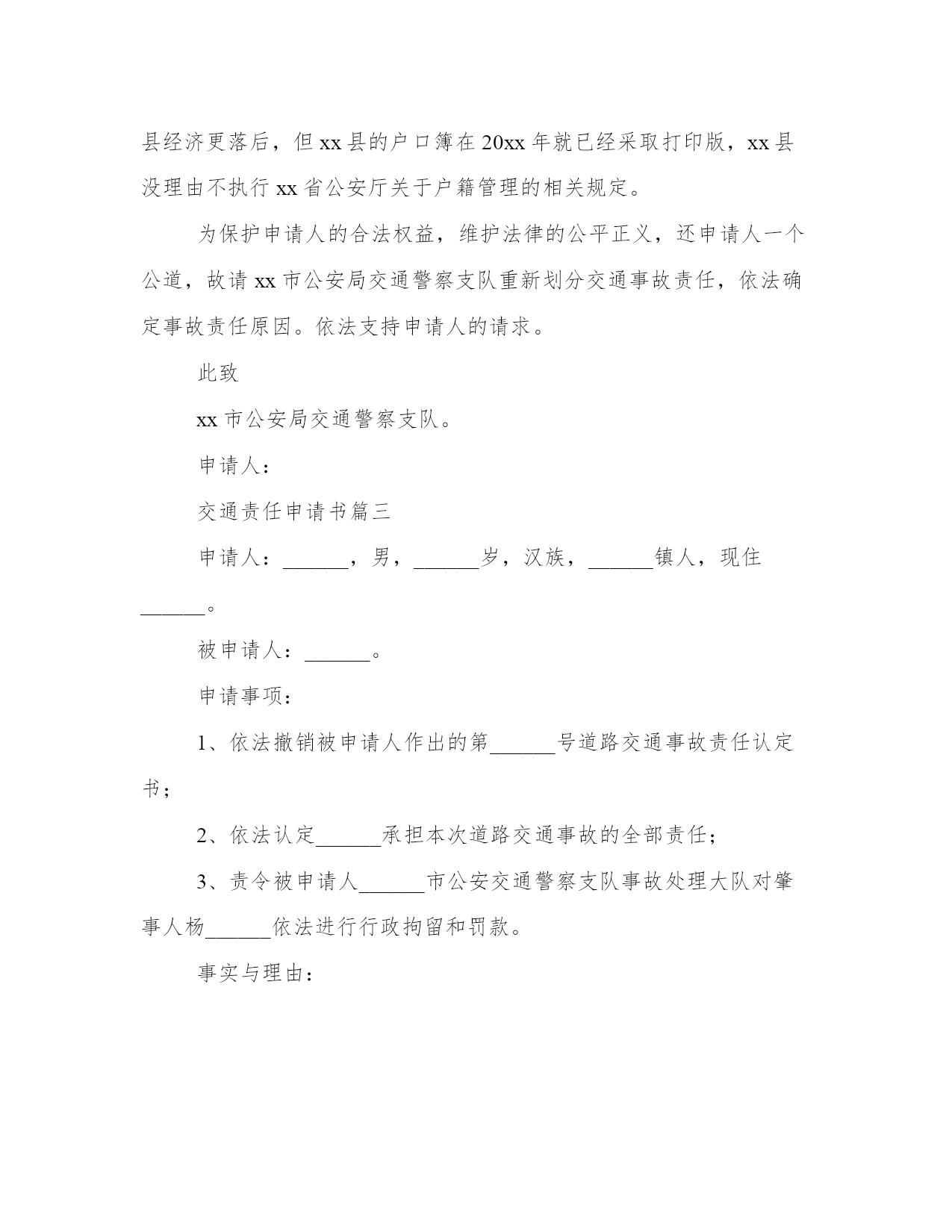 最新交通责任申请书交通事故责任申请书(汇总9篇).docx