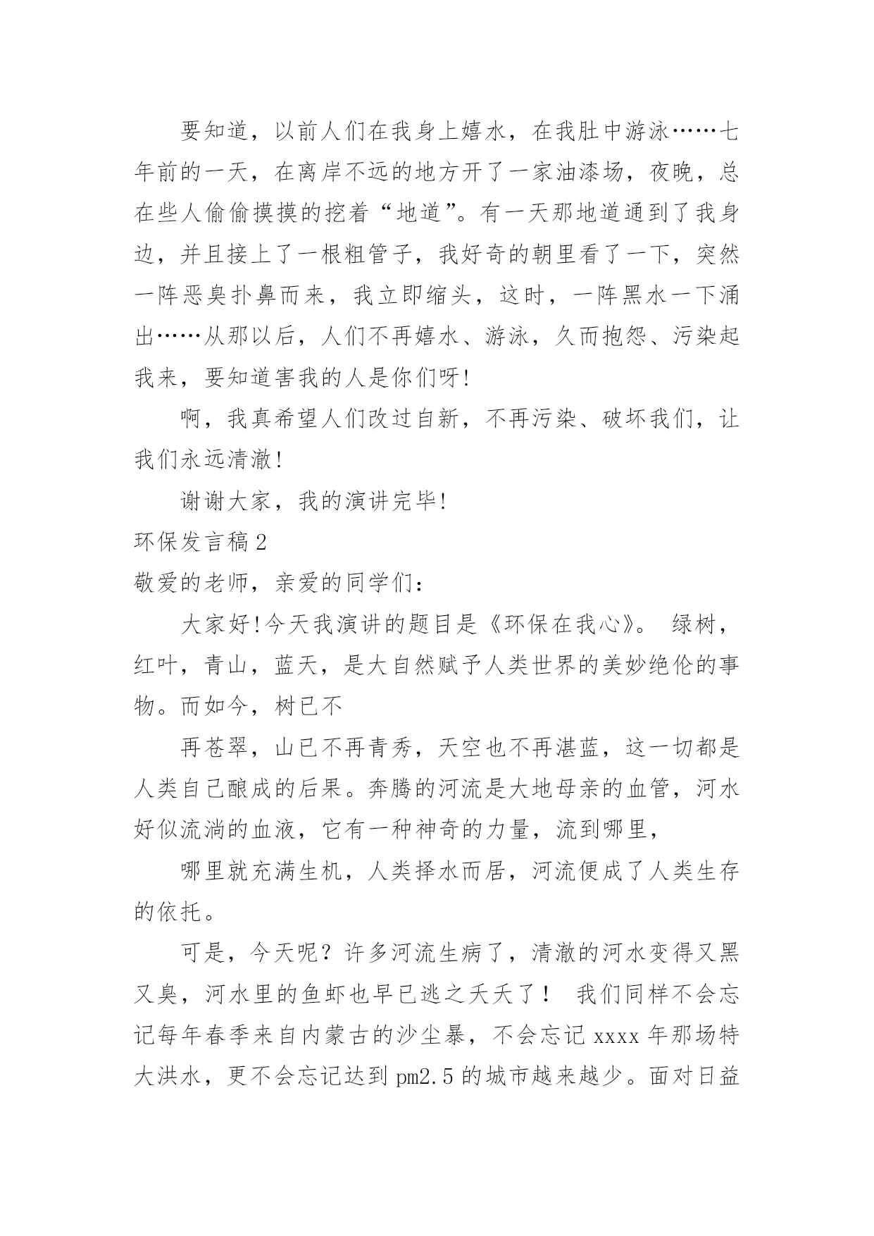 环保发言稿精编