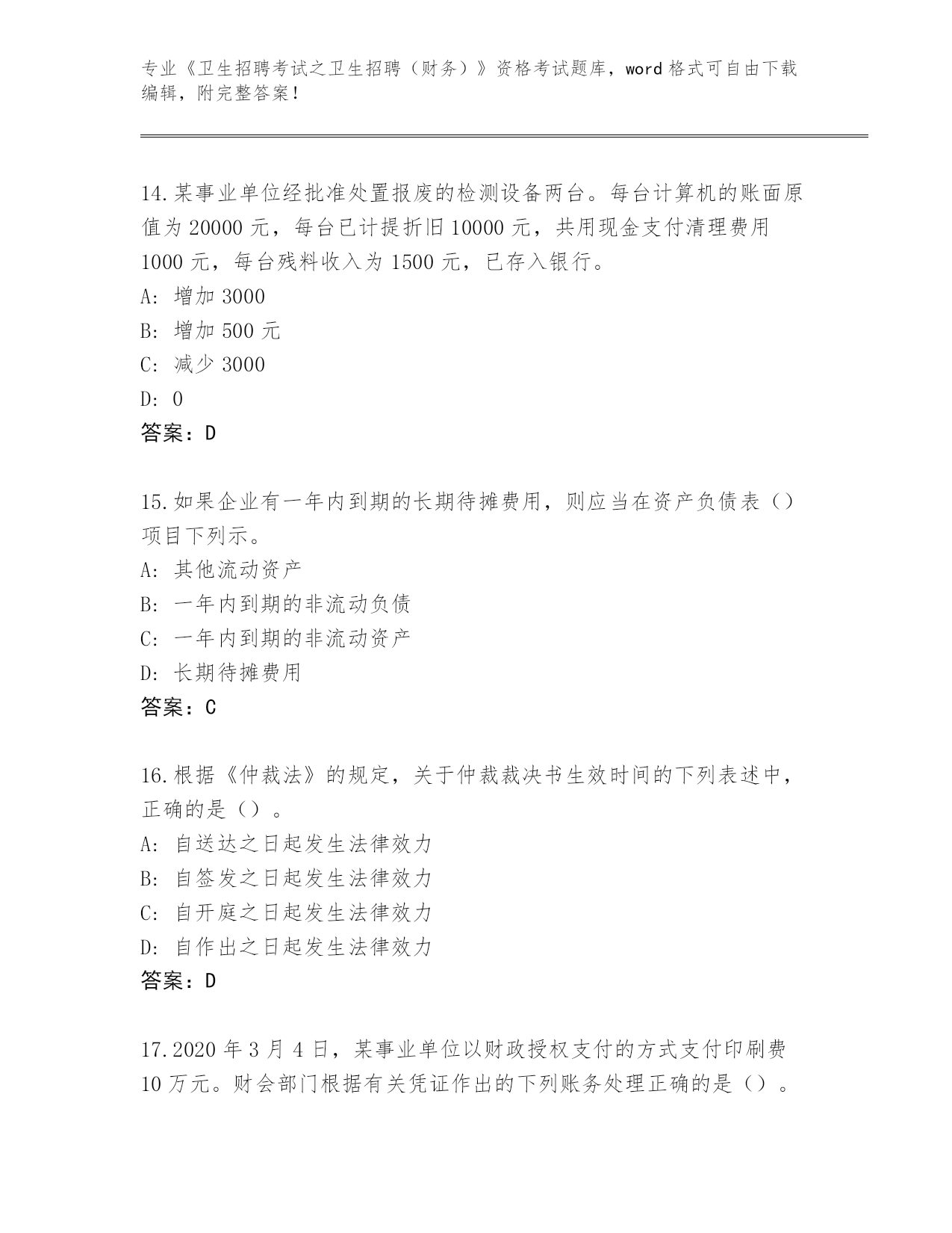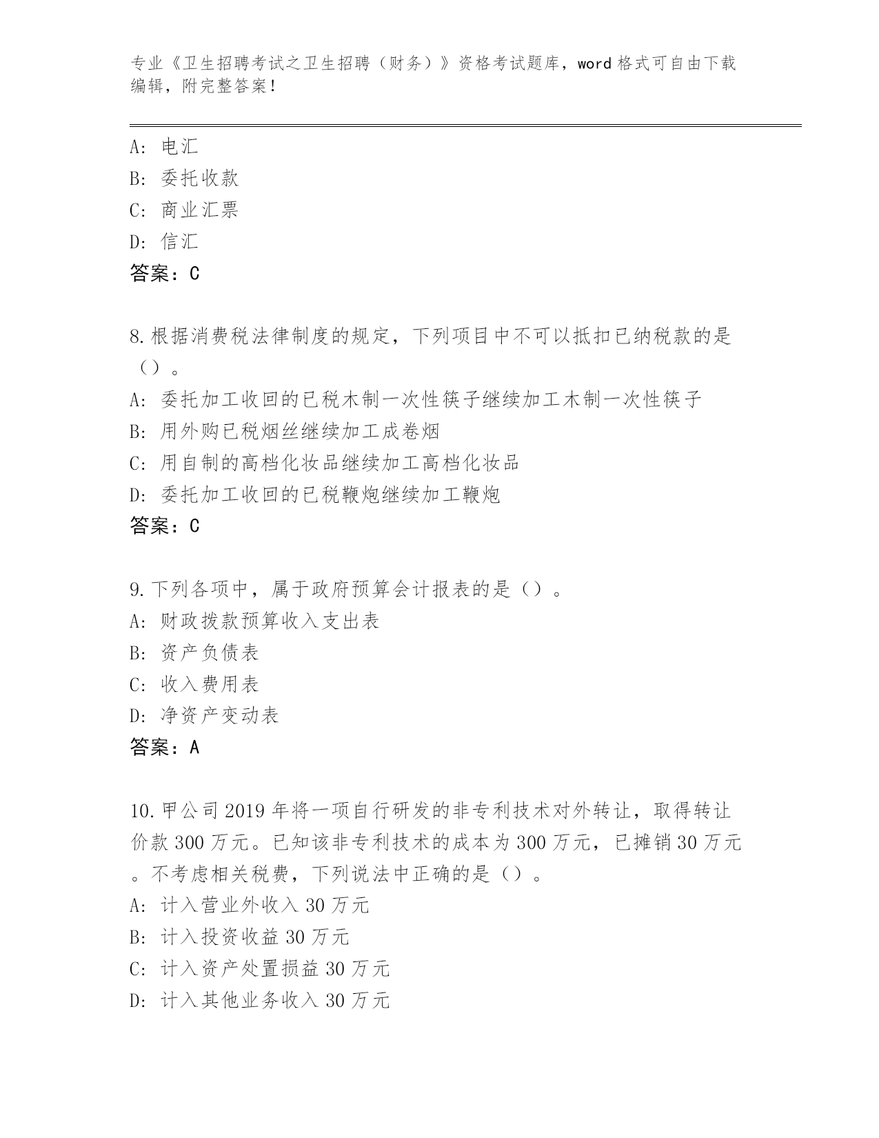 四川省2024年《卫生招聘考试之卫生招聘(财务)》资格考试真题题库【模拟题】