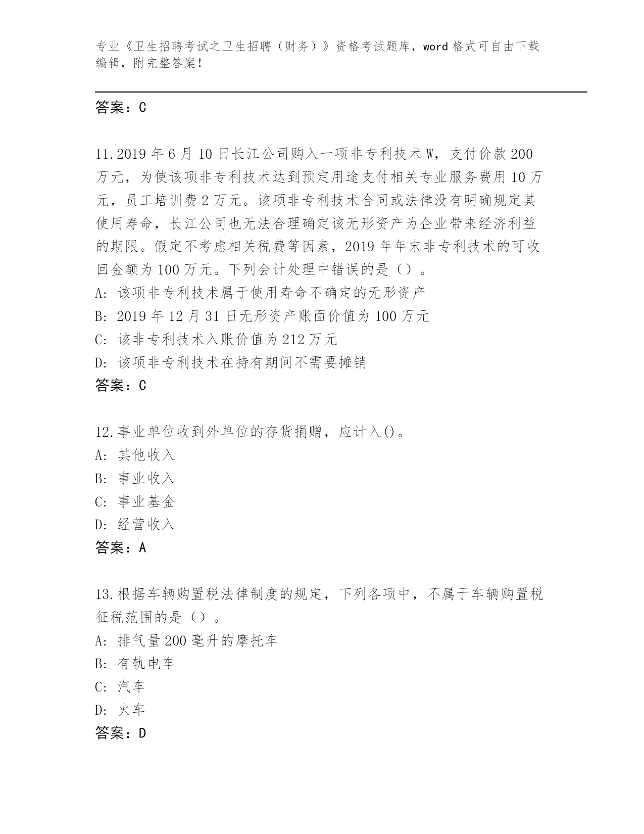 四川省红原县《卫生招聘考试之卫生招聘(财务)》资格考试真题题库(模拟题)
