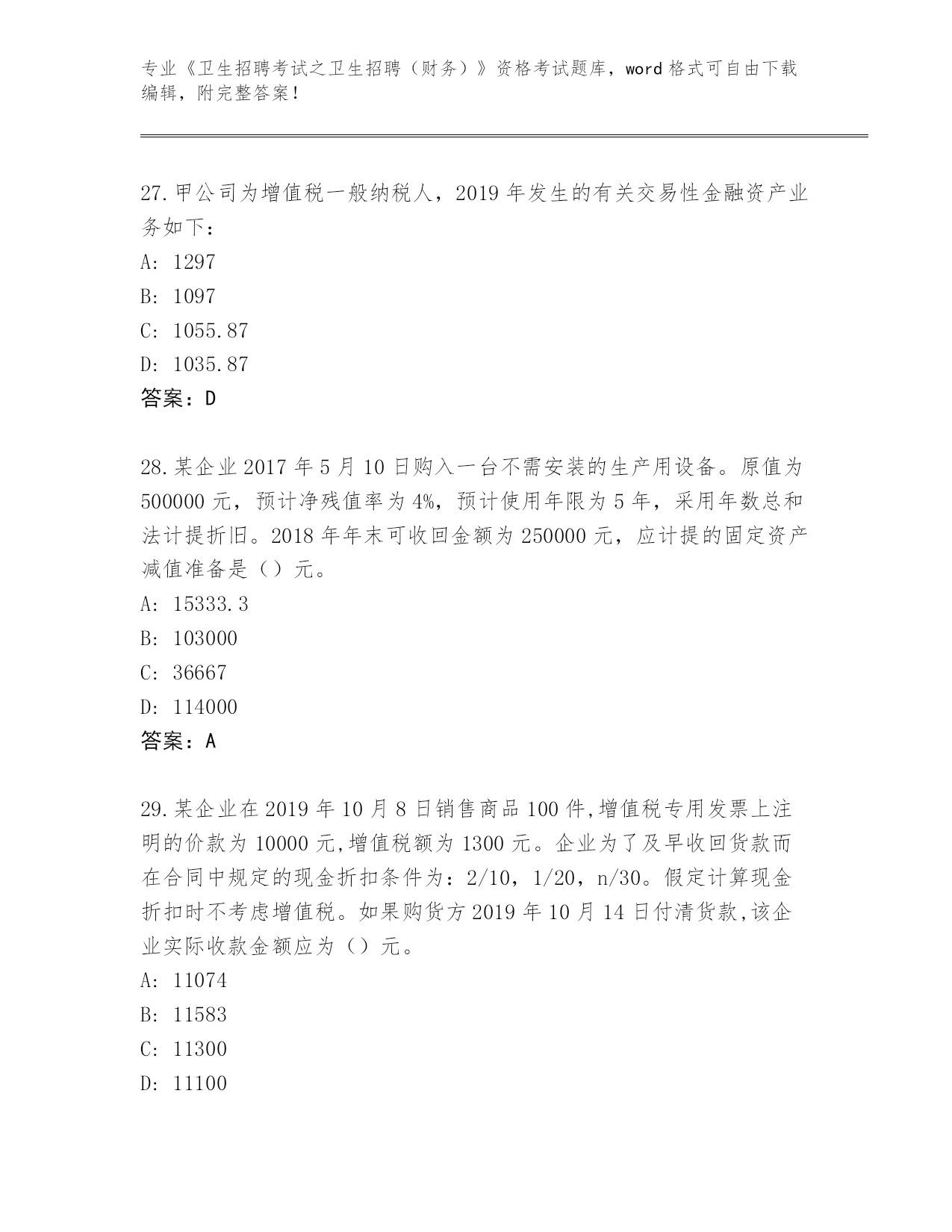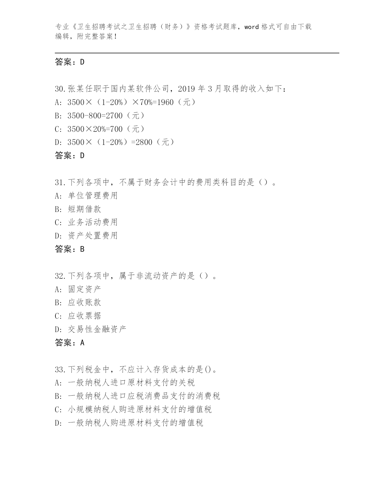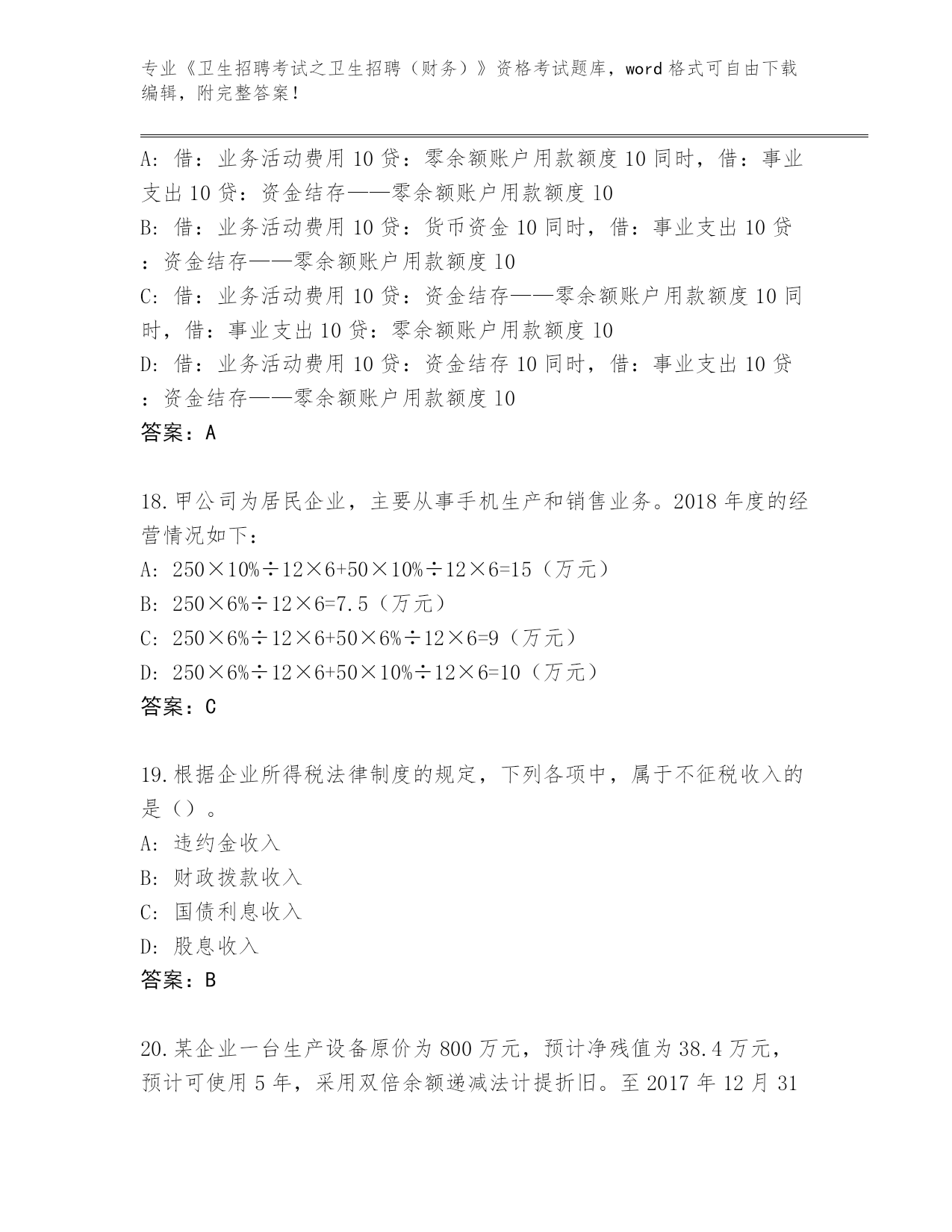 江苏省历年《卫生招聘考试之卫生招聘(财务)》资格考试真题题库【模拟题】