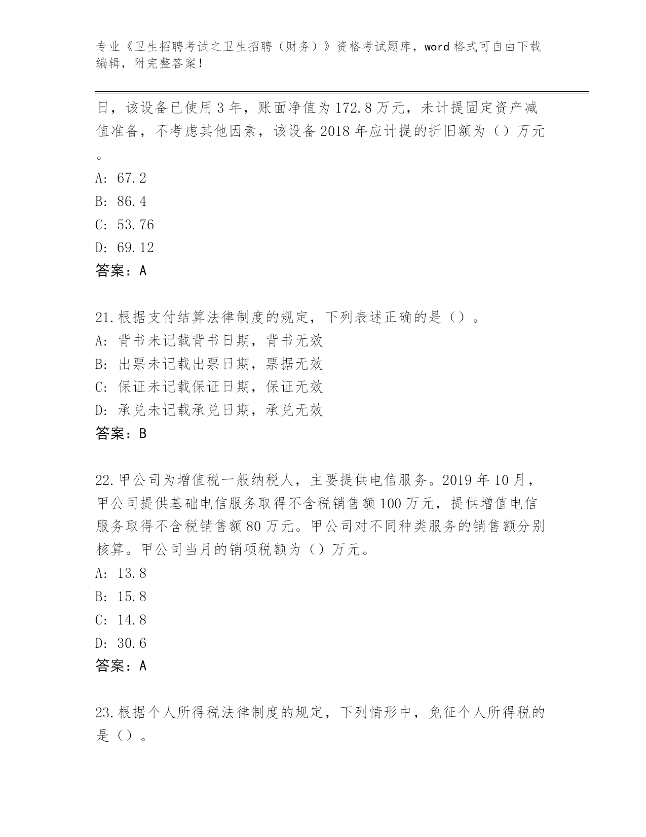 2023-2024年四川省宁南县《卫生招聘考试之卫生招聘(财务)》资格考试真题(含答案)