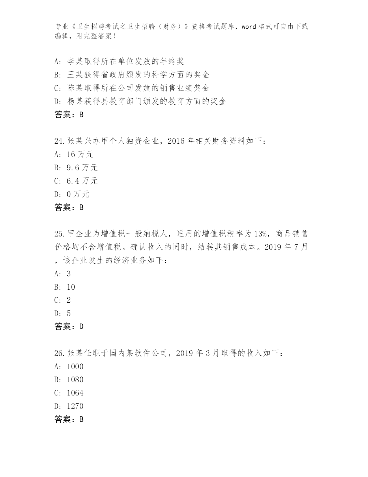 四川省叙永县2024《卫生招聘考试之卫生招聘(财务)》资格考试真题题库(模拟题)