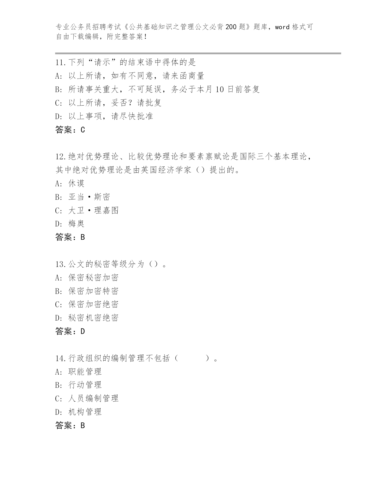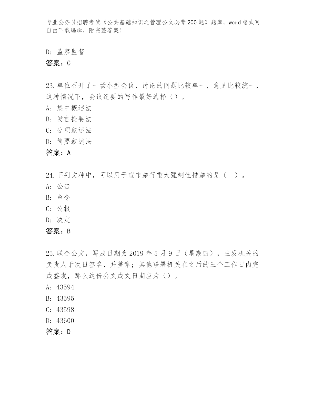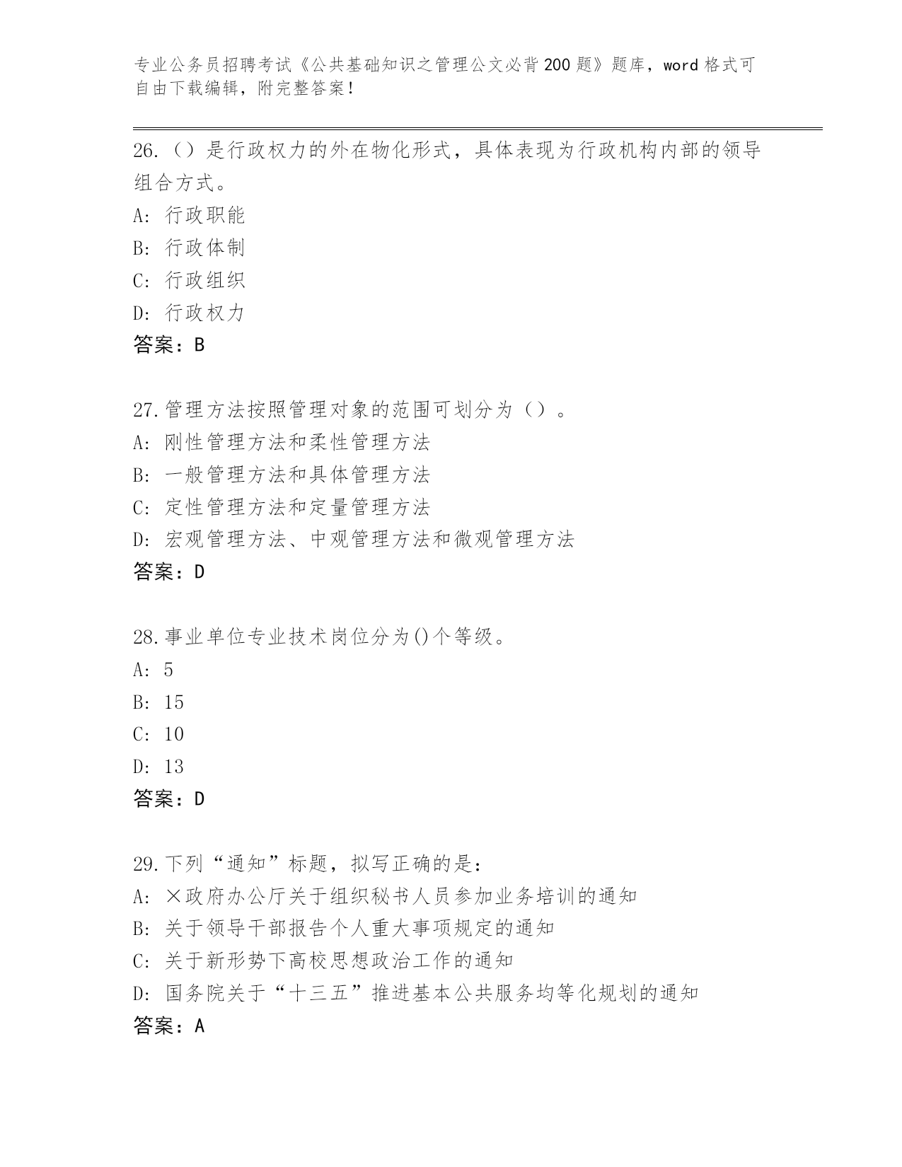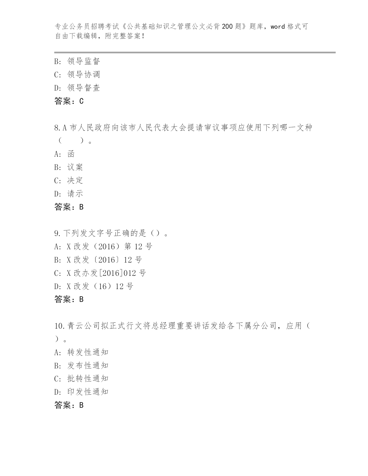 河北省新华区2024年公务员招聘考试《公共基础知识之管理公文必背200题》题库(必刷)