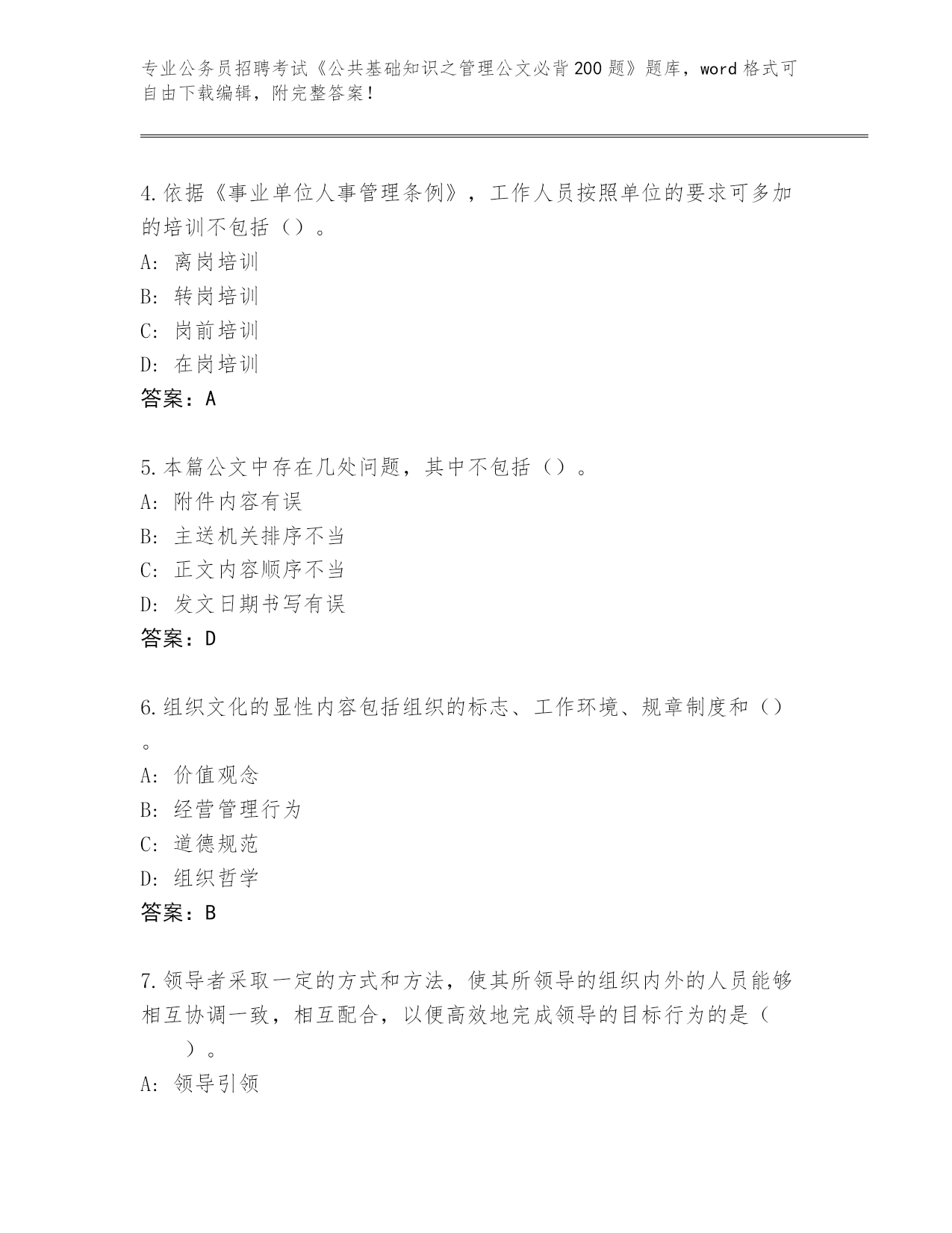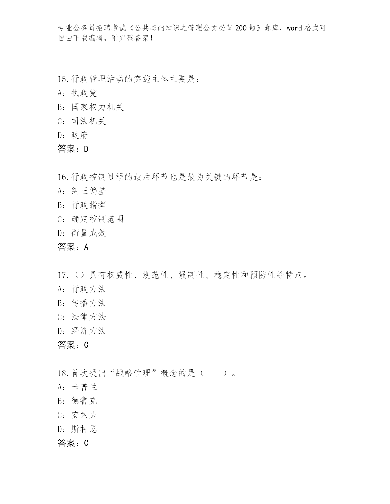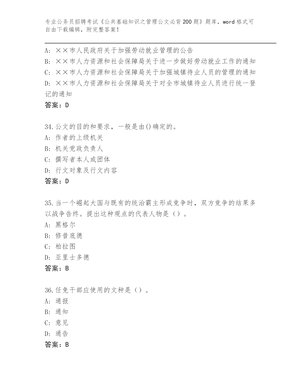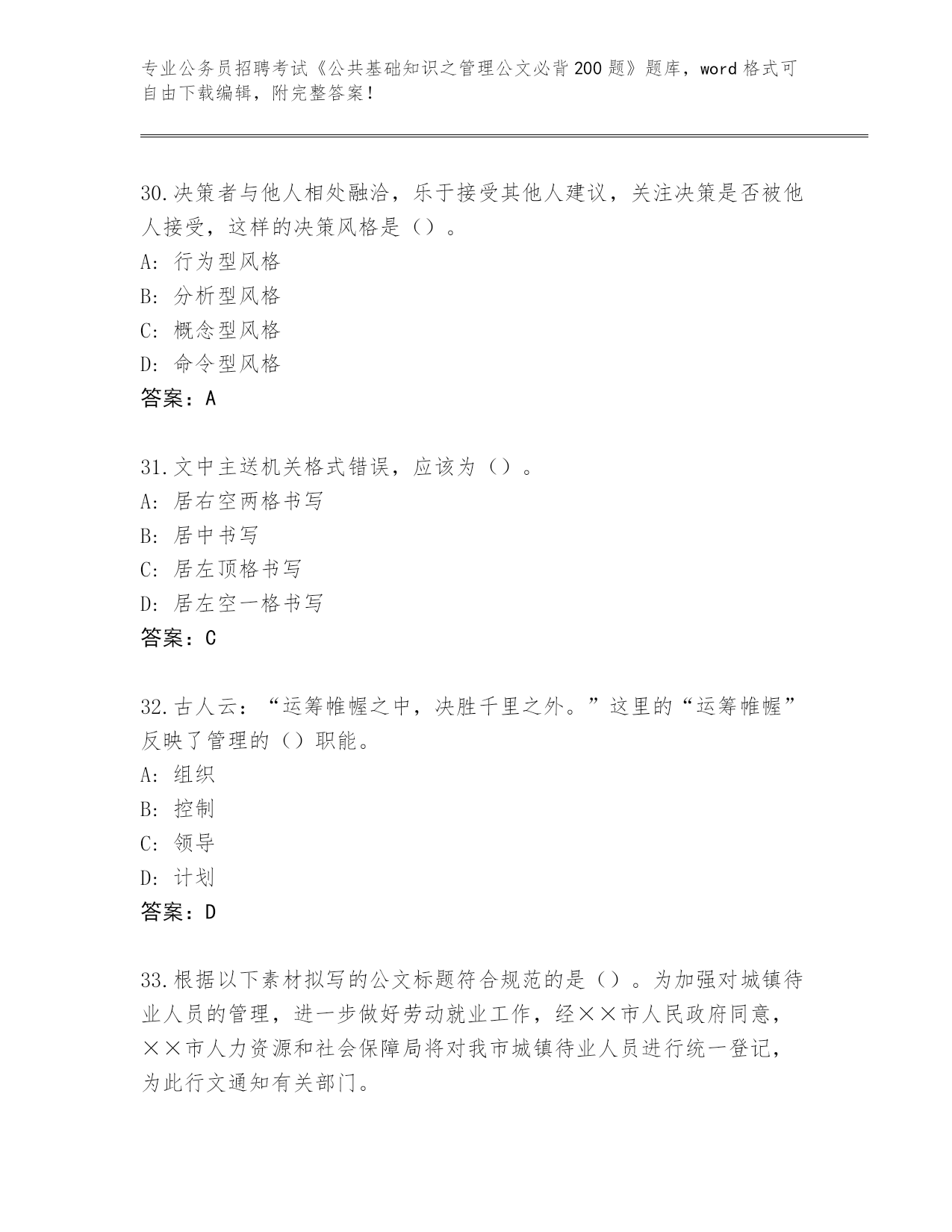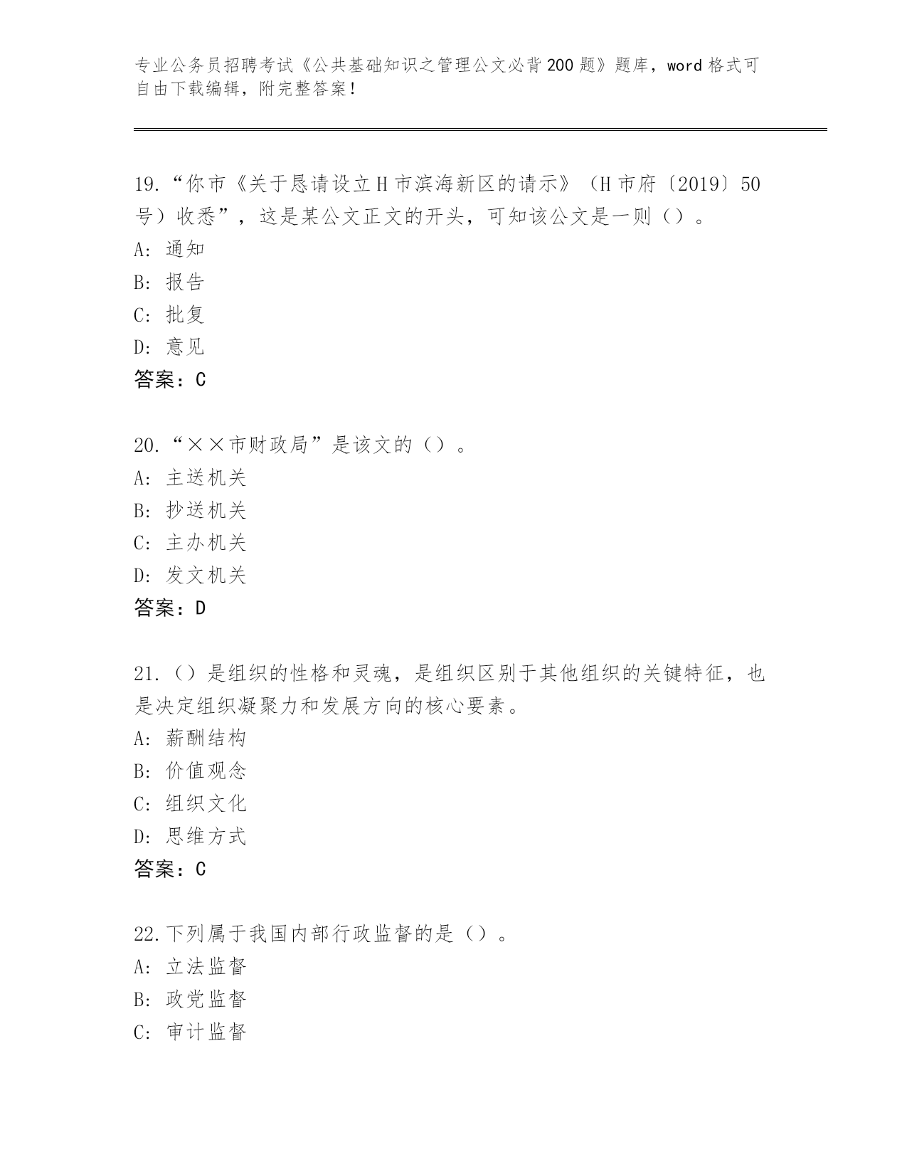 河北省新华区2024年公务员招聘考试《公共基础知识之管理公文必背200题》题库(必刷)