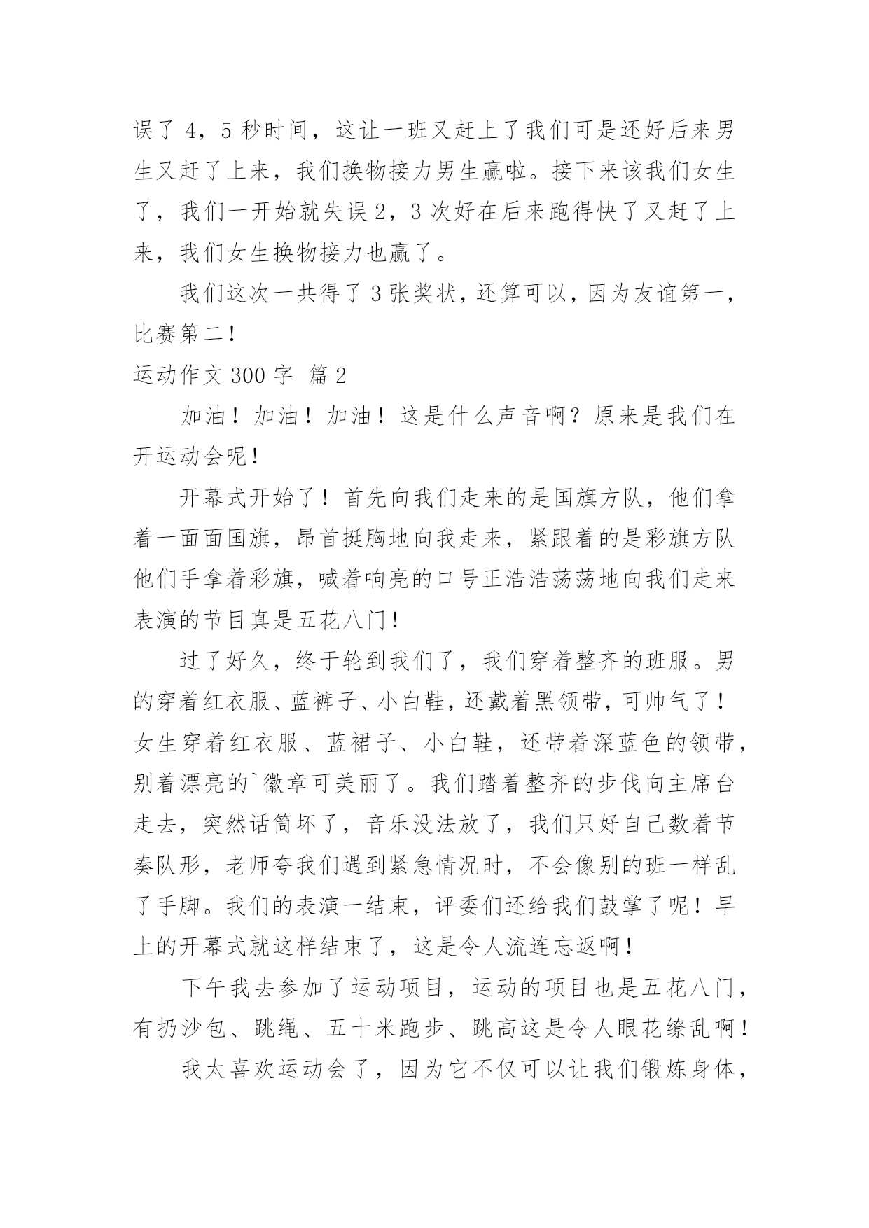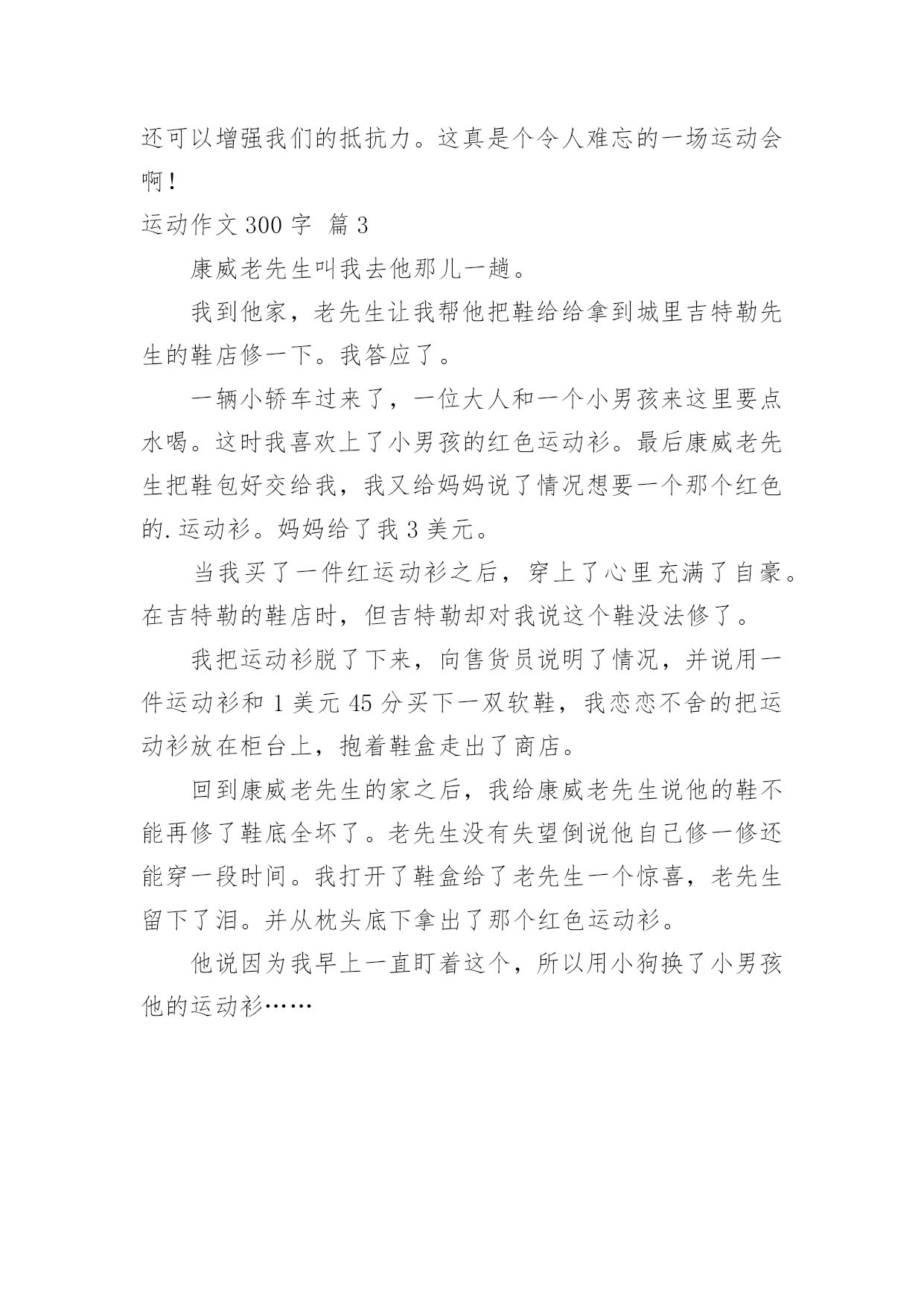 运动作文300字运动作文300字[热]在日常学习、工作或生活中,许多人都有过写作文的经历,对作文都不陌生吧,借助作文可以宣泄心中的情感,调节自己的心情。那么你有了解过作文吗?以下是小编帮大家整理的运动作文300字3篇,希望对大家有所帮助。运动作文300字篇1我早早的来到了学校,真希望现在就开运动会。等人来全了以后,贾老师给我们讲了讲运动会的`要求,就把我们带下去了。第一项是时代列车,我们男女生快速站好队,第一回合是男生比,虽然不是我们女生比但是我们女生女生的心比男生还紧张。随着老师一声下令,比赛开始了,男生队的第一位是张峰,张峰就像一头饿狼,把终点线当成牛肉一样,快速地爬过去,我们女生一直在大喊:“加油!加油!”终于男生赢了,接下来就该我们女生了。我们女生一开始很快,可是好像前面断开了,所以我们女生不幸落败。第二项是换物接力,这个项目是我最担心的,因为我们总是在放东西和交接棒的时候出问题。男生第一棒是梁士鑫,在第一棒的时候我们就落下一班了,可是一班的一位男生放东西的时候一不小心扔了出来,这对于我们来说是一个大好的机会,很快我们就赶上了他们,但白庆源东西没放好,耽误了4,5秒时间,这让一班又赶上了我们可是还好后来男生又赶了上来,我们换物接力男生赢啦。接下来该我们女生了,我们一开始就失误2,3次好在后来跑得快了又赶了上来,我们女生换物接力也赢了。我们这次一共得了3张奖状,还算可以,因为友谊第一,比赛第二!运动作文300字篇2加油!加油!加油!这是什么声音啊?原来是我们在开运动会呢!开幕式开始了!首先向我们走来的是国旗方队,他们拿着一面面国旗,昂首挺胸地向我走来,紧跟着的是彩旗方队他们手拿着彩旗,喊着响亮的口号正浩浩荡荡地向我们走来表演的节目真是五花八门!过了好久,终于轮到我们了,我们穿着整齐的班服。男的穿着红衣服、蓝裤子、小白鞋,还戴着黑领带,可帅气了!女生穿着红衣服、蓝裙子、小白鞋,还带着深蓝色的领带,别着漂亮的`徽章可美丽了。我们踏着整齐的步伐向主席台走去,突然话筒坏了,音乐没法放了,我们只好自己数着节奏队形,老师夸我们遇到紧急情况时,不会像别的班一样乱了手脚。我们的表演一结束,评委们还给我们鼓掌了呢!早上的开幕式就这样结束了,这是令人流连忘返啊!下午我去参加了运动项目,运动的项目也是五花八门,有扔沙包、跳绳、五十米跑步、跳高这是令人眼花缭乱啊!我太喜欢运动会了,因为它不仅可以让我们锻炼身体,还可以增强我们的抵抗力。这真是个令人难忘的一场运动会啊!运动作文300字篇3康威老先生叫我去他那儿一趟。我到他家,老先生让我帮他把鞋给给拿到城里吉特勒先生的鞋店修一下。我答应了。一辆小轿车过来了,一位大人和一个小男孩来这里要点水喝。这时我喜欢上了小男孩的红色运动衫。最后康威老先生把鞋包好交给我,我又给妈妈说了情况想要一个那个红色的.运动衫。妈妈给了我3美元。当我买了一件红运动衫之后,穿上了心里充满了自豪。在吉特勒的鞋店时,但吉特勒却对我说这个鞋没法修了。我把运动衫脱了下来,向售货员说明了情况,并说用一件运动衫和1美元45分买下一双软鞋,我恋恋不舍的把运动衫放在柜台上,抱着鞋盒走出了商店。回到康威老先生的家之后,我给康威老先生说他的鞋不能再修了鞋底全坏了。老先生没有失望倒说他自己修一修还能穿一段时间。我打开了鞋盒给了老先生一个惊喜,老先生留下了泪。并从枕头底下拿出了那个红色运动衫。他说因为我早上一直盯着这个,所以用小狗换了小男孩他的运动衫……