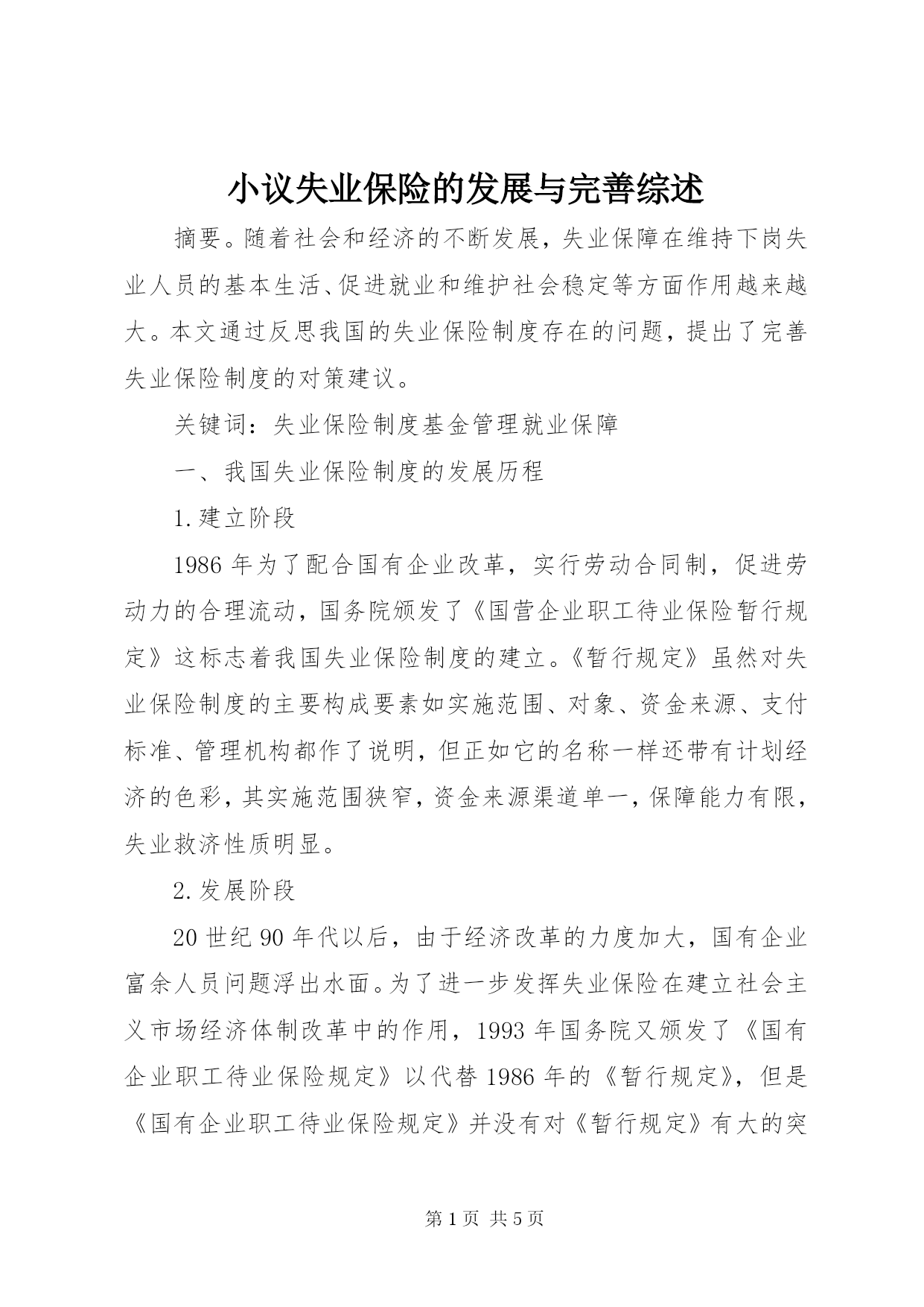 小议失业保险的发展与完善综述.docx