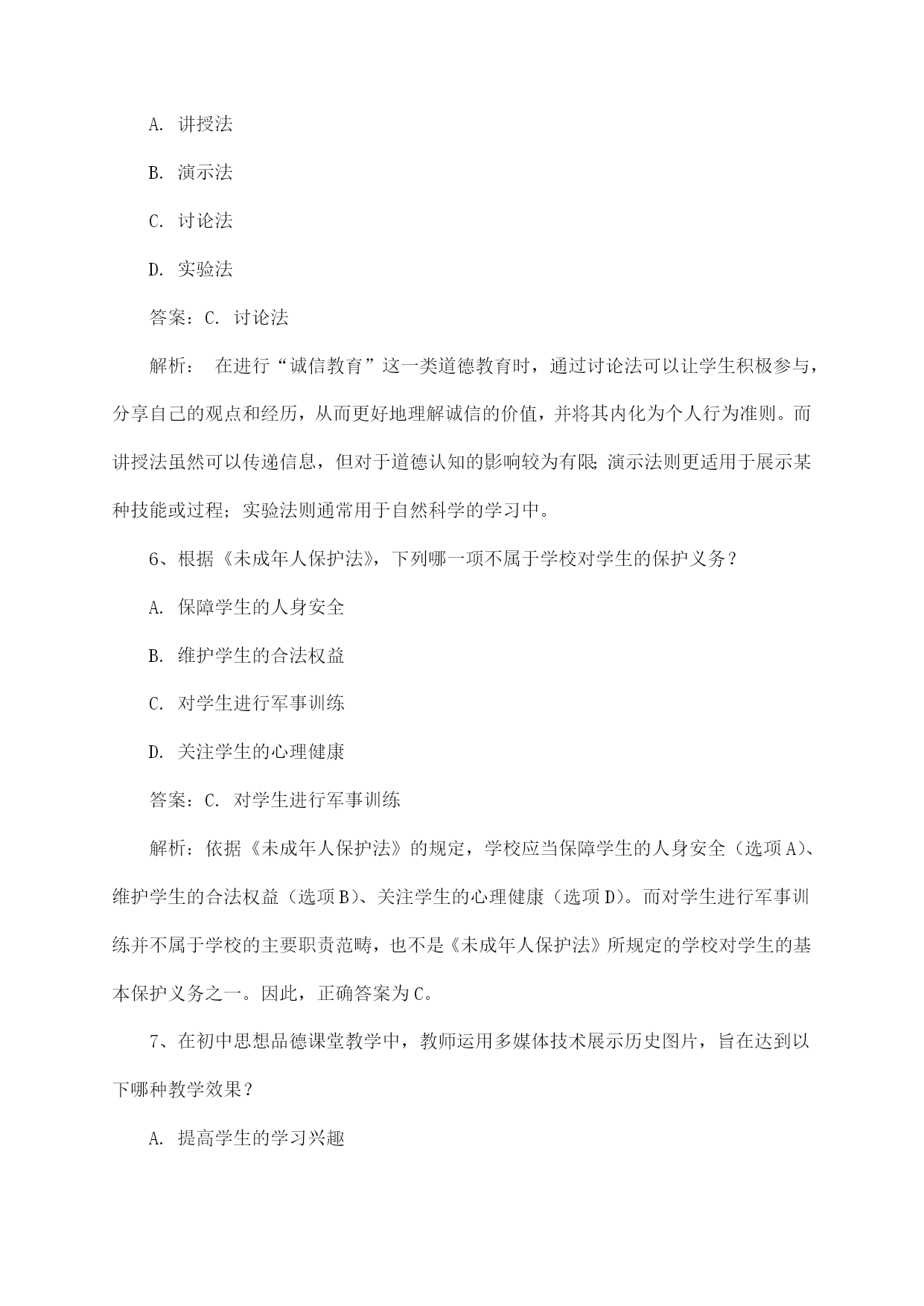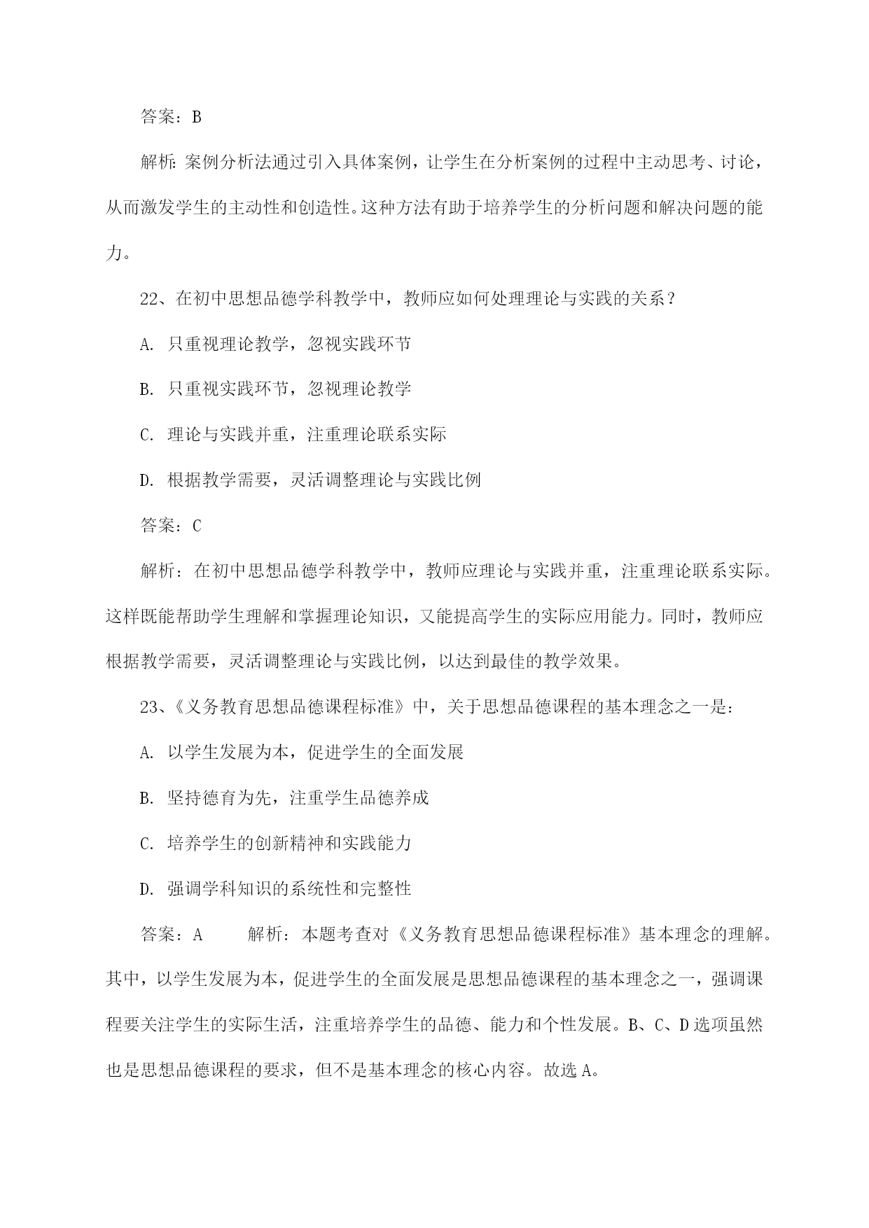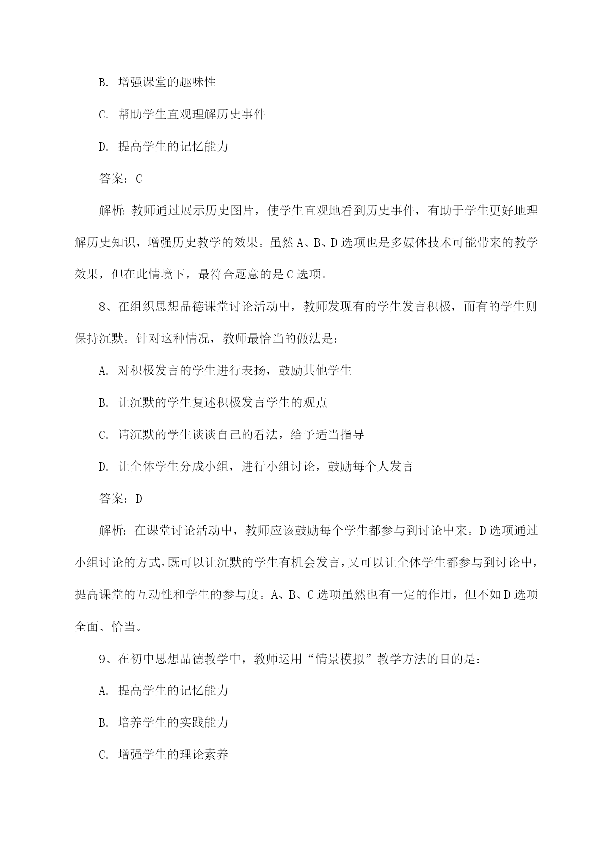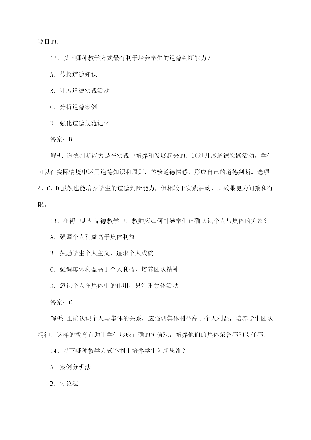 2025年教师资格考试初级中学学科知识与教学能力思想品德自测试题及解答参考