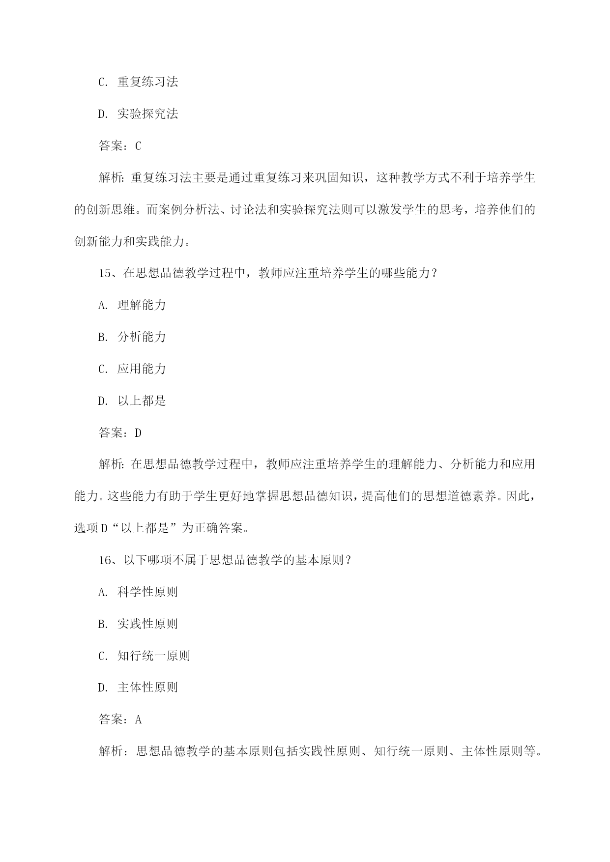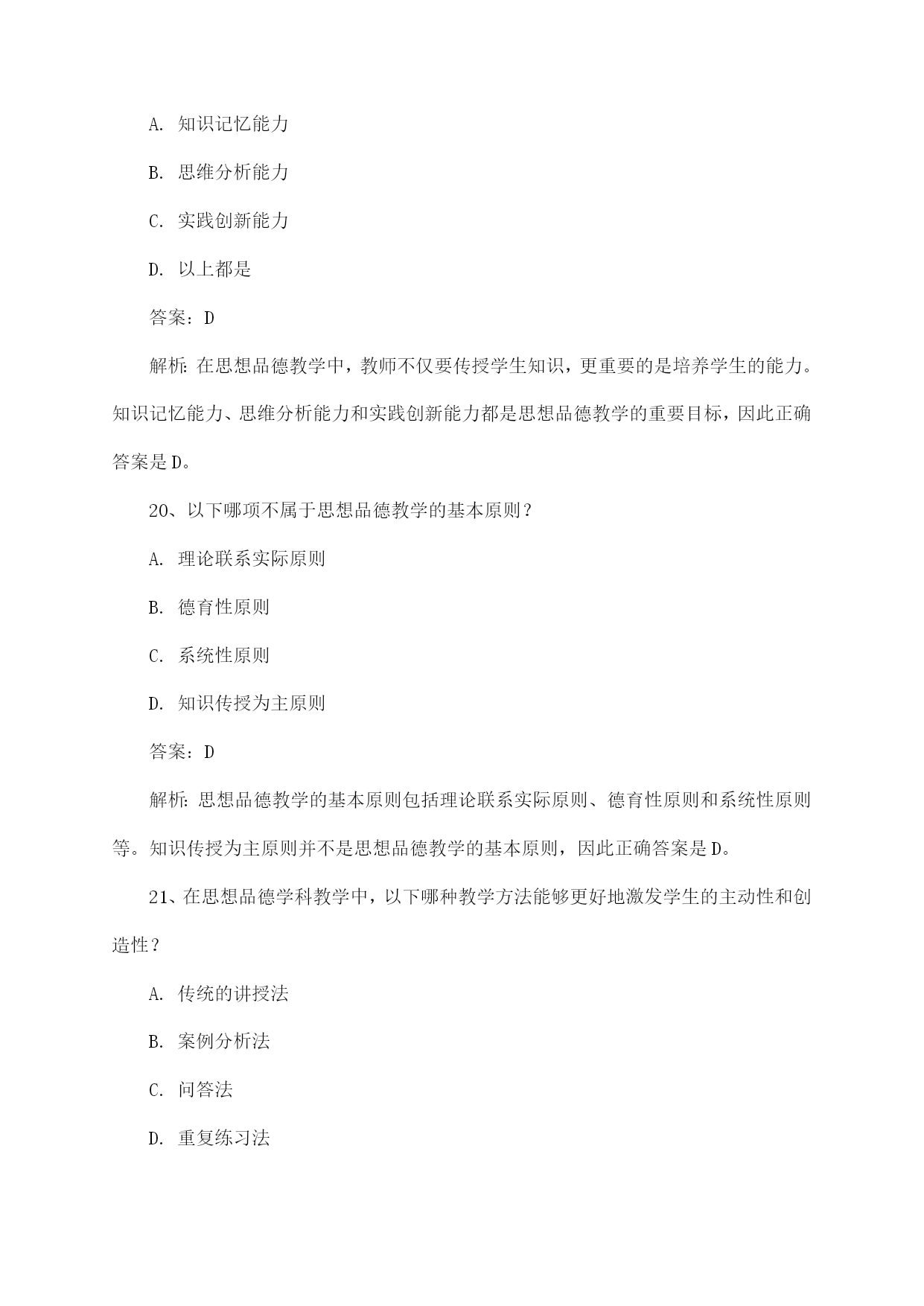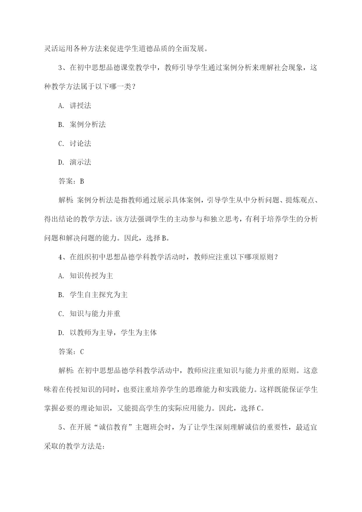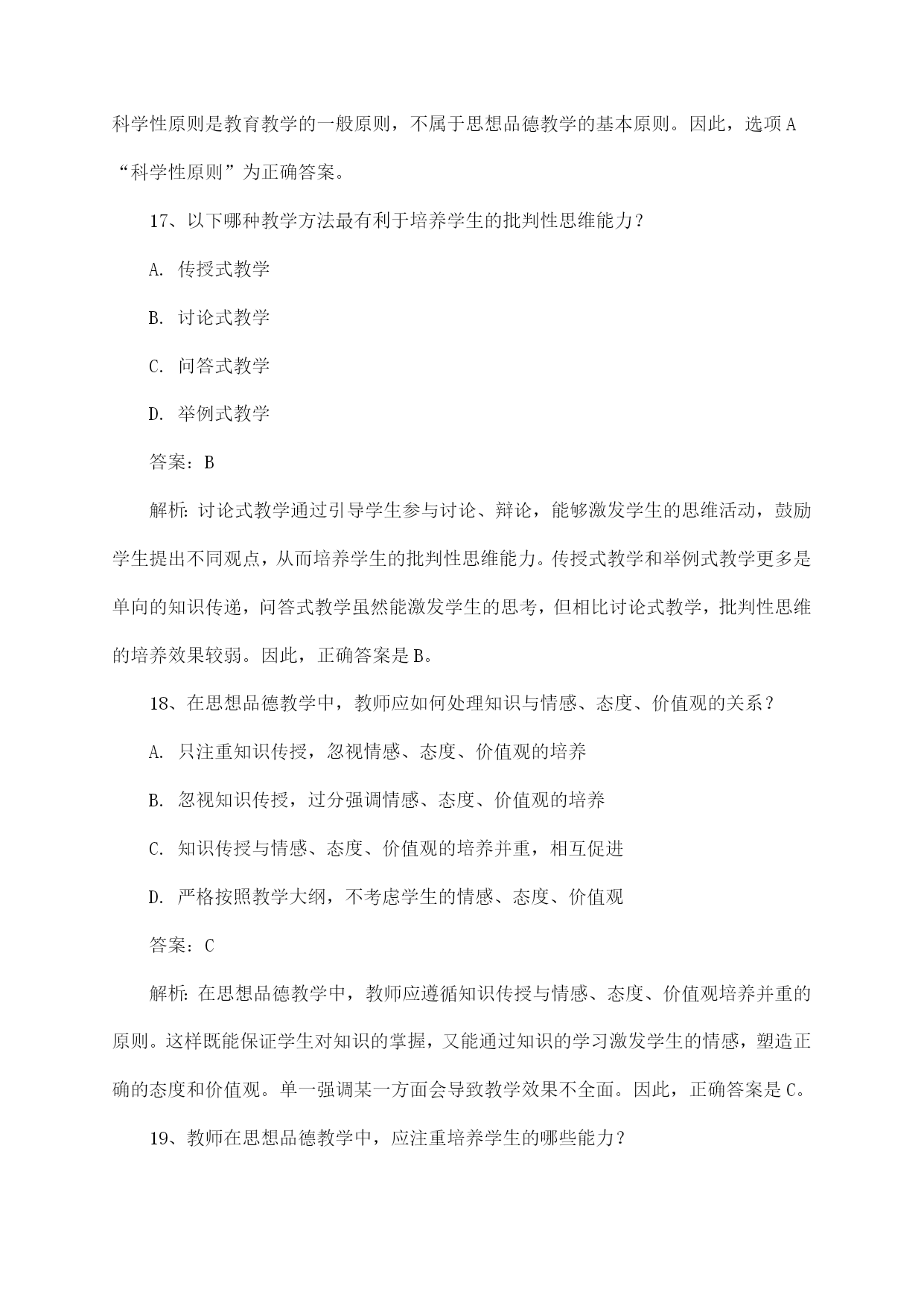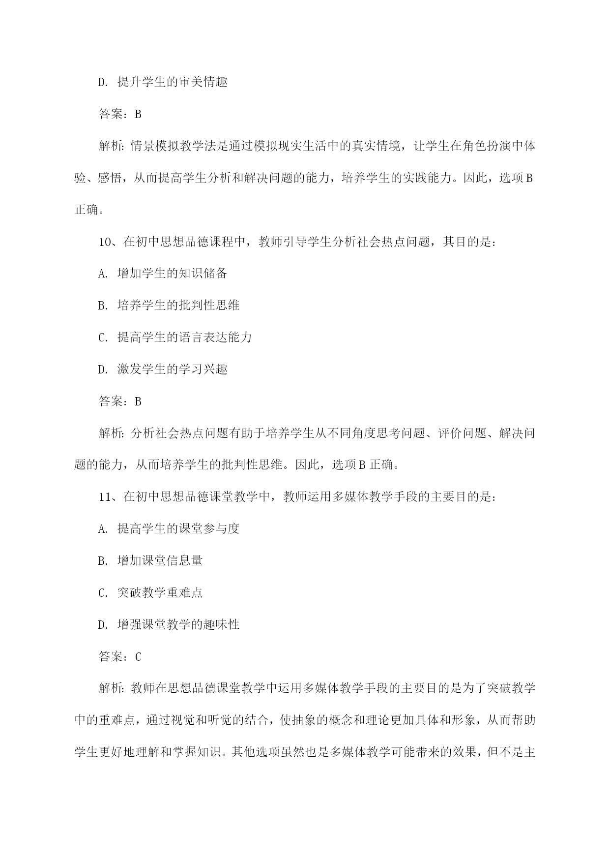 2025年教师资格考试初级中学学科知识与教学能力思想品德自测试题及解答参考