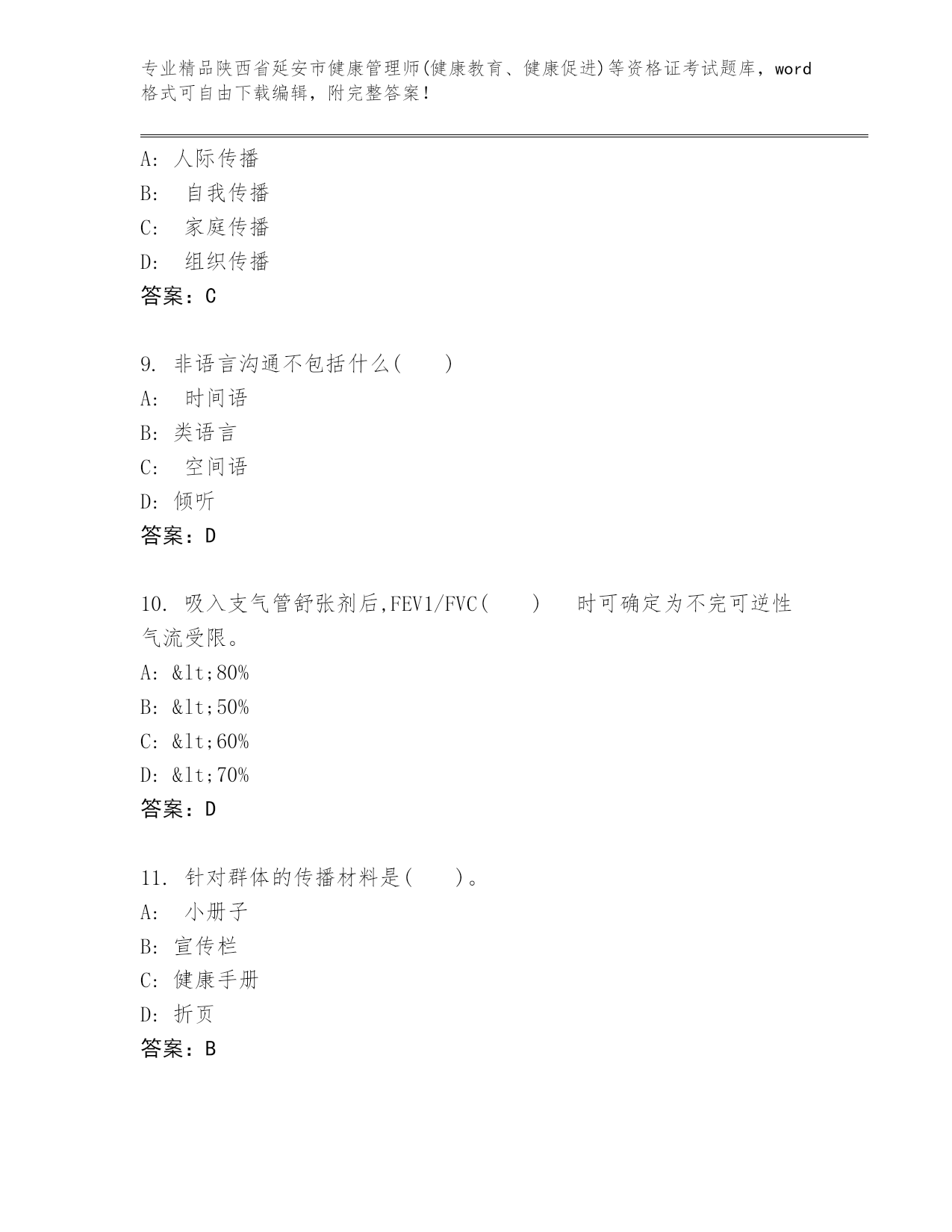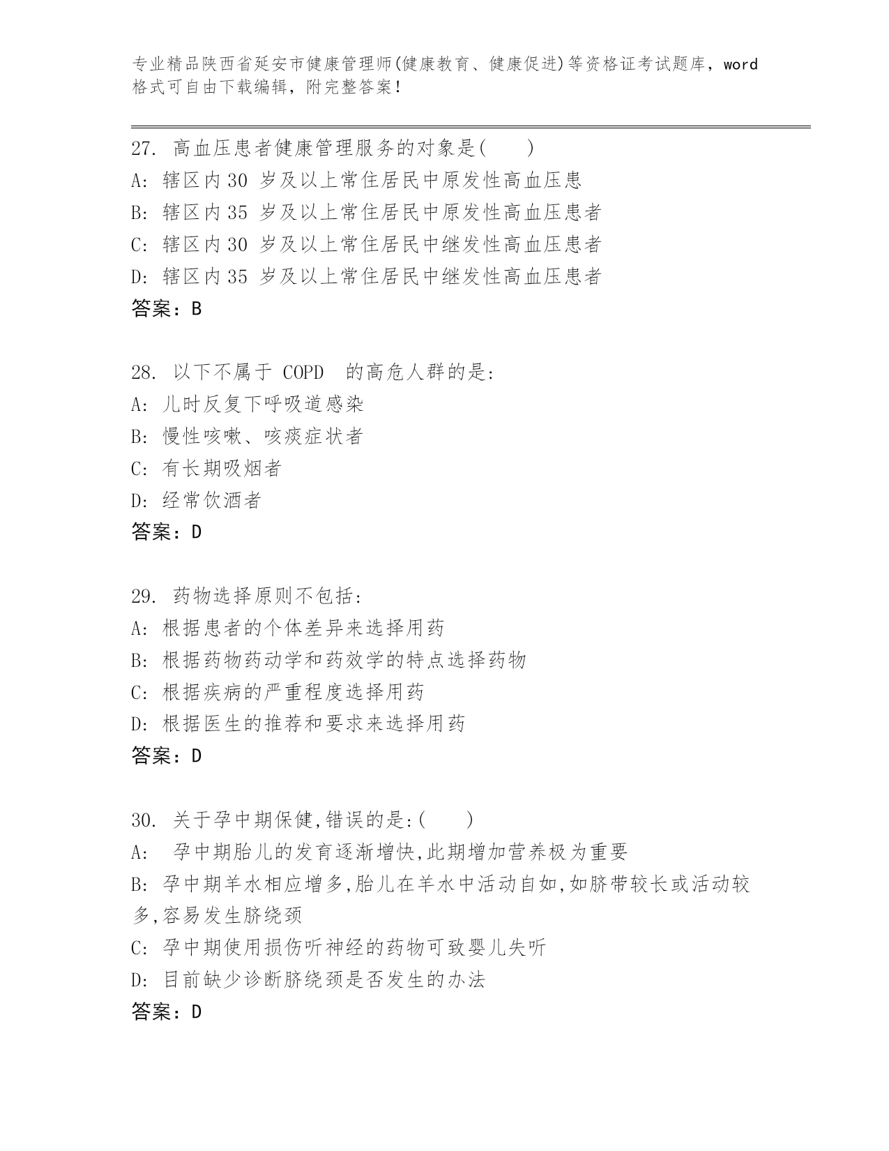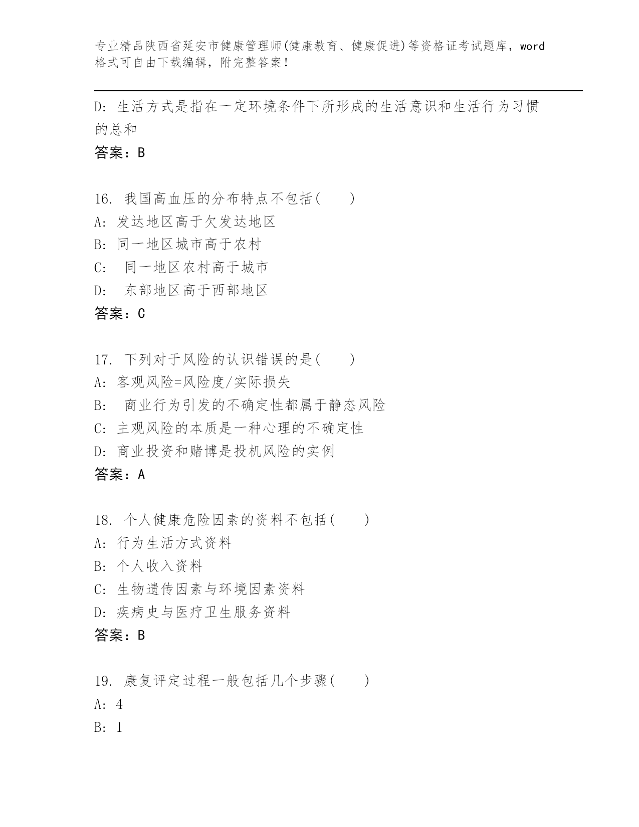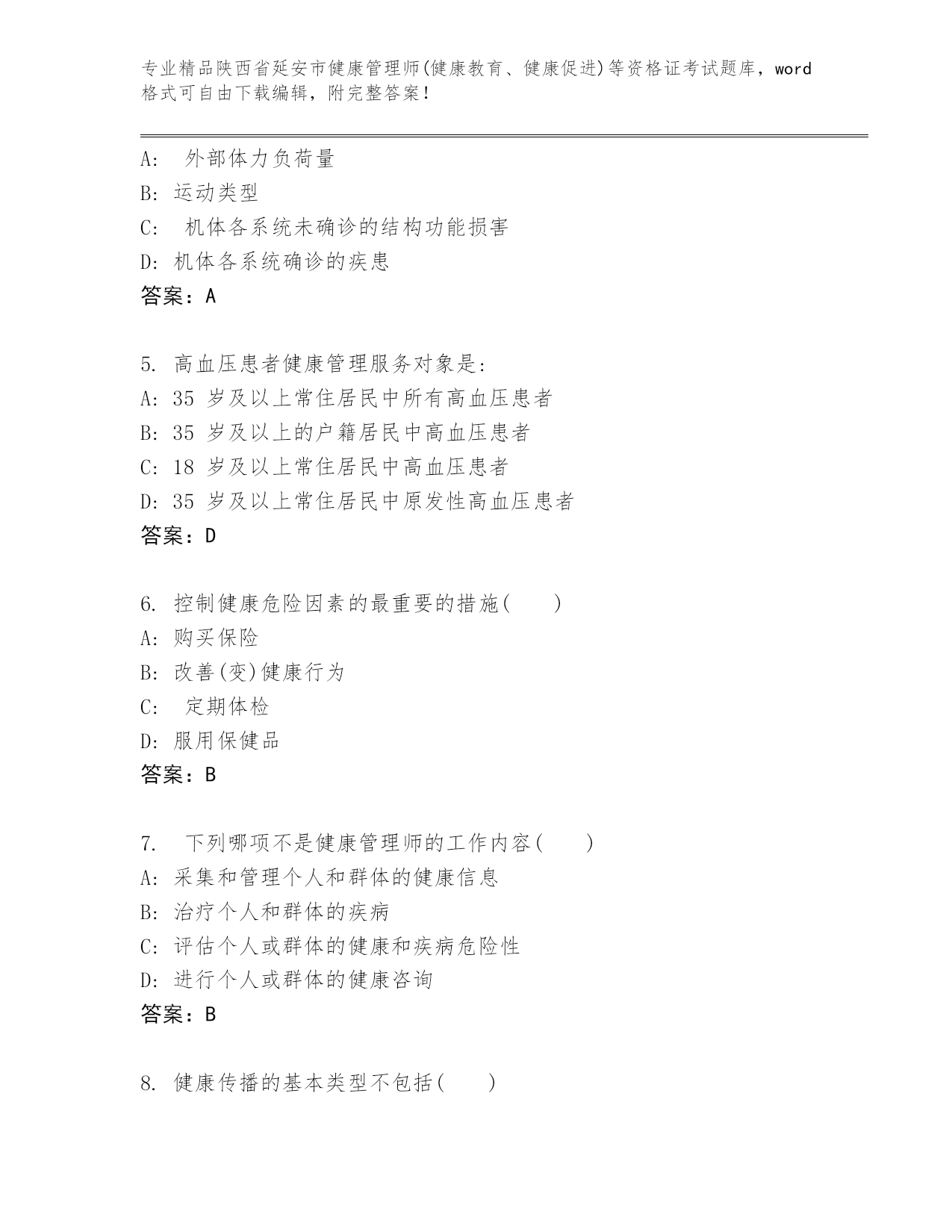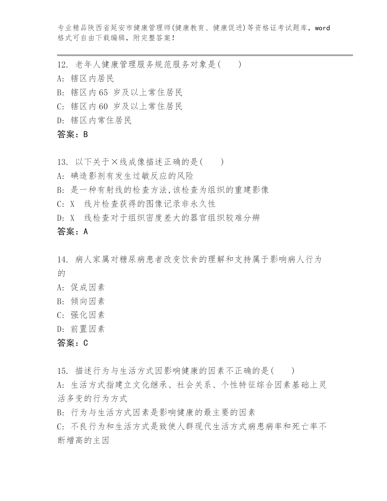 精编陕西省延安市健康管理师(健康教育、健康促进)等资格证考试通用题库【巩固】