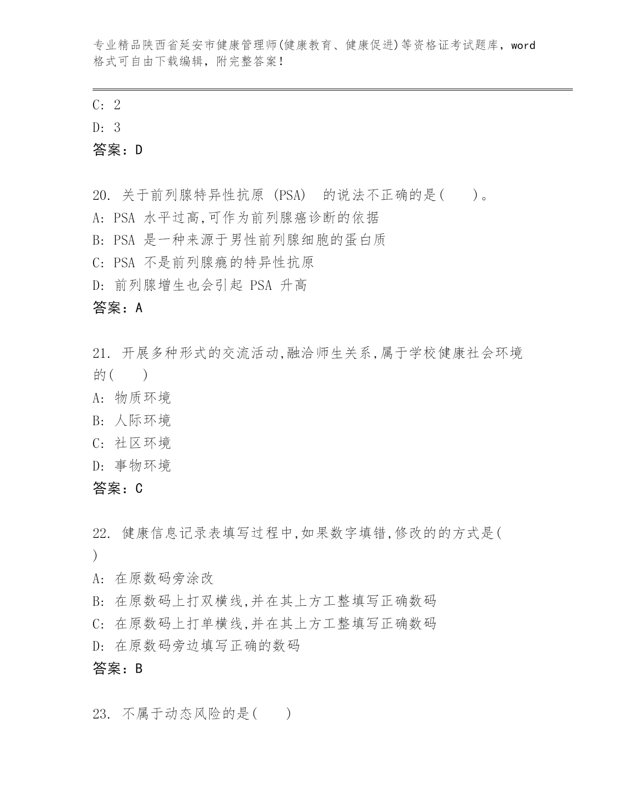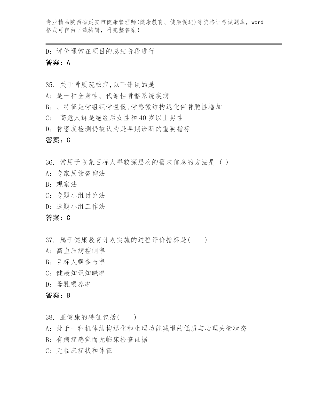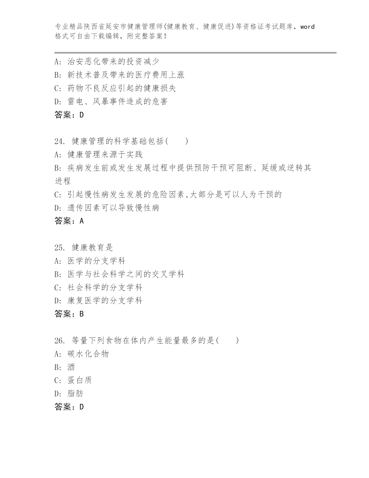 精编陕西省延安市健康管理师(健康教育、健康促进)等资格证考试通用题库【巩固】.docx